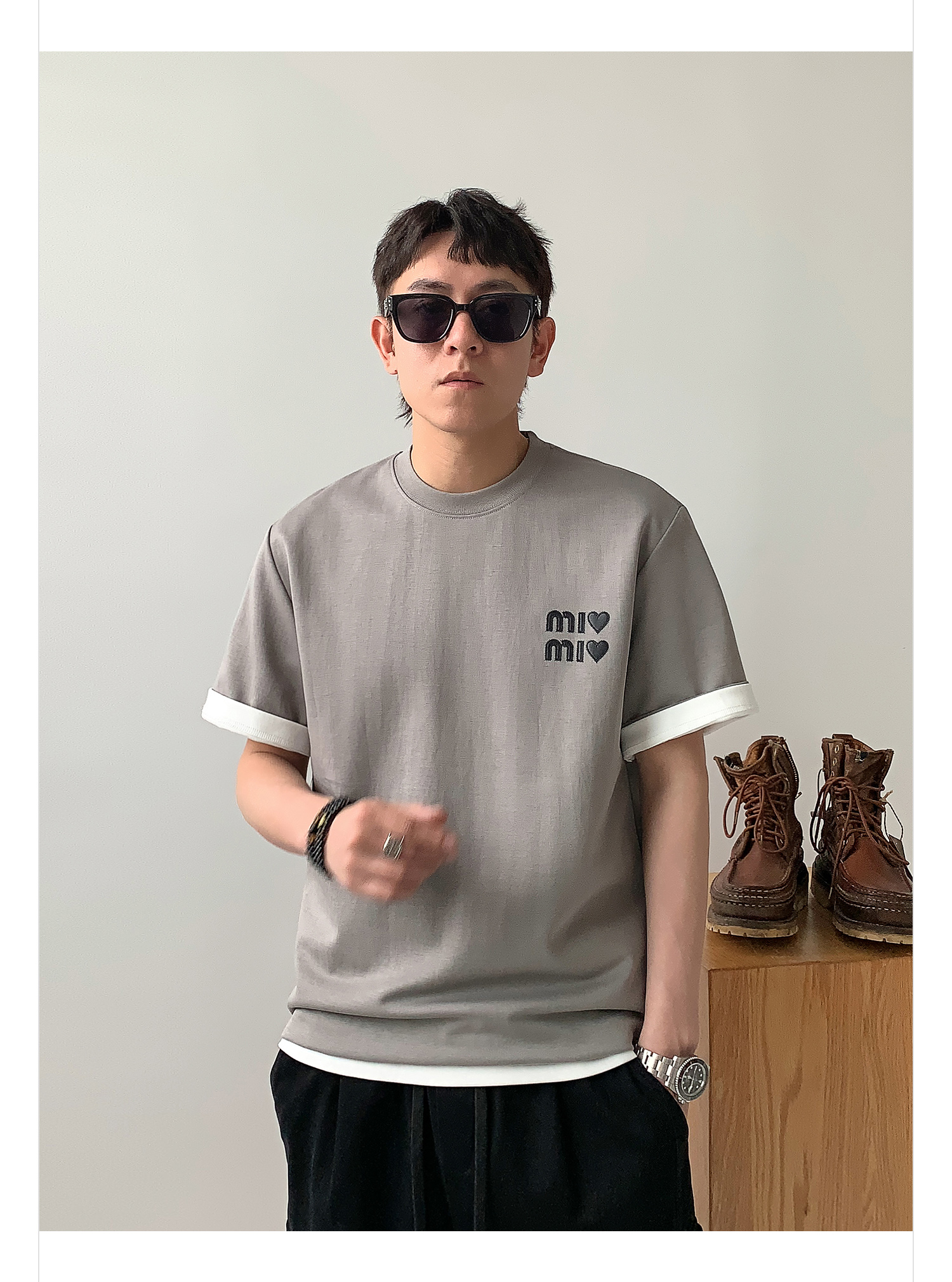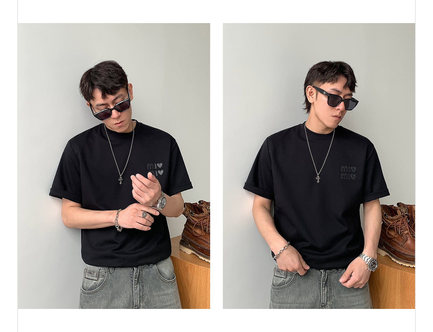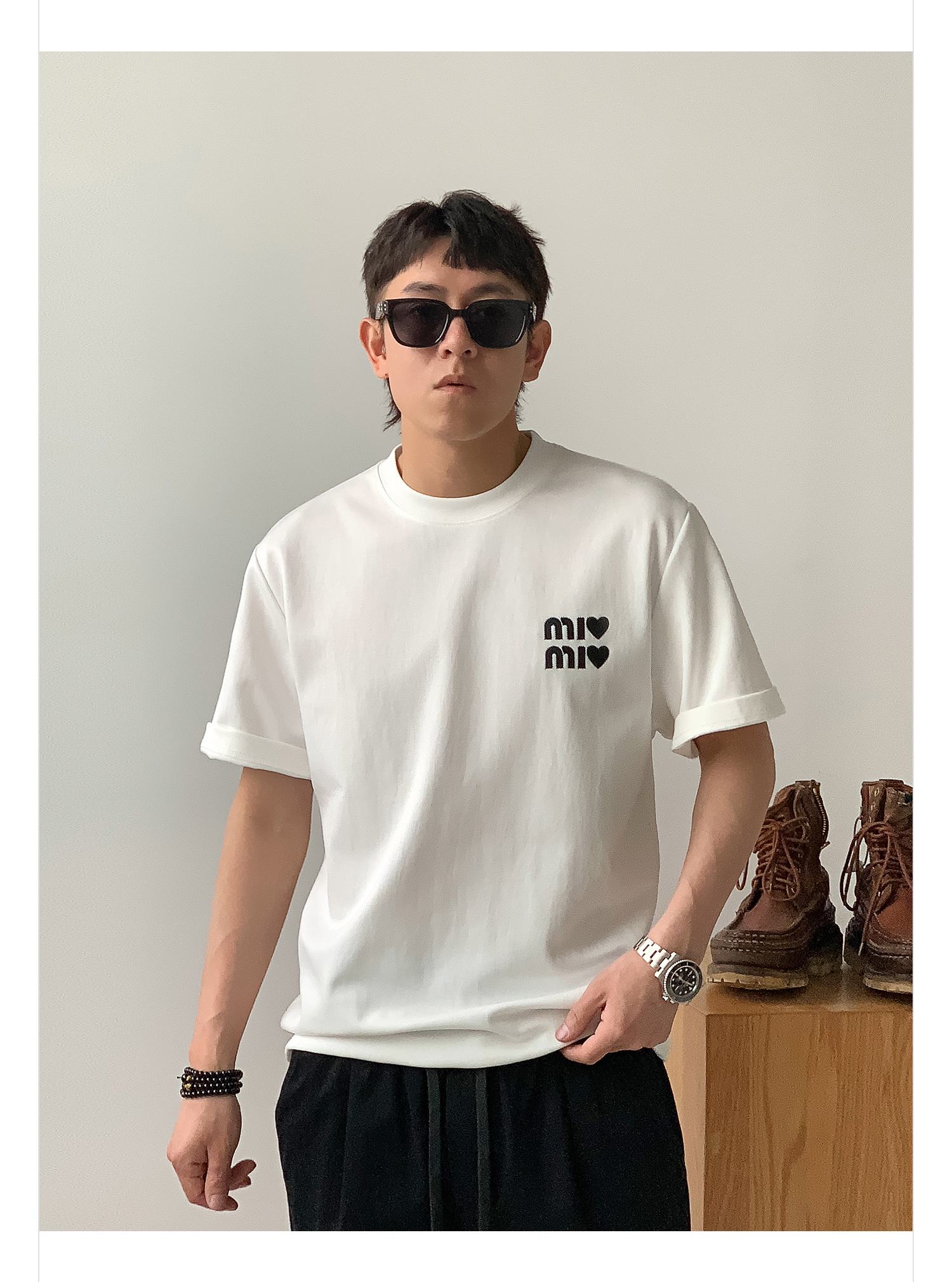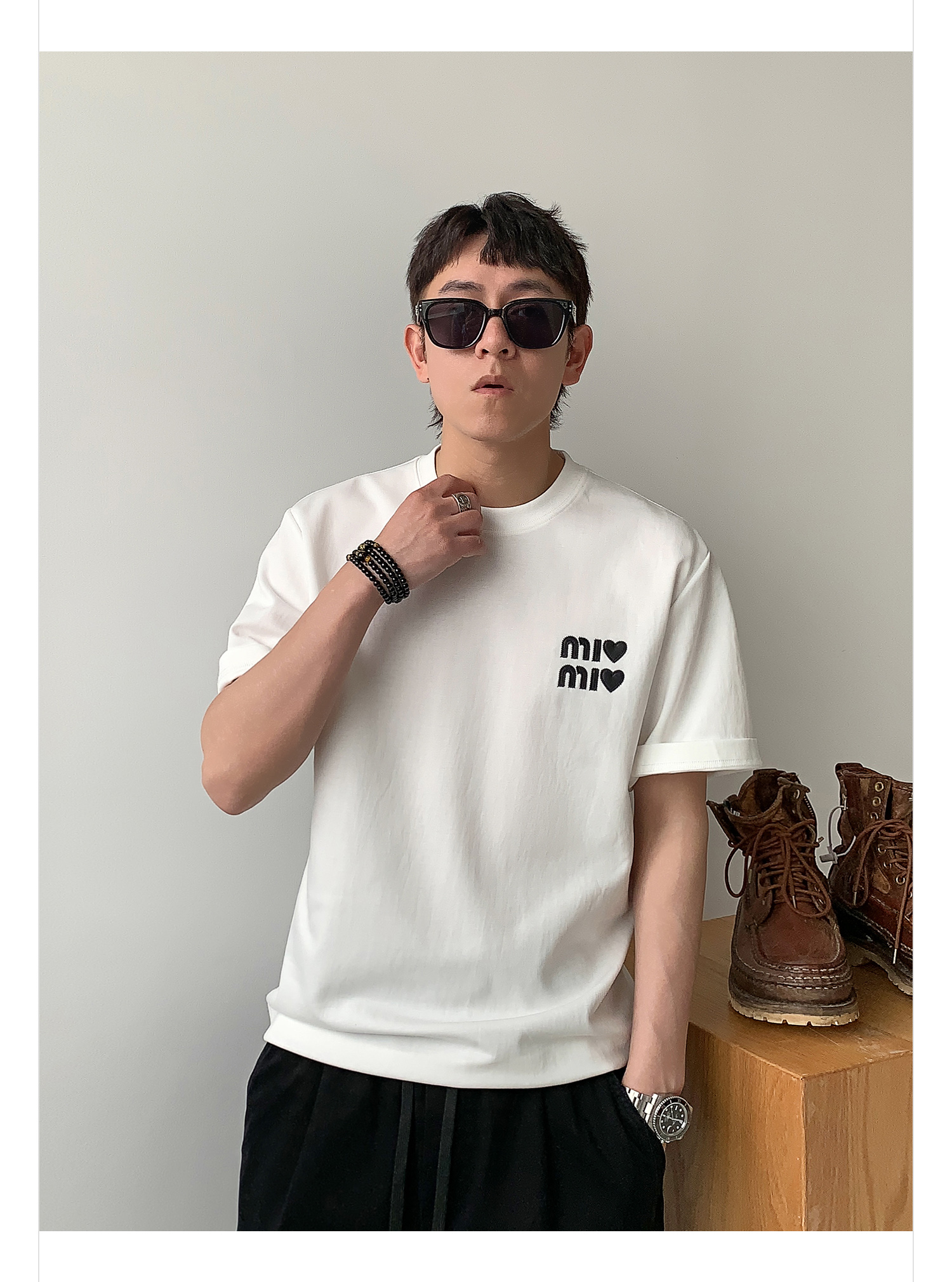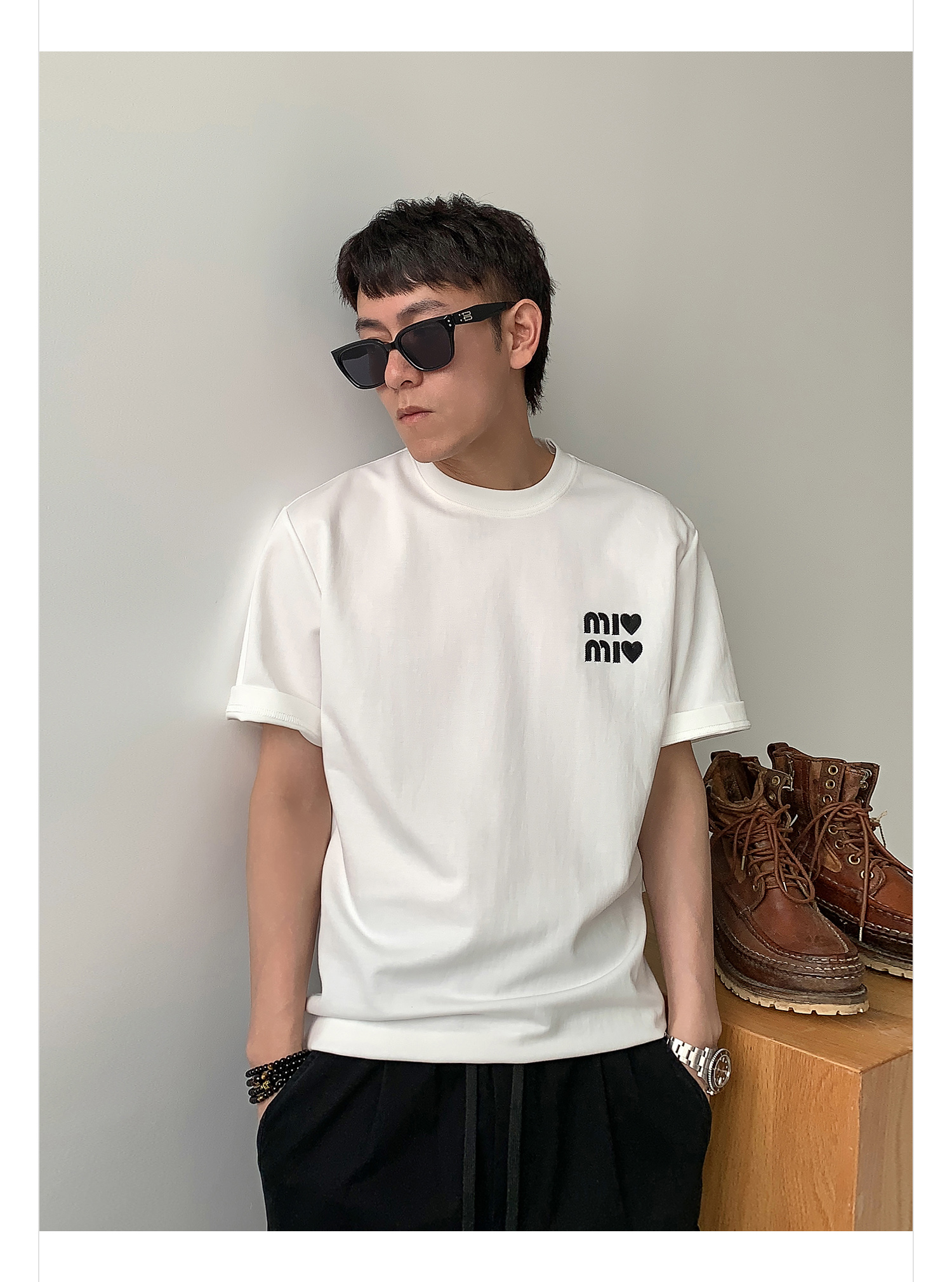 徐太浪情侣爱心绣花短袖T恤男2025新款夏季高街宽松休闲圆领上衣