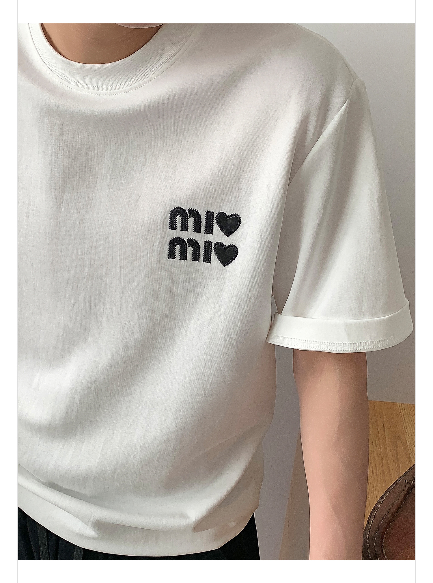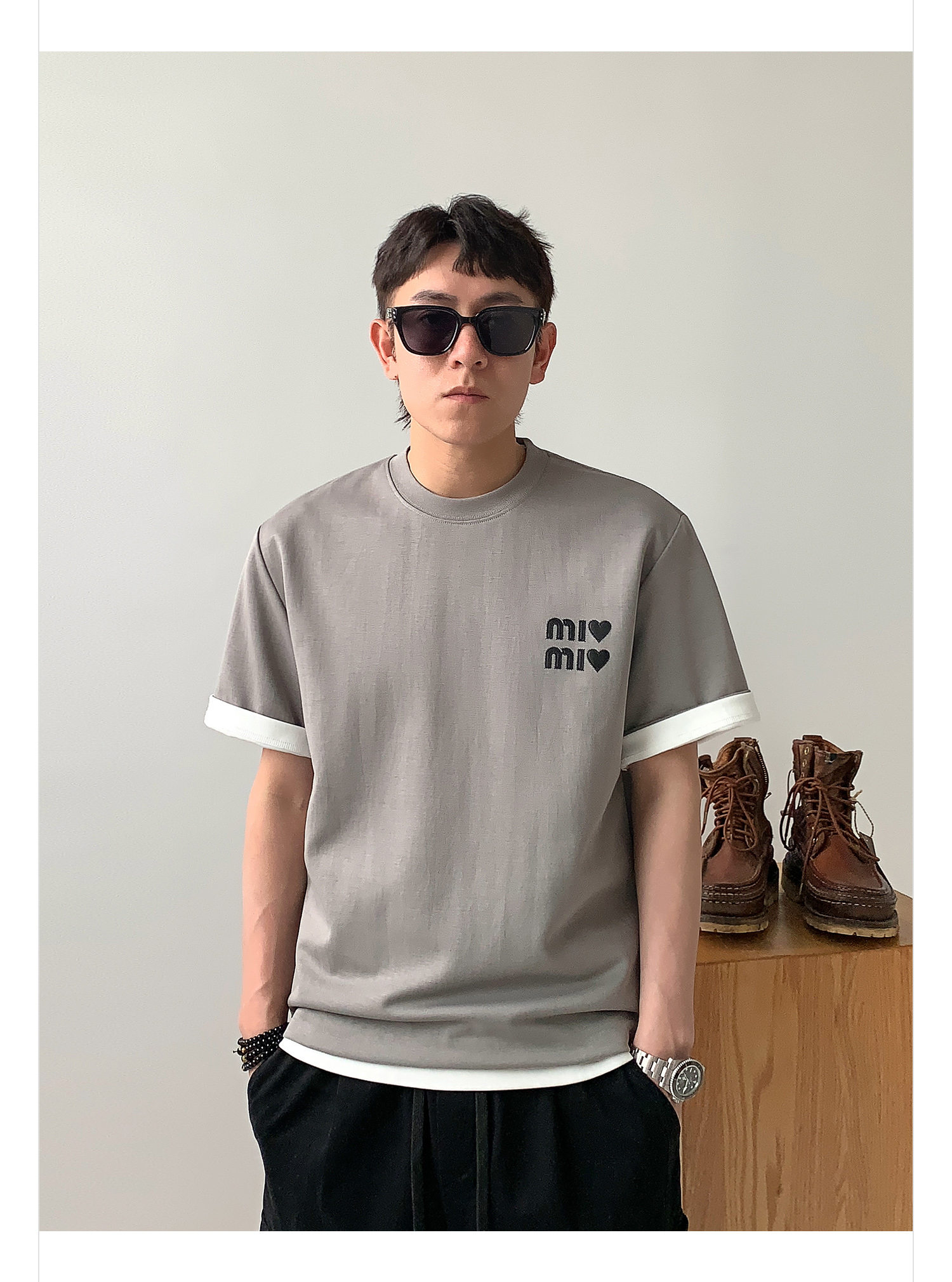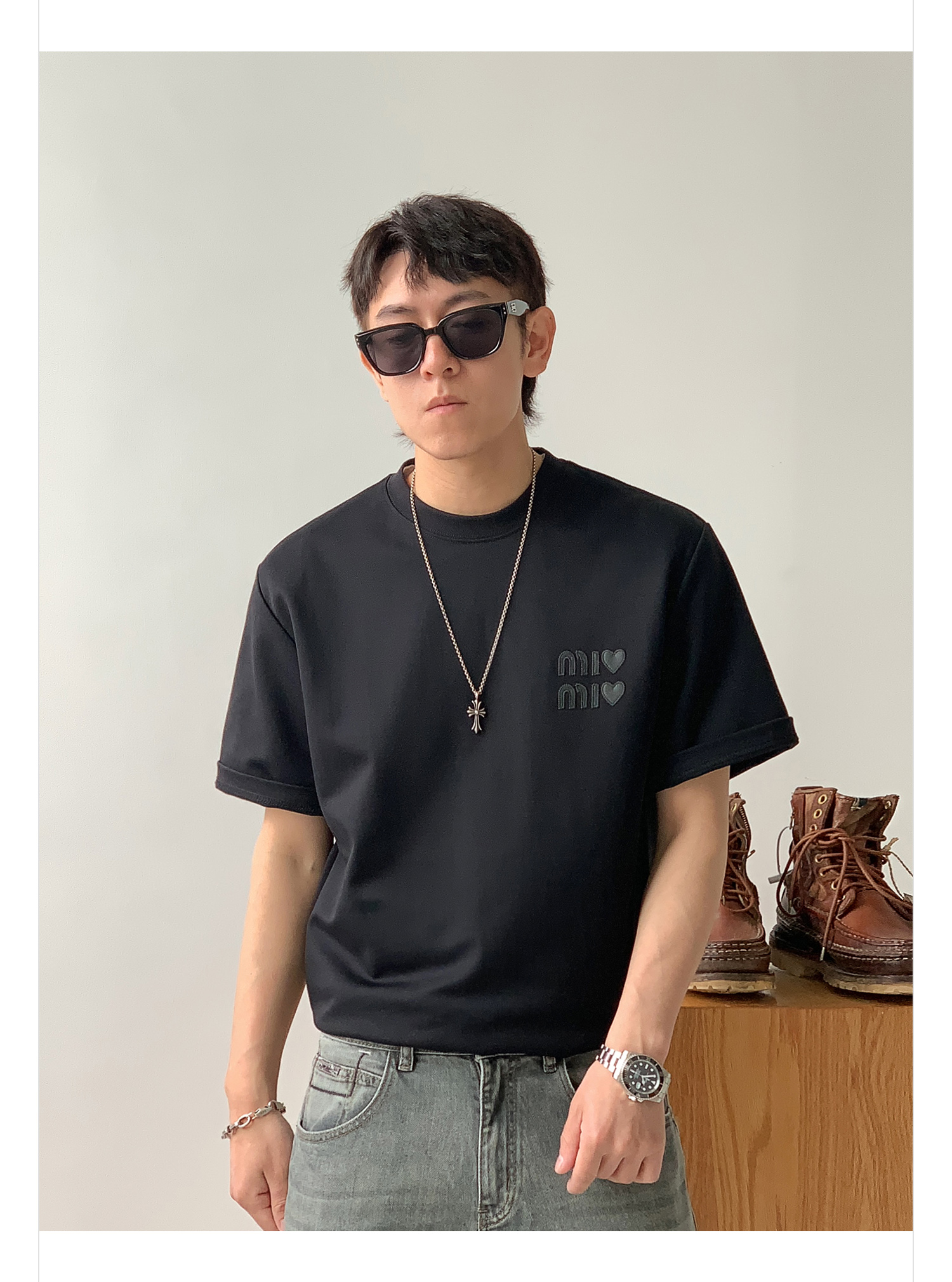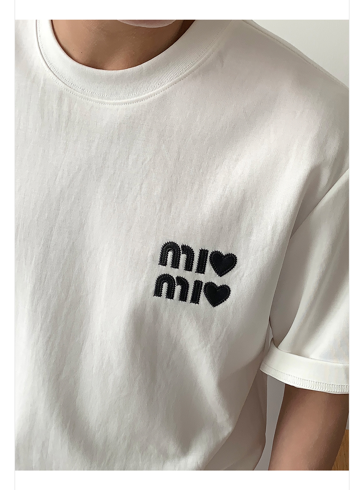 徐太浪情侣爱心绣花短袖T恤男2025新款夏季高街宽松休闲圆领上衣