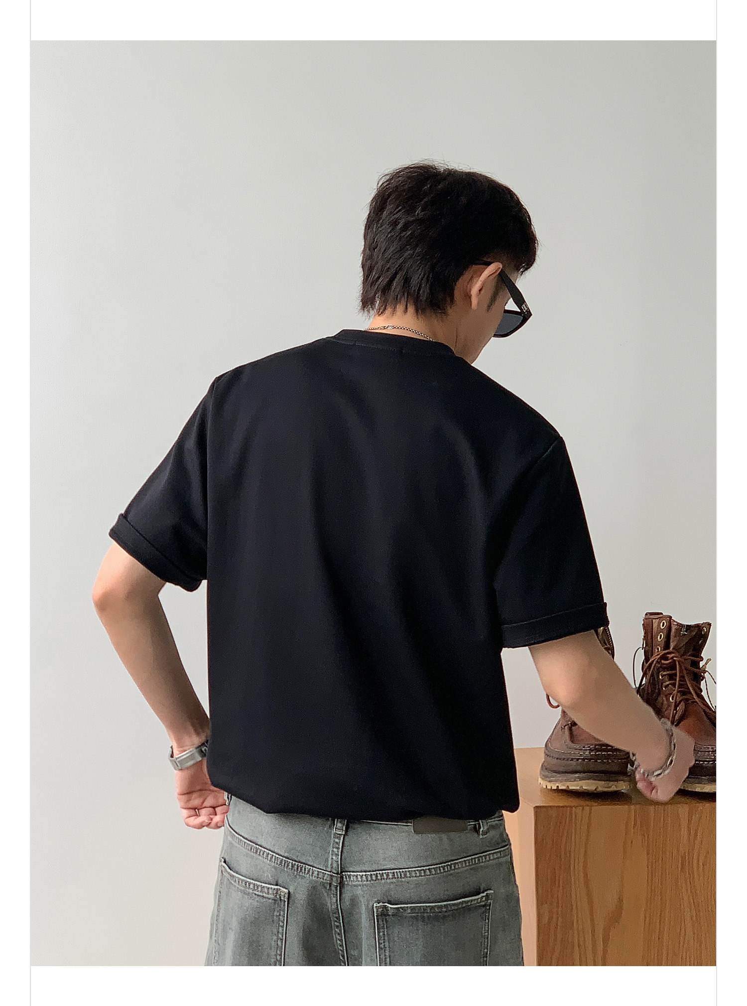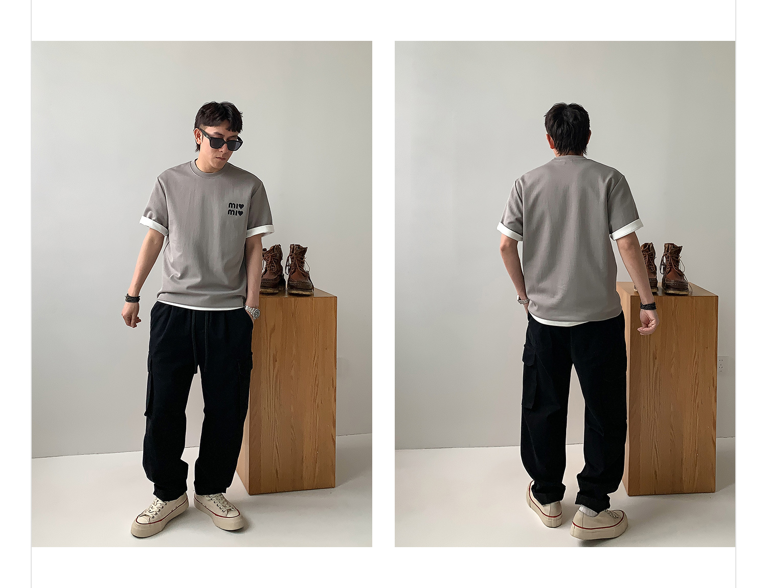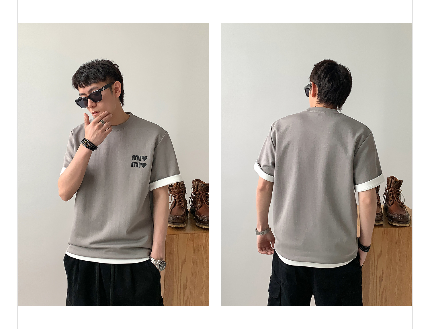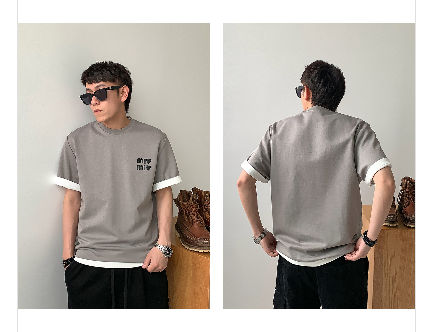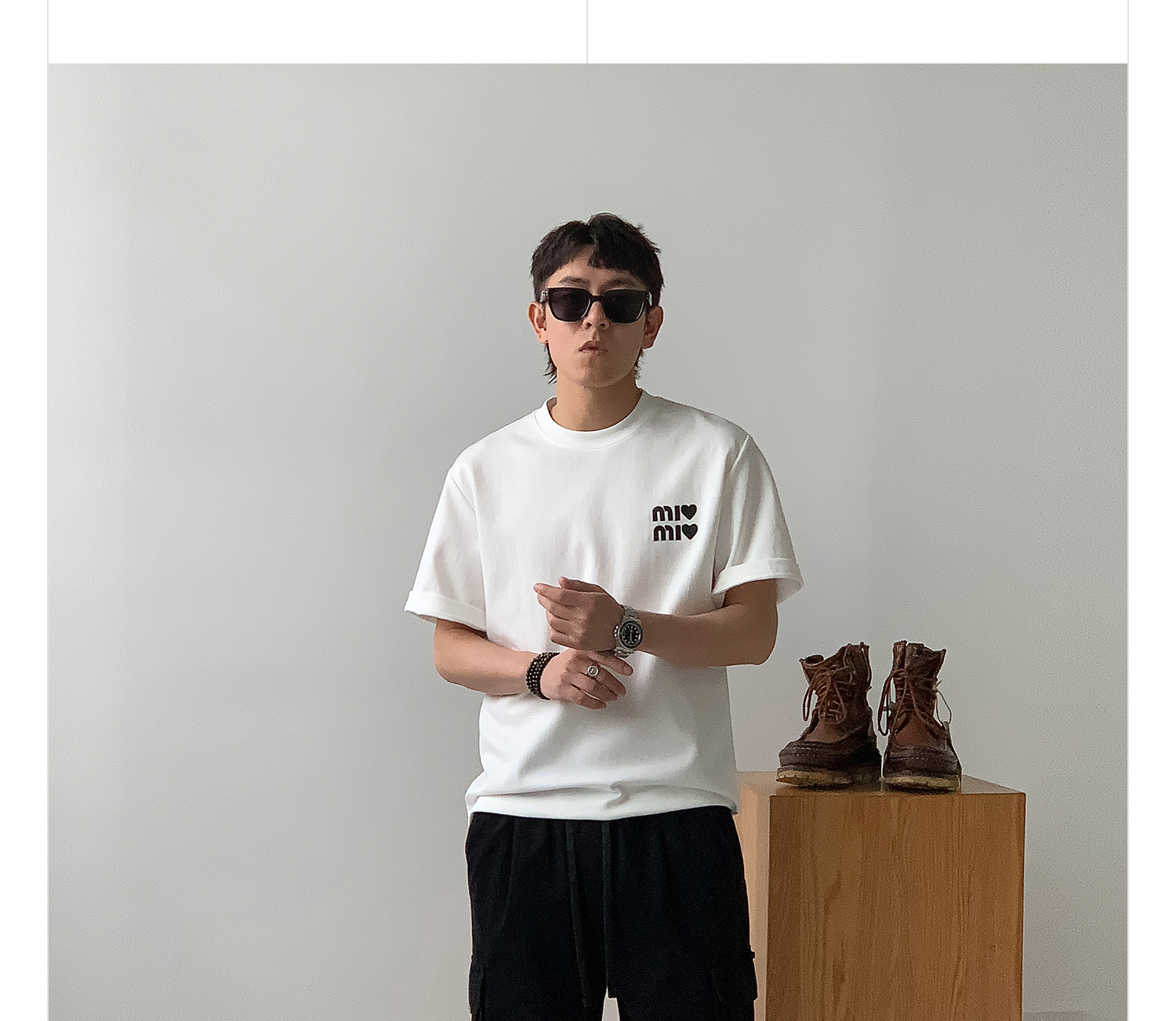 徐太浪情侣爱心绣花短袖T恤男2025新款夏季高街宽松休闲圆领上衣