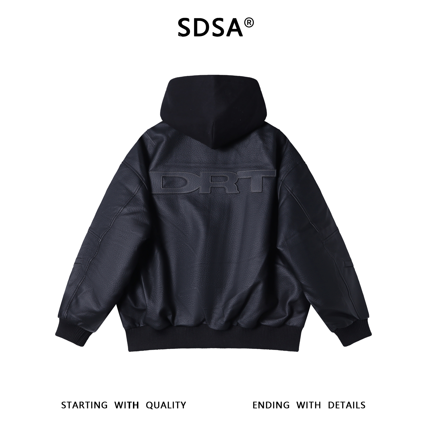 85060SDSA男士秋冬新款痞帅男装潮牌皮面字母连帽羽绒服高街风百搭外套