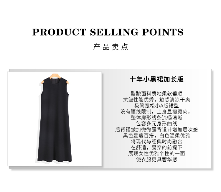 R30【十年小黑裙2.0】加长款夏季轻职风加长款气质高级无袖连衣裙N24LE01044-12.16直播