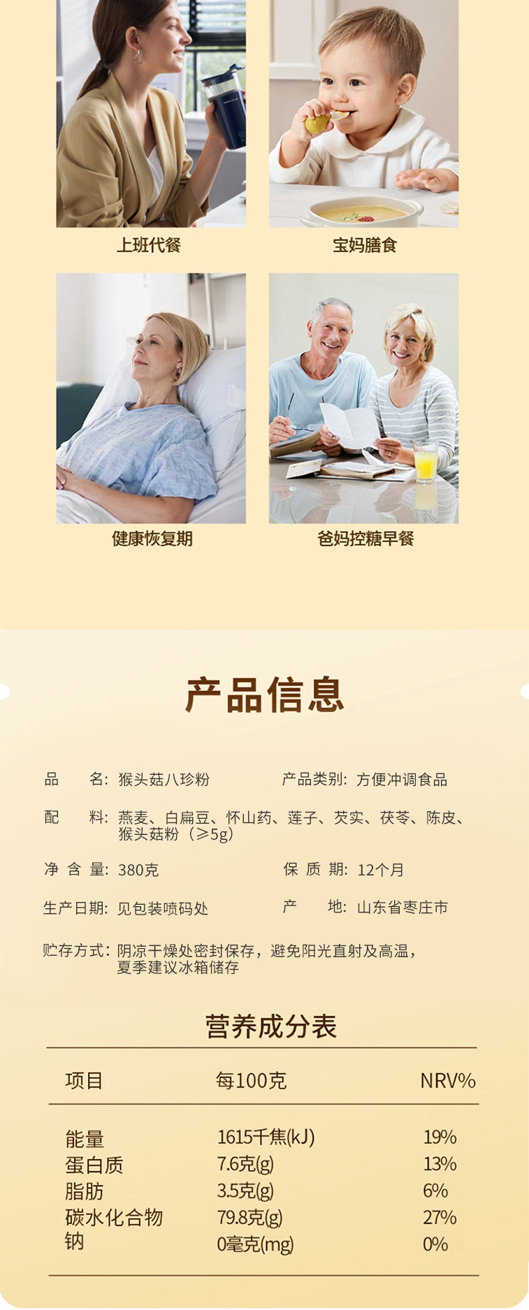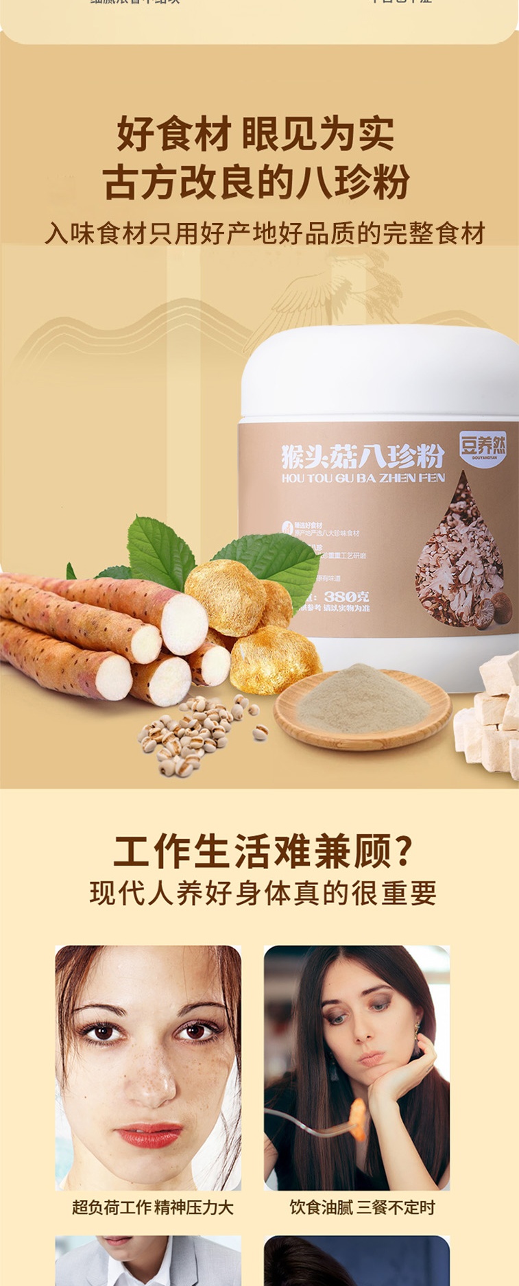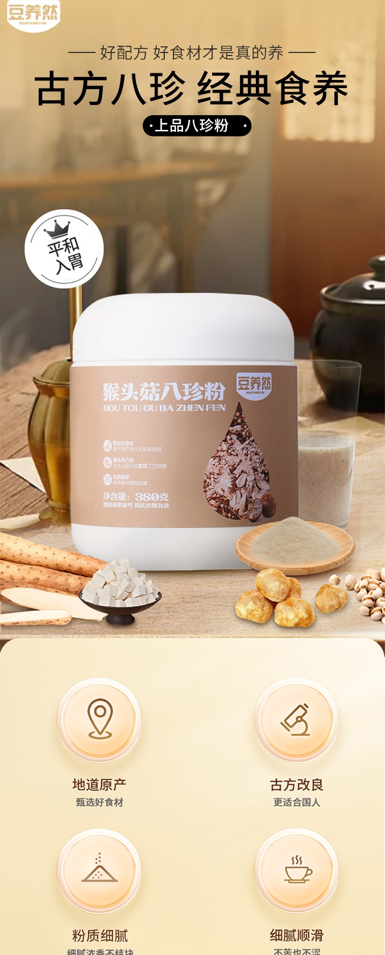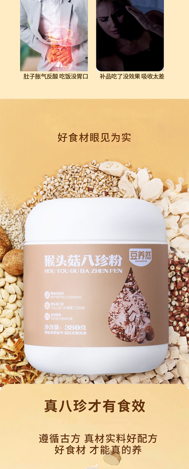 2罐特价【豆养然猴头菇八珍粉】代餐/早餐/宵夜,千年古方改良 精选八大珍品食材 配料超干净 0蔗糖 0添加,破壁研磨好吸收