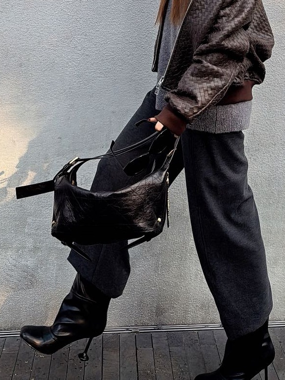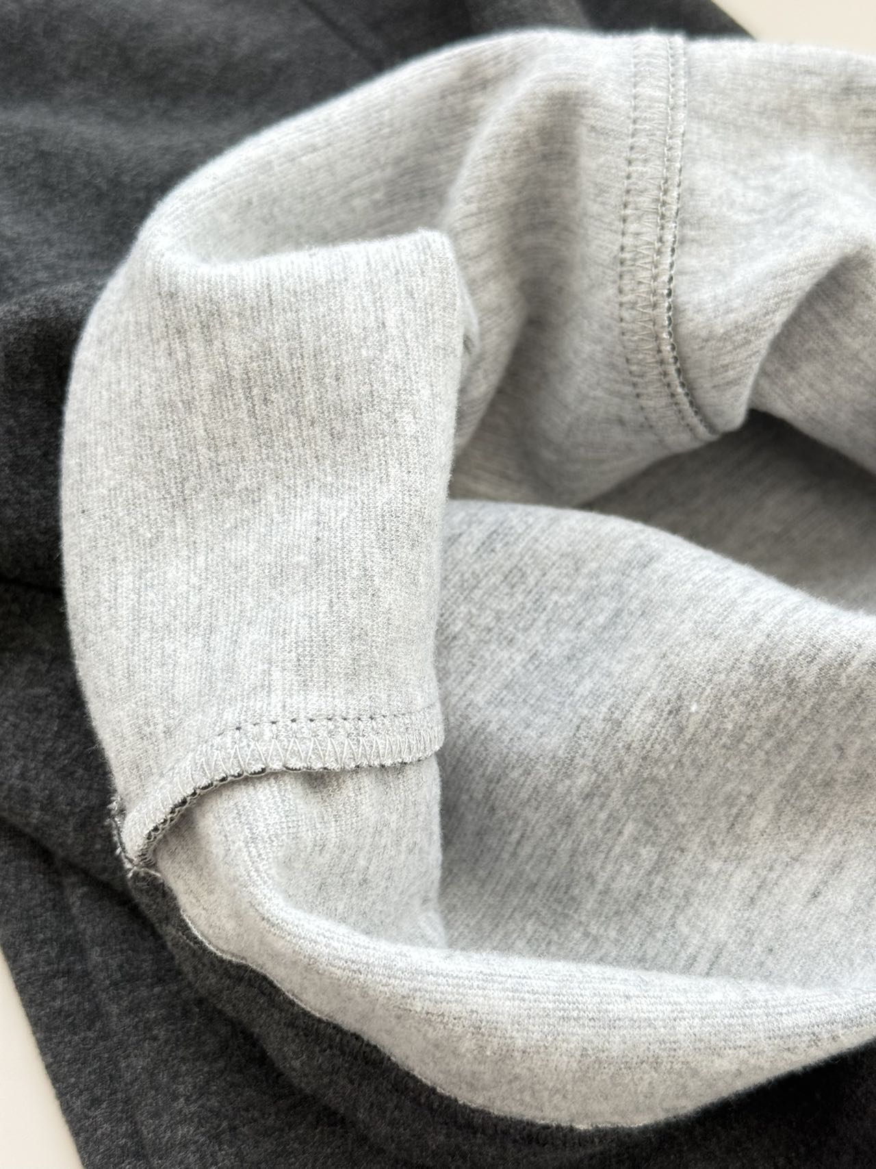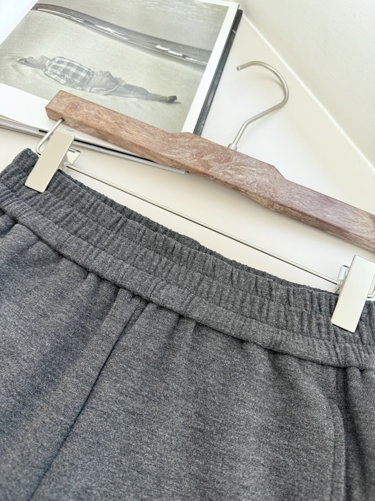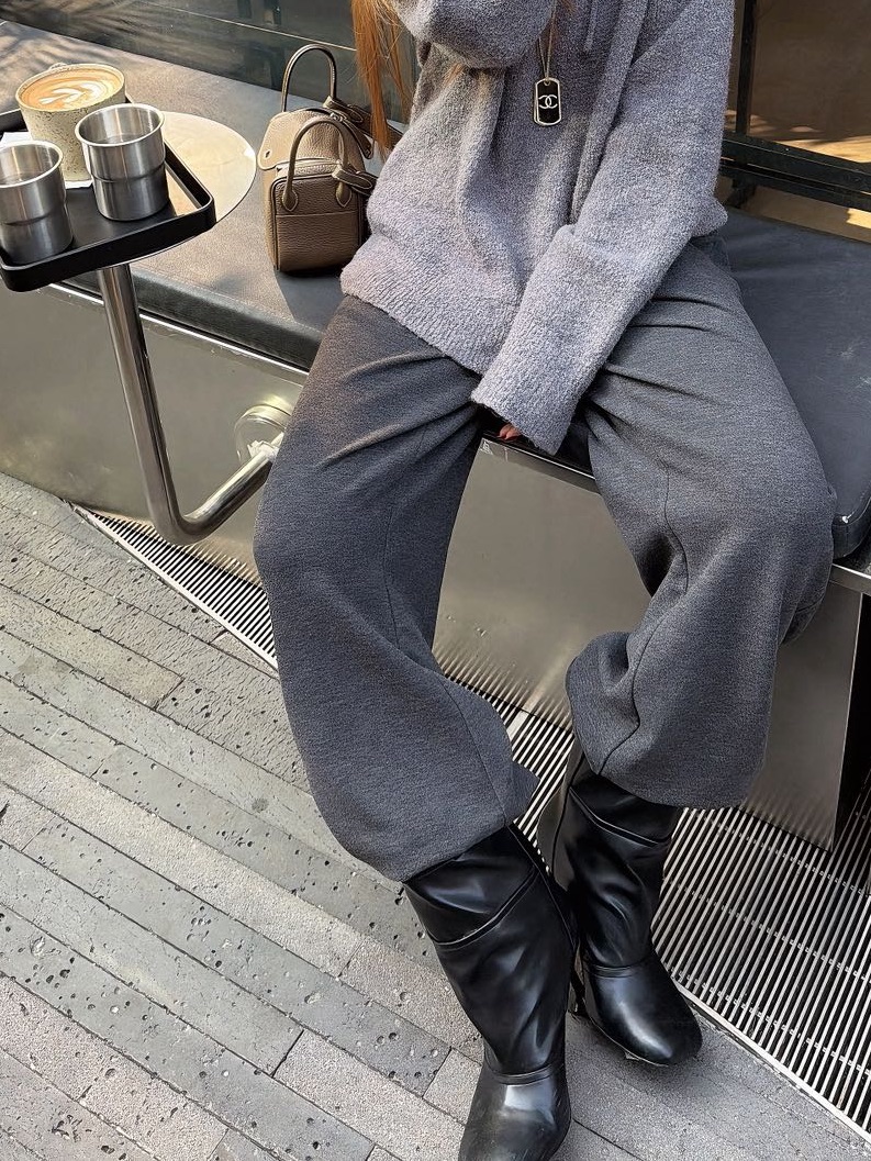 这是一条今年秋冬非常流行的深灰色糯米裤,也叫云朵裤、空气裤,主打软糯亲肤的质感和松弛慵懒的版型。