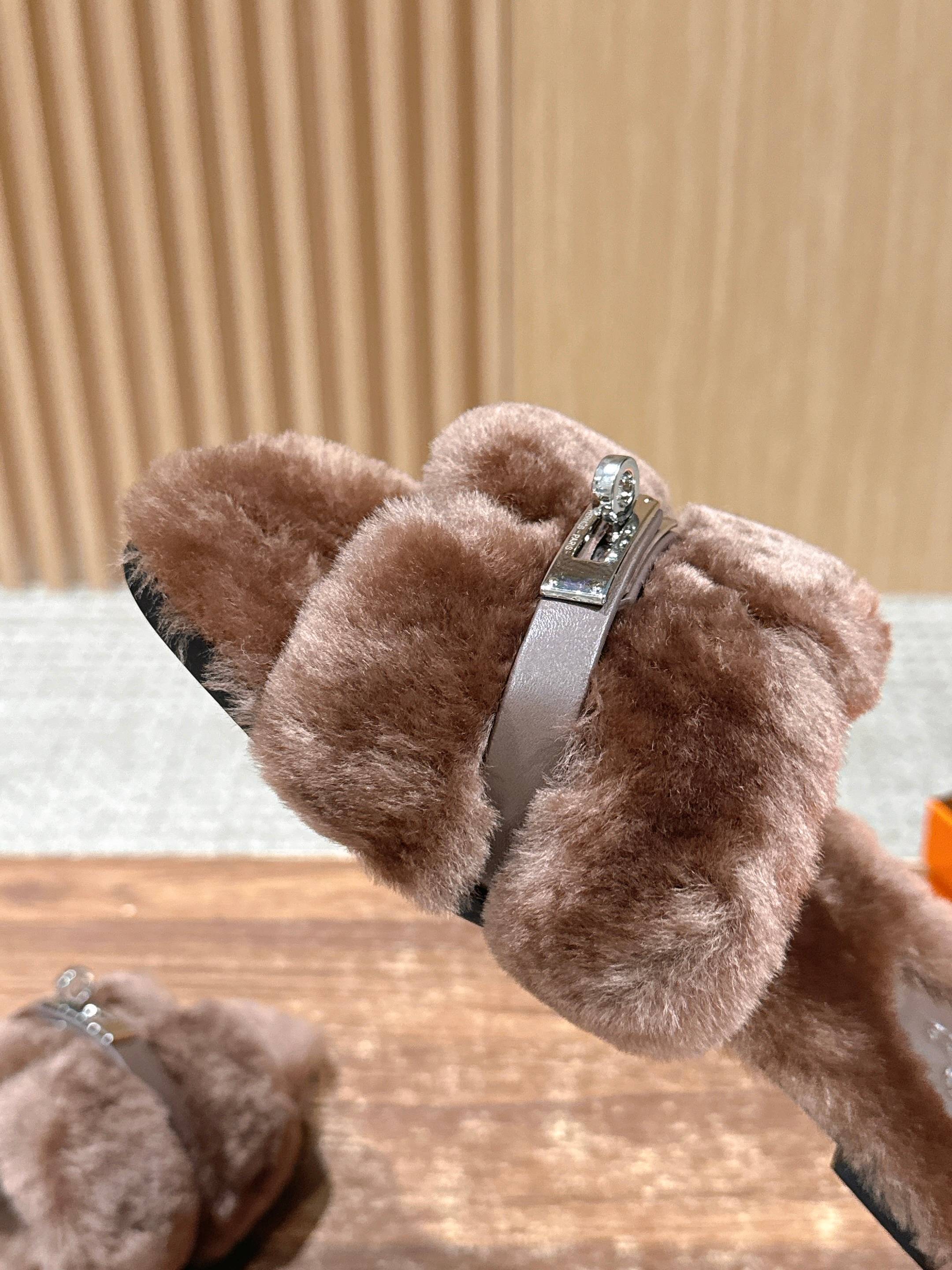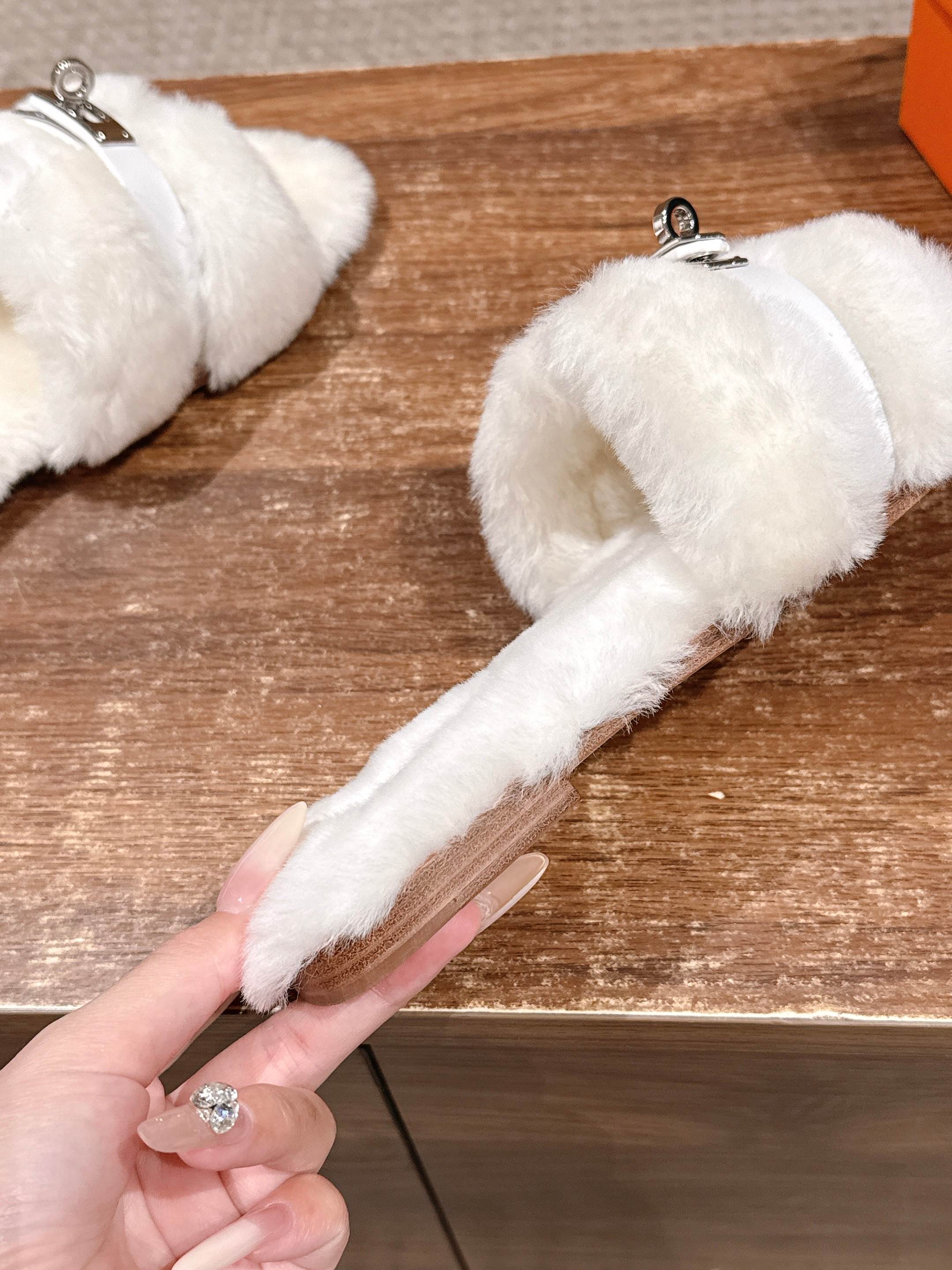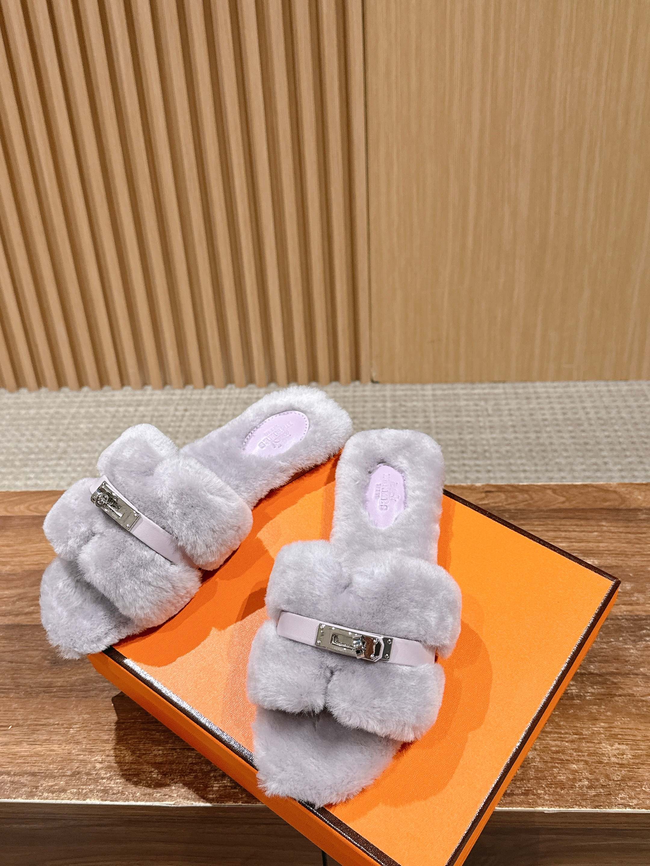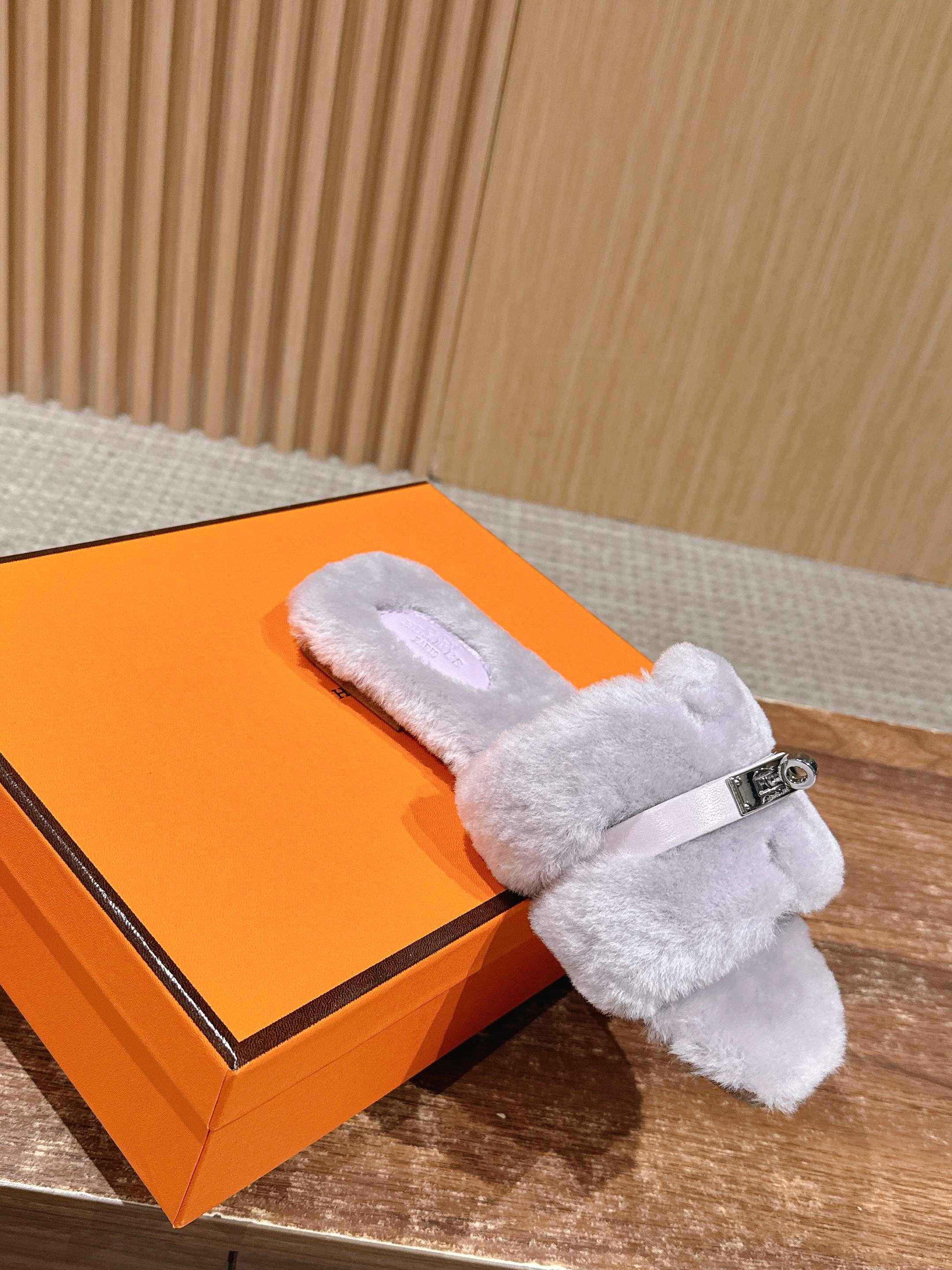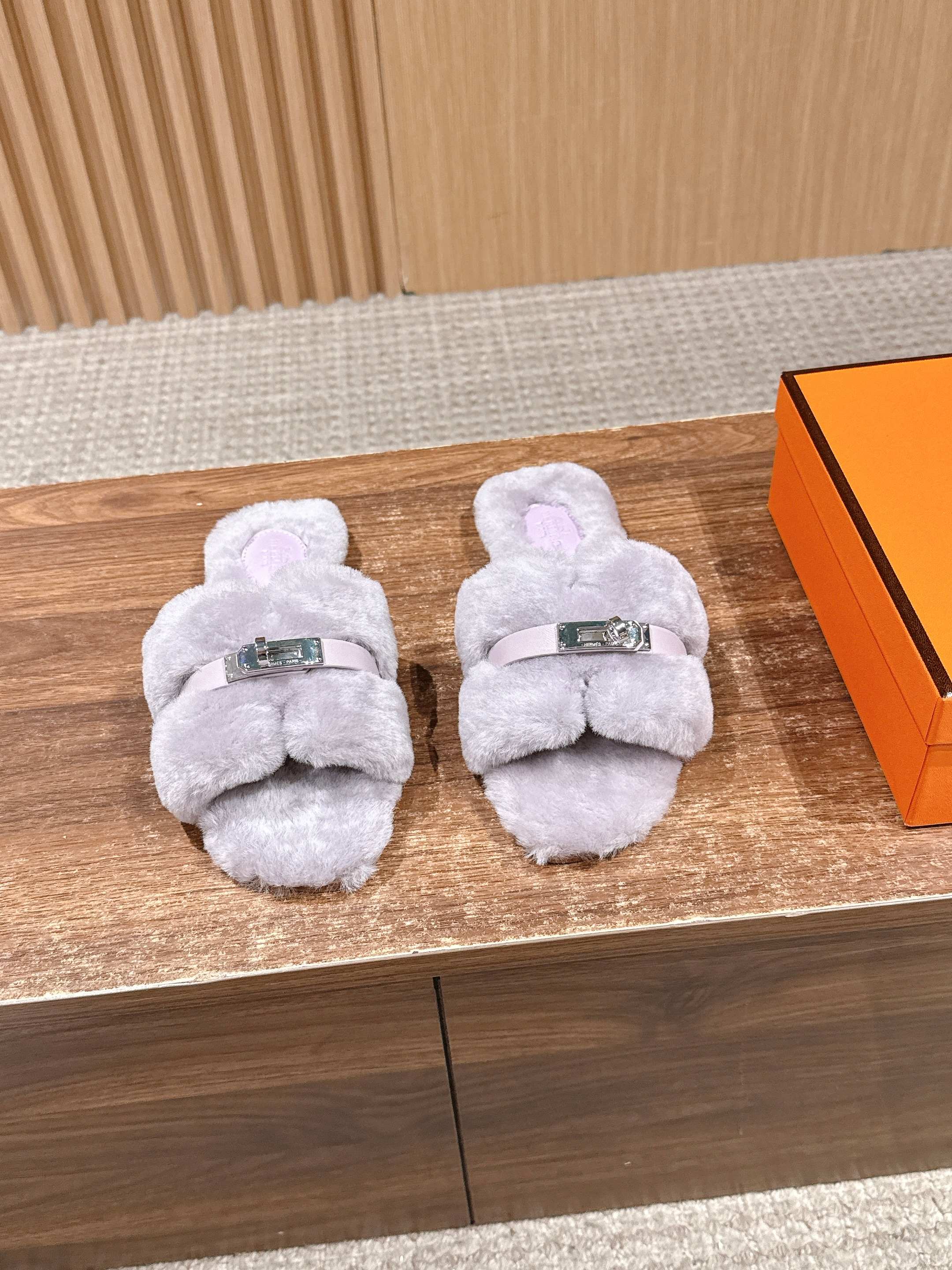 Hermer Giulia毛拖系列Kelly扣H毛拖鞋 万年经典款羊毛‘H’拖鞋 经典H拖搭配Kelly扣更为亮眼!一双平底拖鞋,属于休闲舒适的鞋款类型,适合日常居家或者在一些轻松的场合穿着。这种拖鞋款式简约却又不失时尚感,兼具实用性与时尚度。 整体采用了羊毛材质,看起来非常柔软蓬松,不仅在视觉上给人一种温暖舒适的感觉,实际穿着时也能提供极佳的亲肤体验,尤其适合在较凉爽的季节或者想要营造温暖氛围感的时候穿着。这种毛绒材质的选择也体现了品牌在材质运用上的用心,既要保证奢华感,又要兼顾穿着的舒适程度。 鞋面:羊毛 内里垫脚:羊毛 鞋底:意大利A级双层真皮大底 码数:35-39(40.41定做不退换)