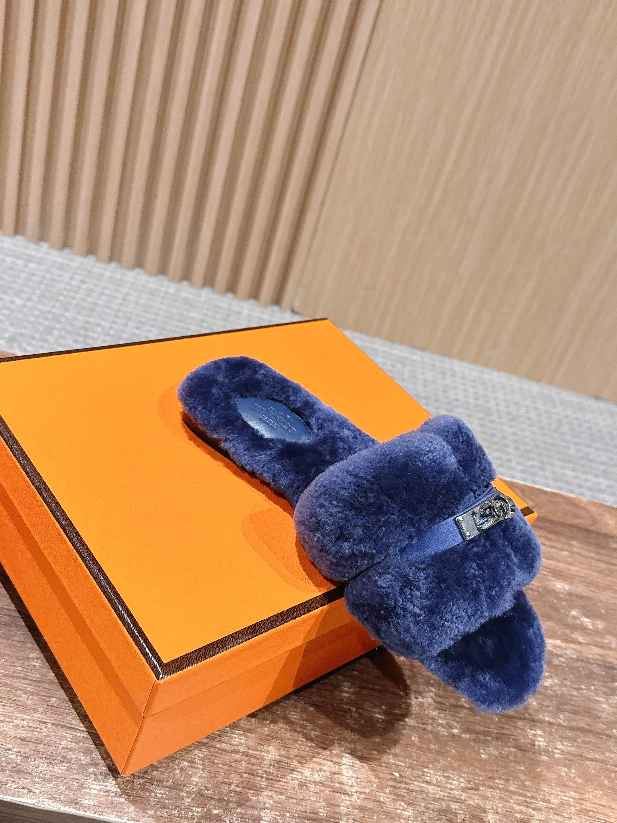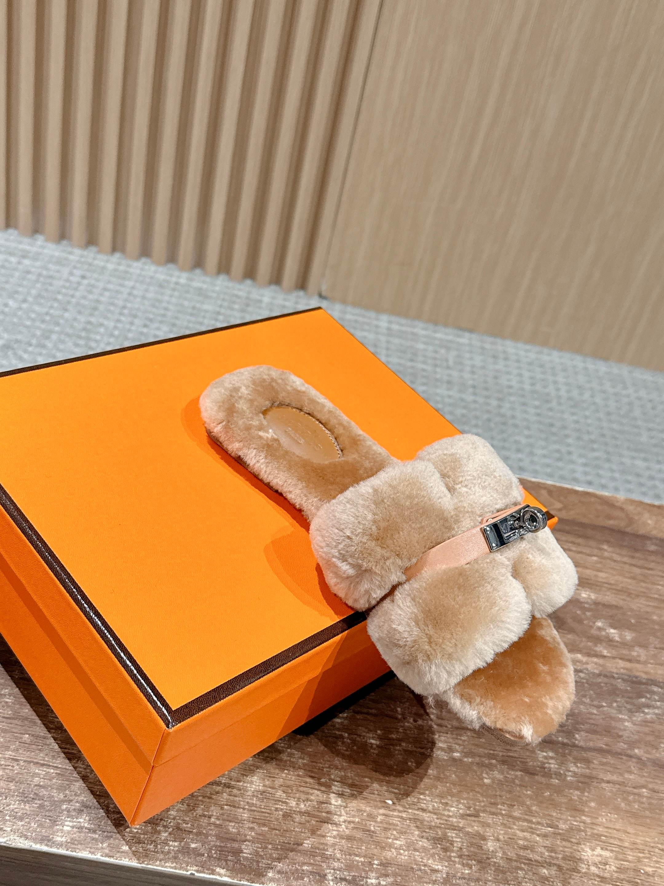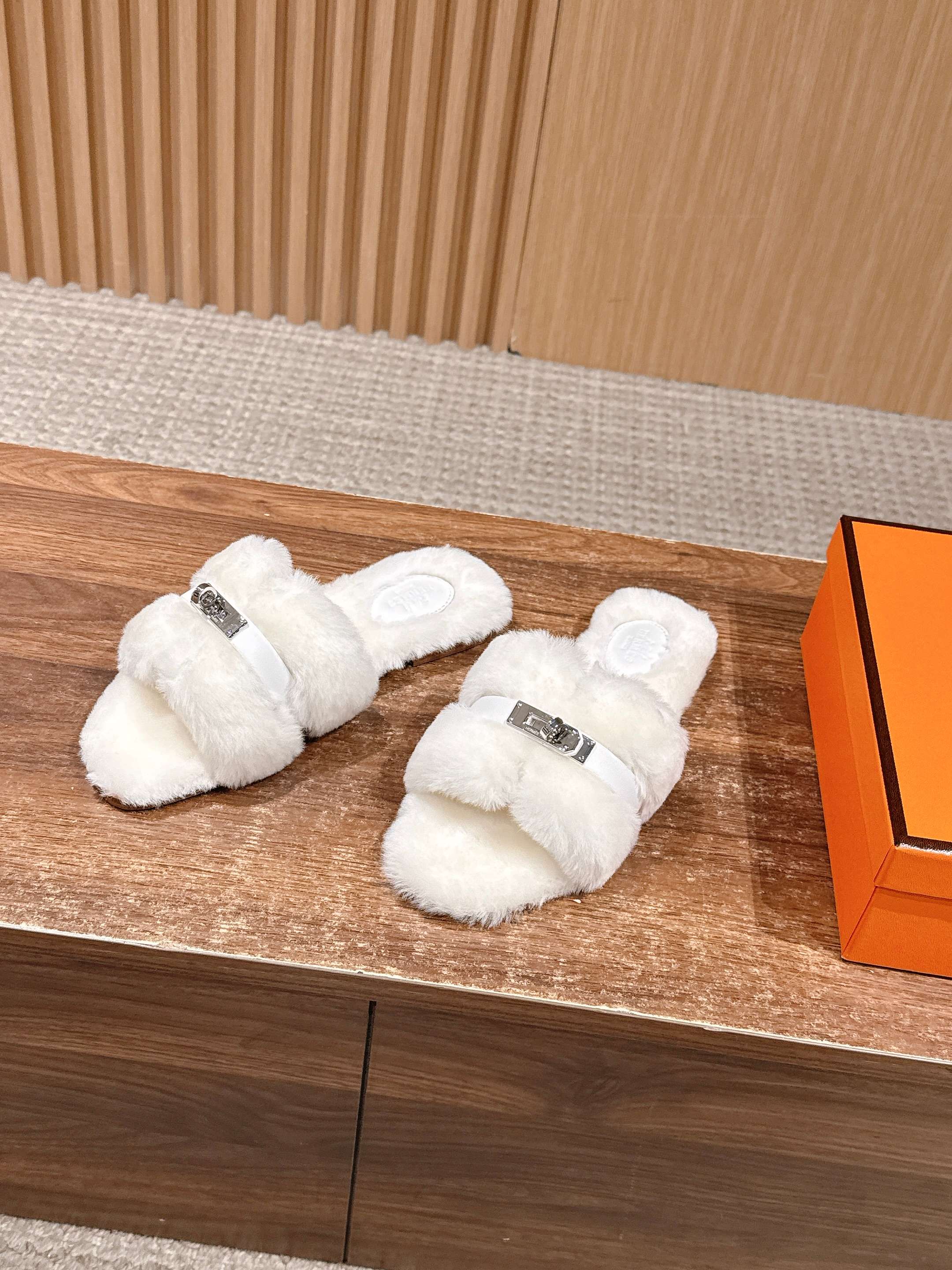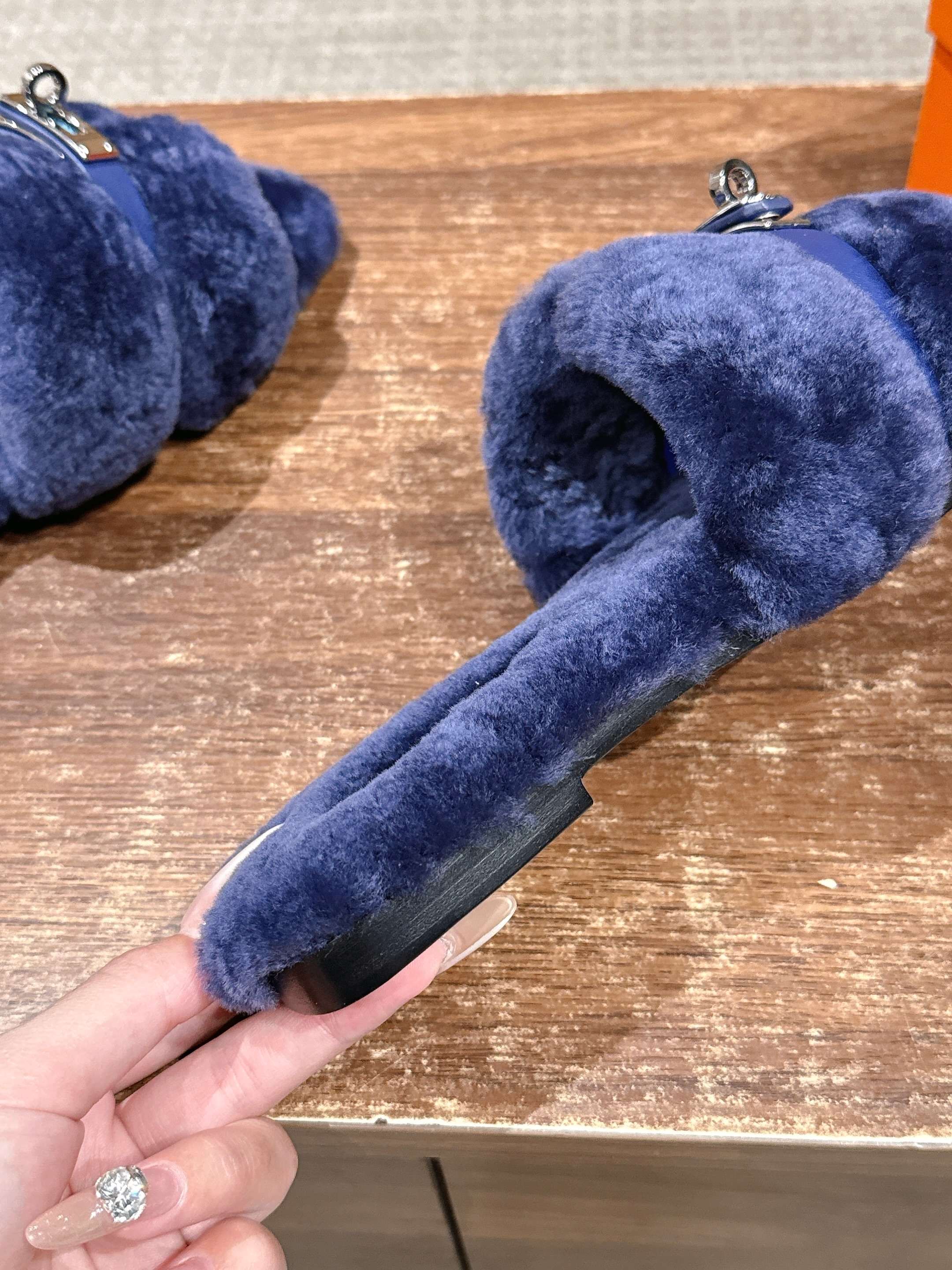 Hermer Giulia毛拖系列Kelly扣H毛拖鞋 万年经典款羊毛‘H’拖鞋 经典H拖搭配Kelly扣更为亮眼!一双平底拖鞋,属于休闲舒适的鞋款类型,适合日常居家或者在一些轻松的场合穿着。这种拖鞋款式简约却又不失时尚感,兼具实用性与时尚度。 整体采用了羊毛材质,看起来非常柔软蓬松,不仅在视觉上给人一种温暖舒适的感觉,实际穿着时也能提供极佳的亲肤体验,尤其适合在较凉爽的季节或者想要营造温暖氛围感的时候穿着。这种毛绒材质的选择也体现了品牌在材质运用上的用心,既要保证奢华感,又要兼顾穿着的舒适程度。 鞋面:羊毛 内里垫脚:羊毛 鞋底:意大利A级双层真皮大底 码数:35-39(40.41定做不退换)