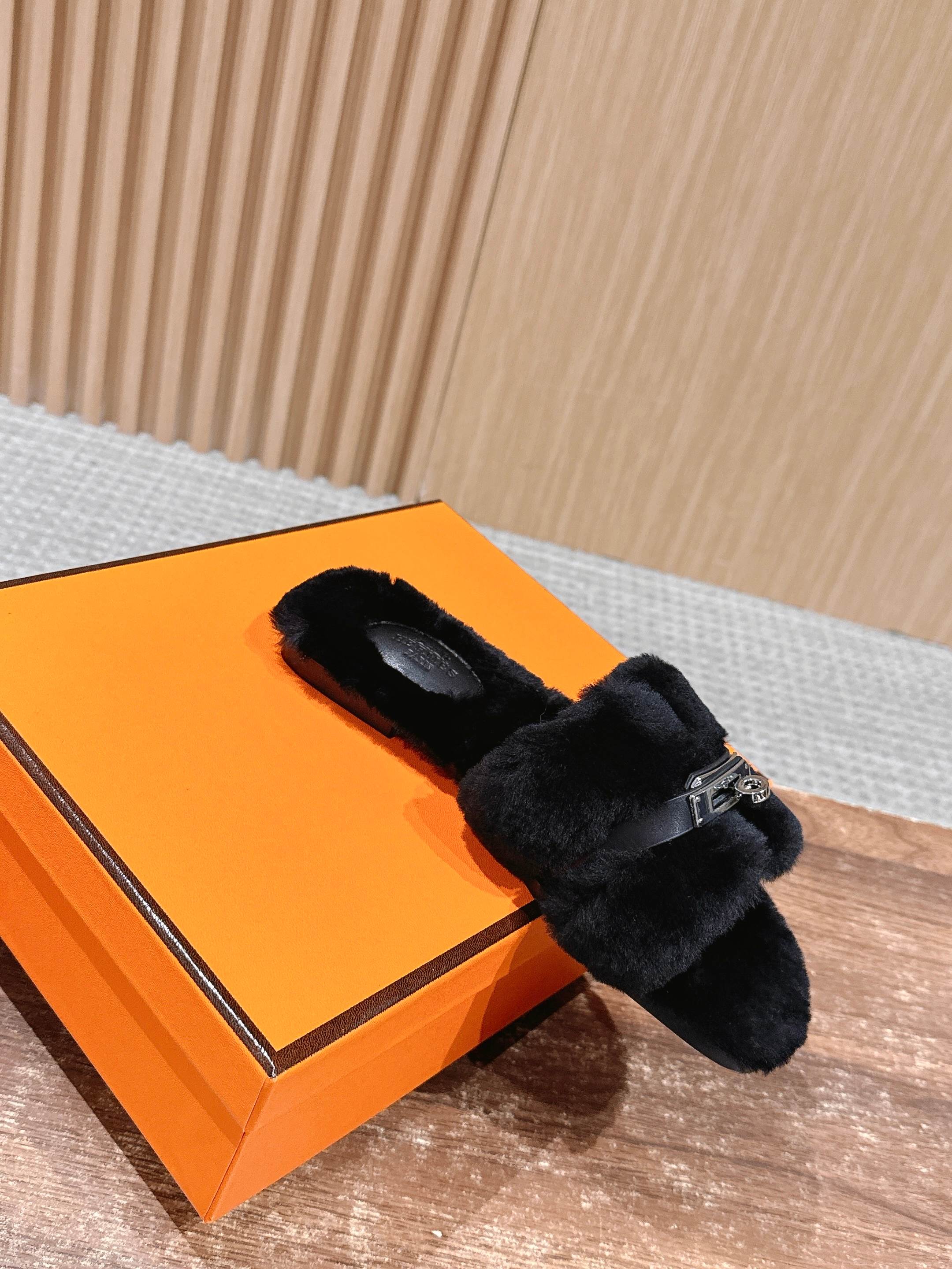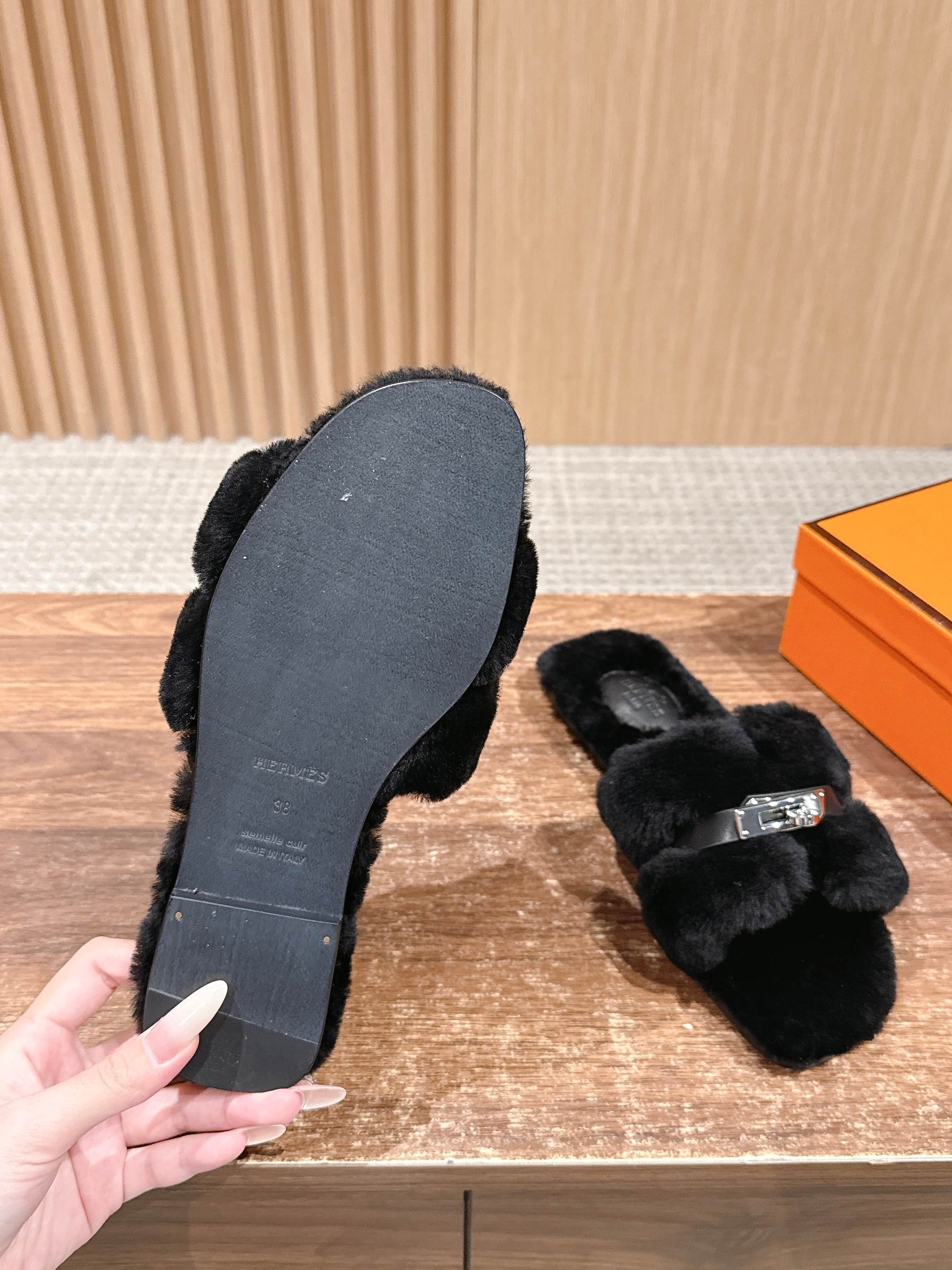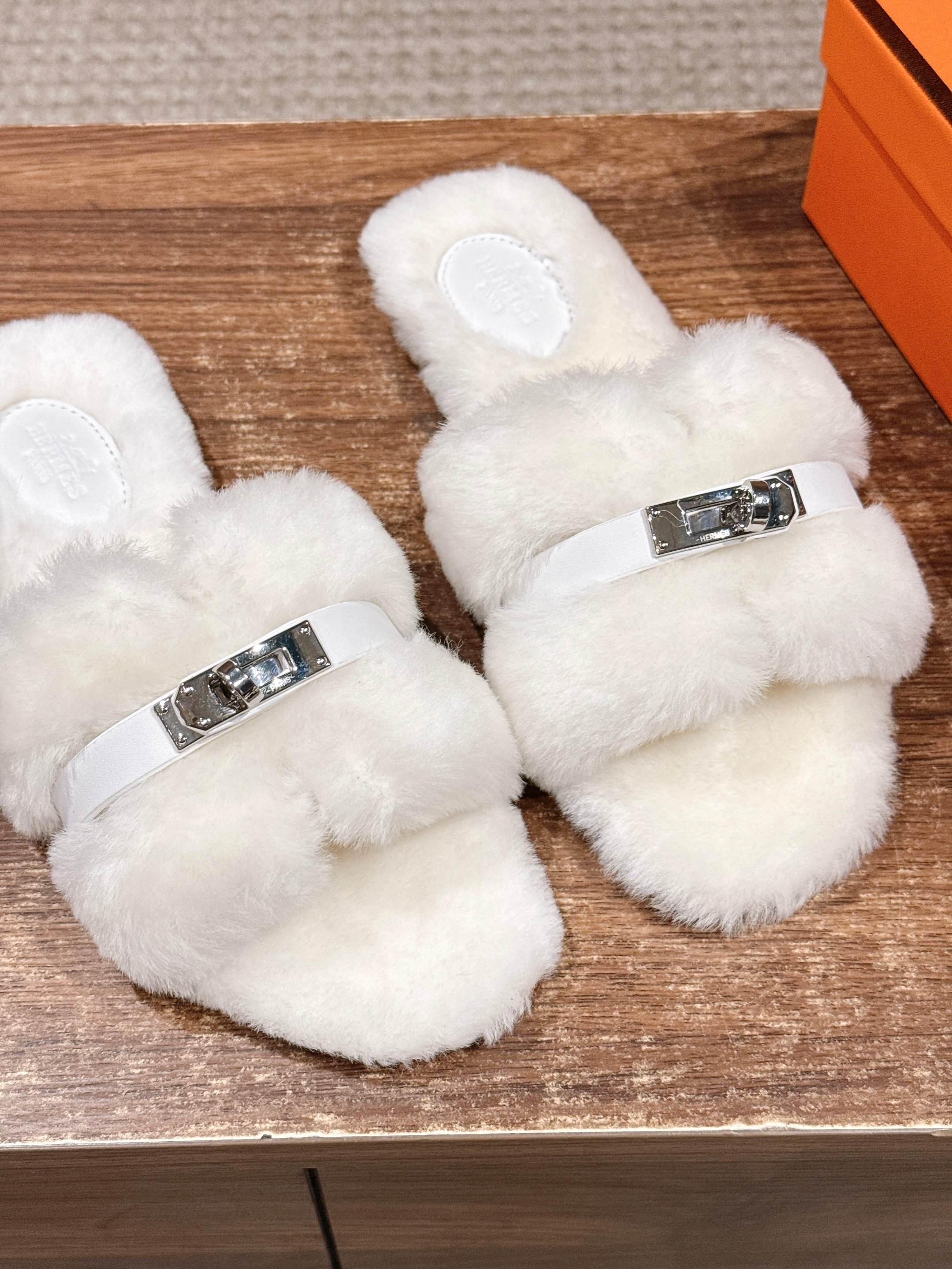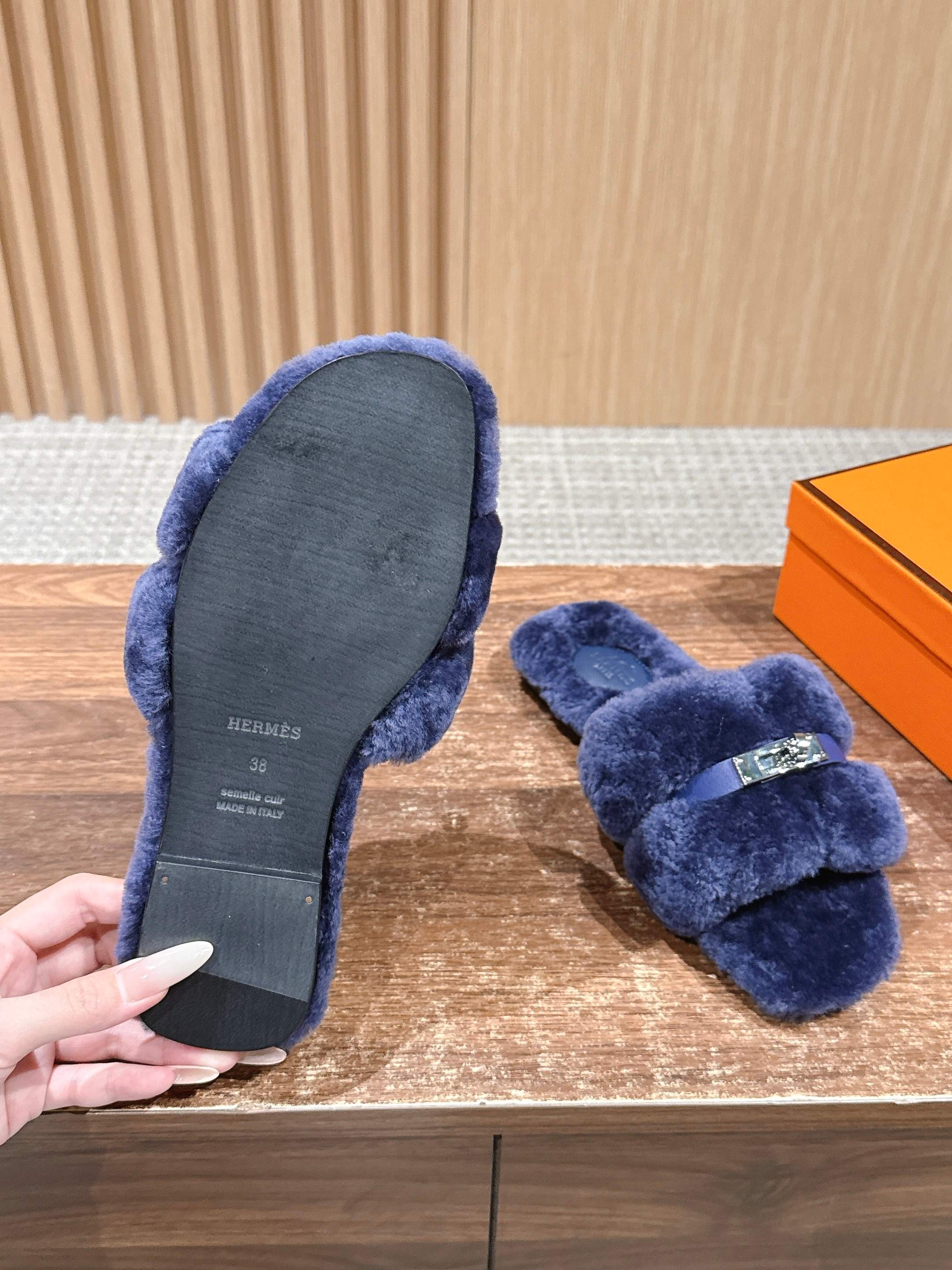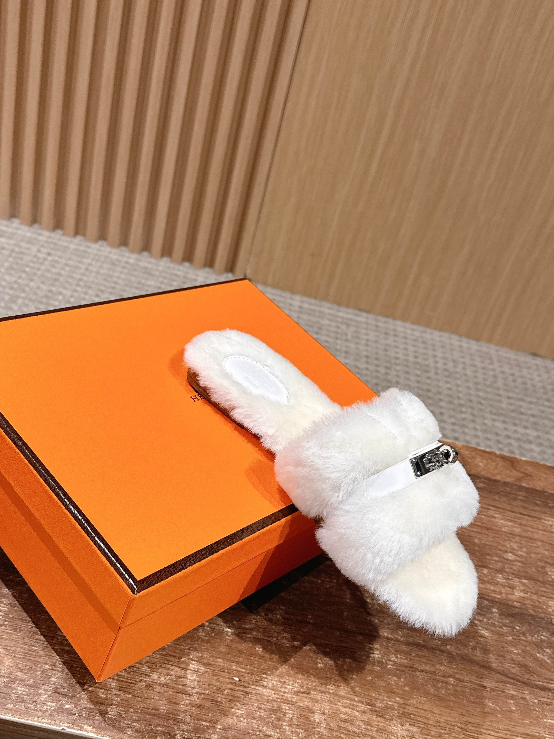 Hermer Giulia毛拖系列Kelly扣H毛拖鞋 万年经典款羊毛‘H’拖鞋 经典H拖搭配Kelly扣更为亮眼!一双平底拖鞋,属于休闲舒适的鞋款类型,适合日常居家或者在一些轻松的场合穿着。这种拖鞋款式简约却又不失时尚感,兼具实用性与时尚度。 整体采用了羊毛材质,看起来非常柔软蓬松,不仅在视觉上给人一种温暖舒适的感觉,实际穿着时也能提供极佳的亲肤体验,尤其适合在较凉爽的季节或者想要营造温暖氛围感的时候穿着。这种毛绒材质的选择也体现了品牌在材质运用上的用心,既要保证奢华感,又要兼顾穿着的舒适程度。 鞋面:羊毛 内里垫脚:羊毛 鞋底:意大利A级双层真皮大底 码数:35-39(40.41定做不退换)