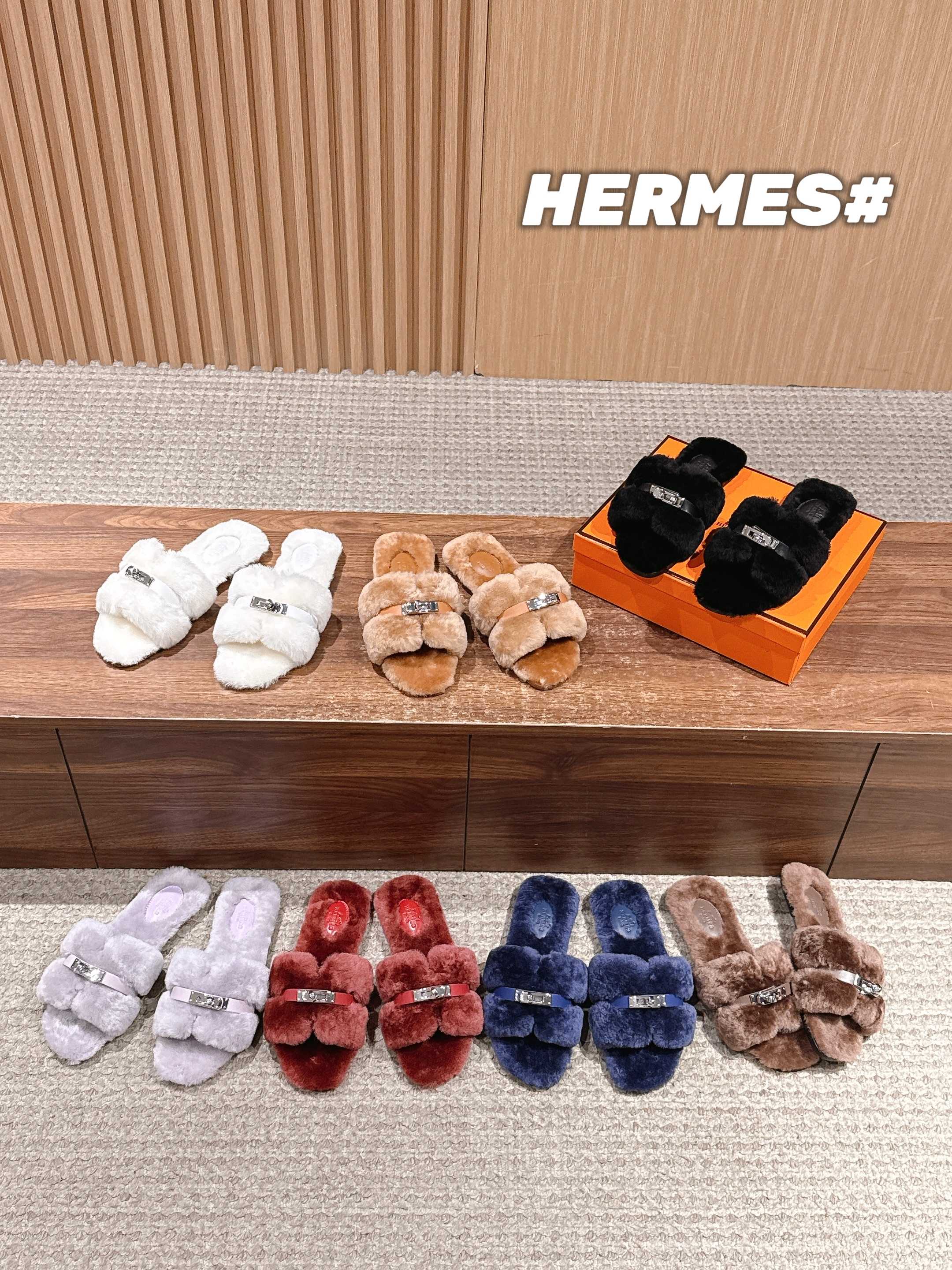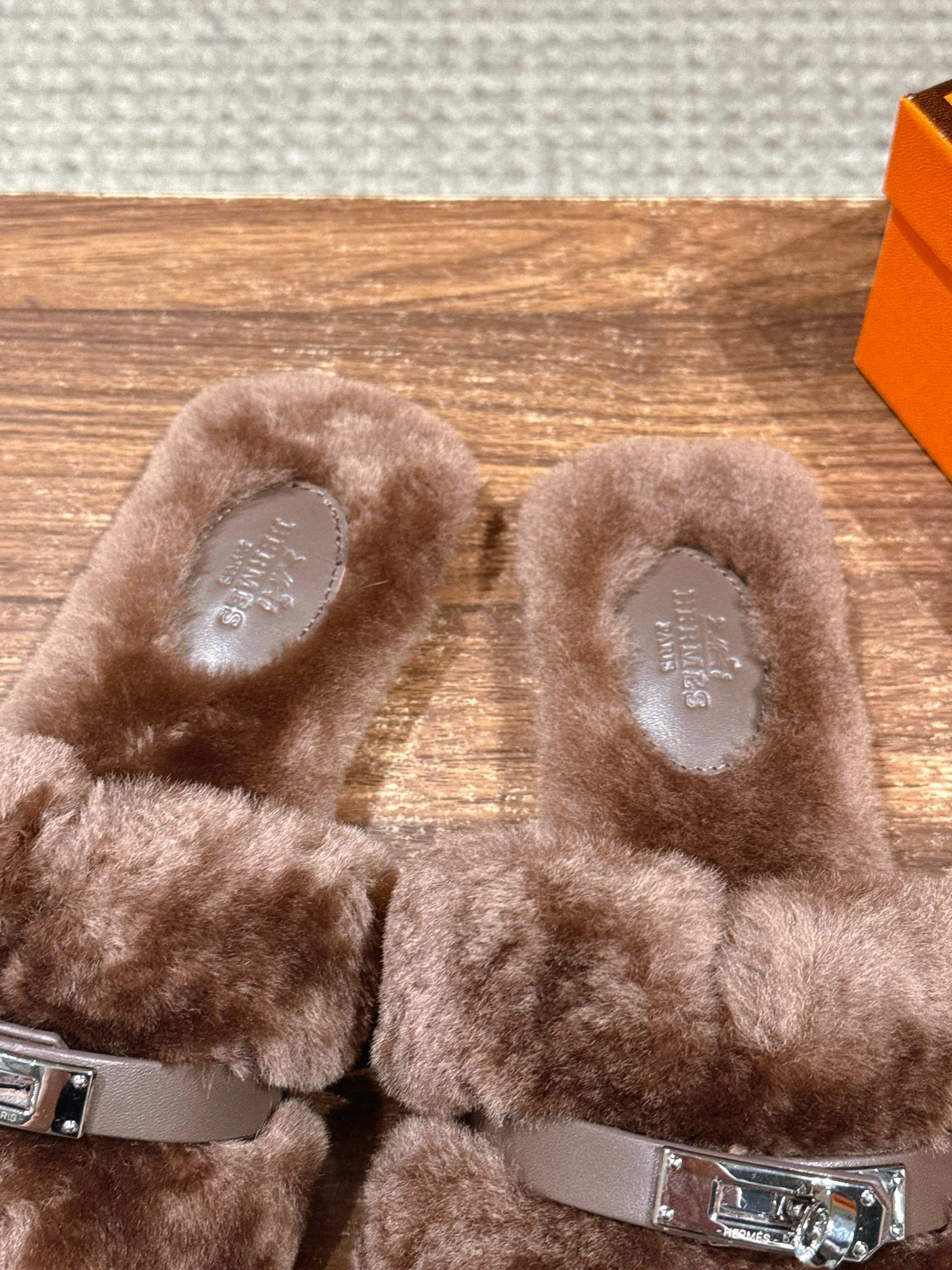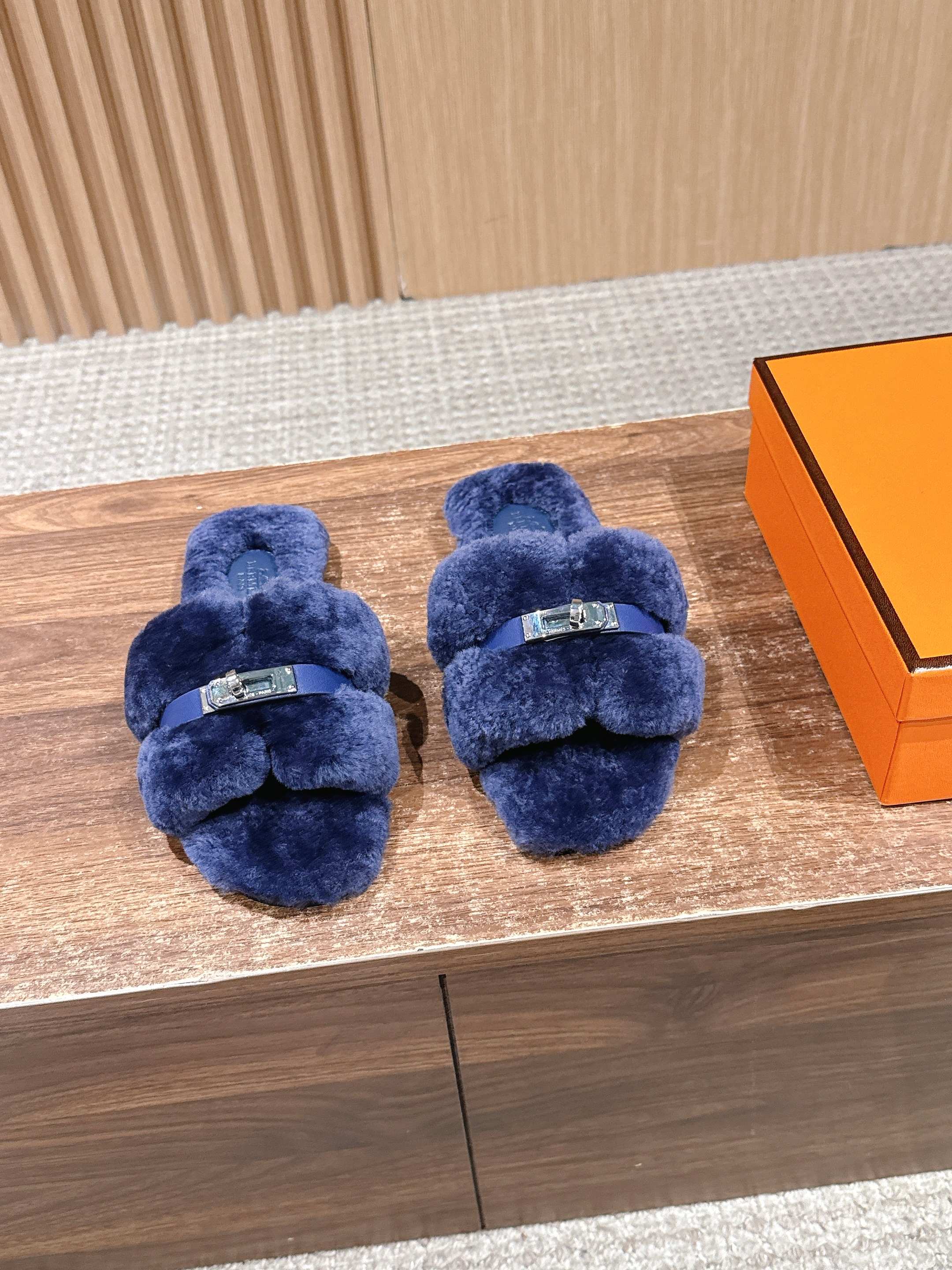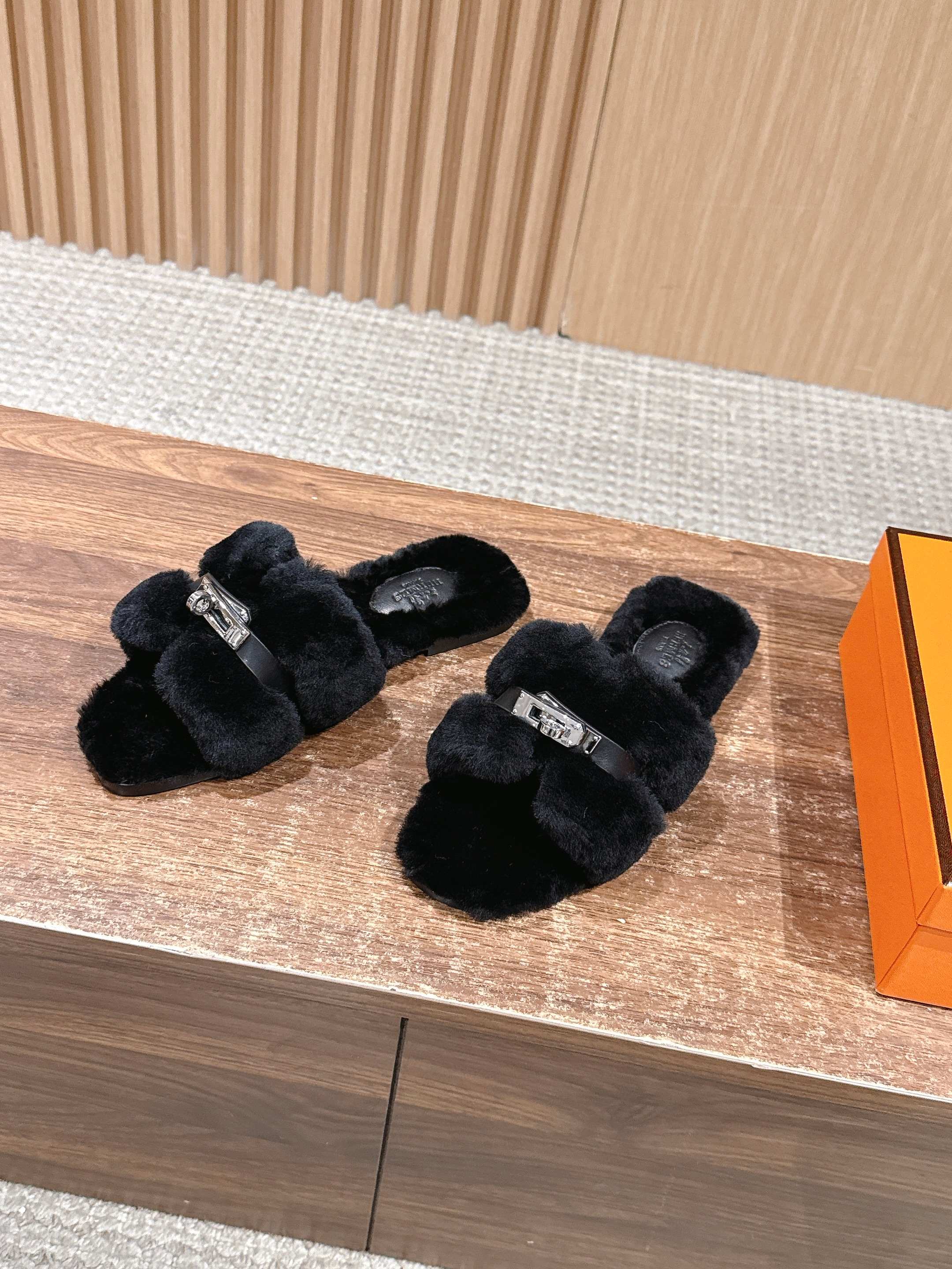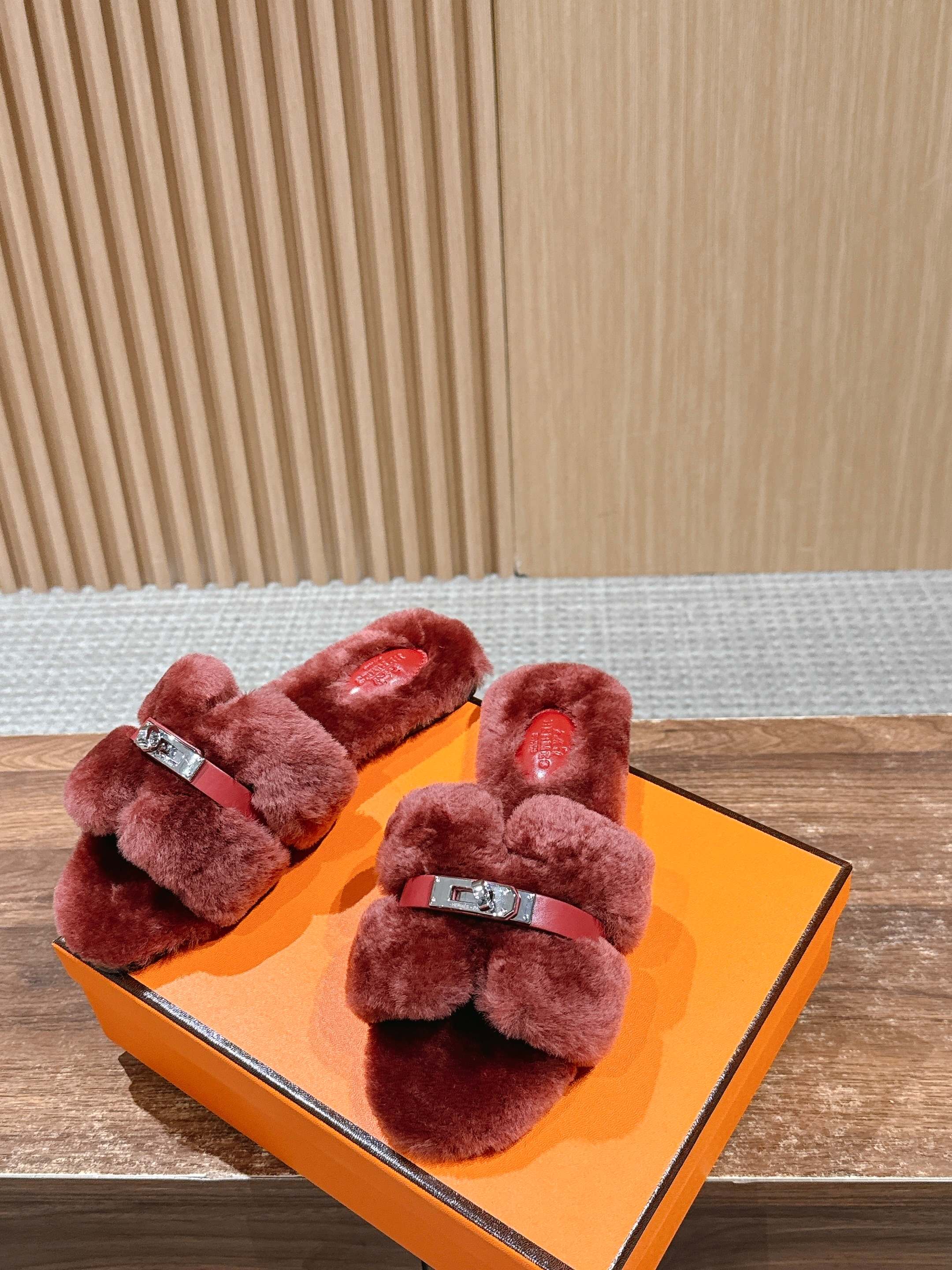 Hermer Giulia毛拖系列Kelly扣H毛拖鞋 万年经典款羊毛‘H’拖鞋 经典H拖搭配Kelly扣更为亮眼!一双平底拖鞋,属于休闲舒适的鞋款类型,适合日常居家或者在一些轻松的场合穿着。这种拖鞋款式简约却又不失时尚感,兼具实用性与时尚度。 整体采用了羊毛材质,看起来非常柔软蓬松,不仅在视觉上给人一种温暖舒适的感觉,实际穿着时也能提供极佳的亲肤体验,尤其适合在较凉爽的季节或者想要营造温暖氛围感的时候穿着。这种毛绒材质的选择也体现了品牌在材质运用上的用心,既要保证奢华感,又要兼顾穿着的舒适程度。 鞋面:羊毛 内里垫脚:羊毛 鞋底:意大利A级双层真皮大底 码数:35-39(40.41定做不退换)