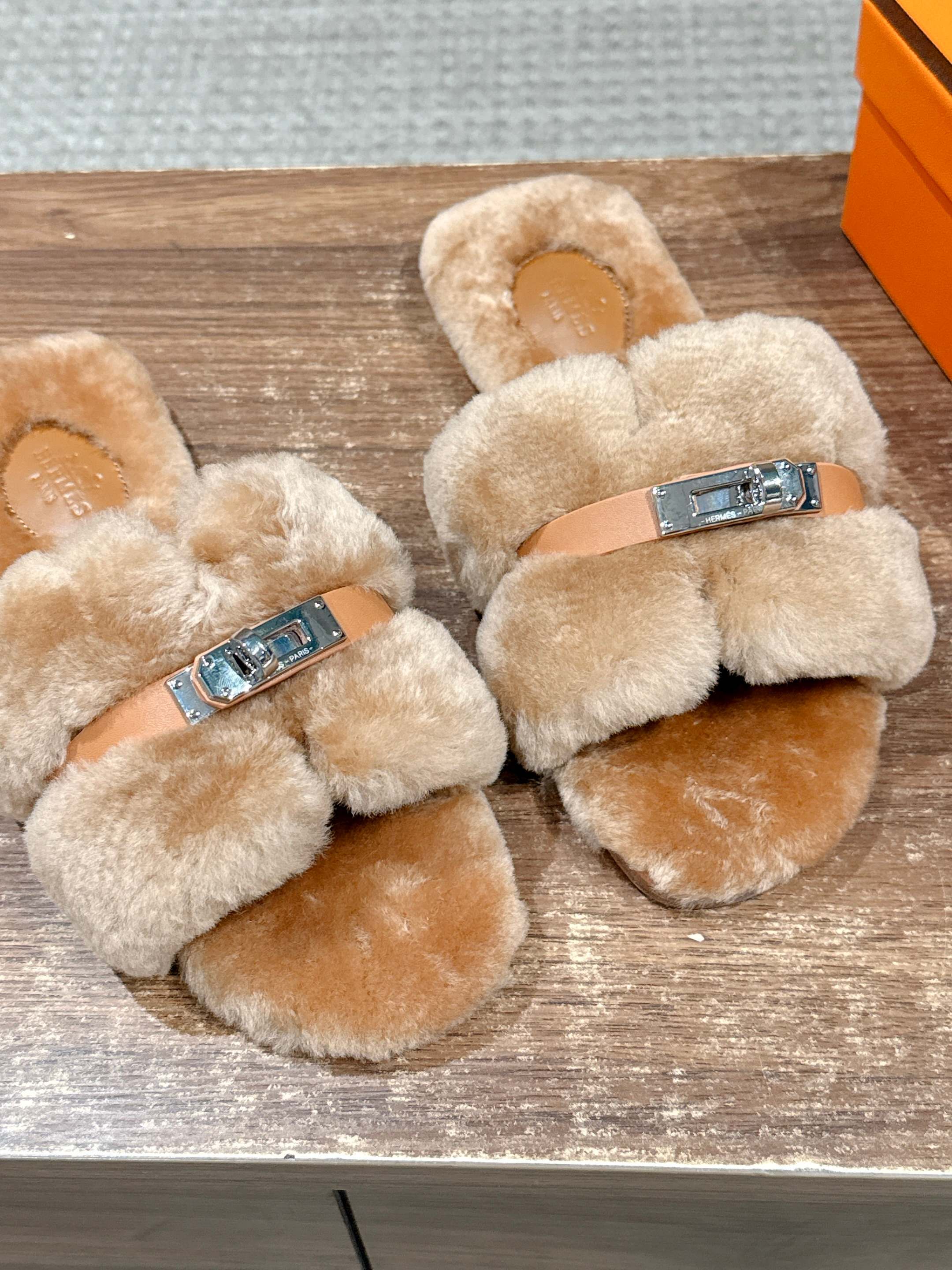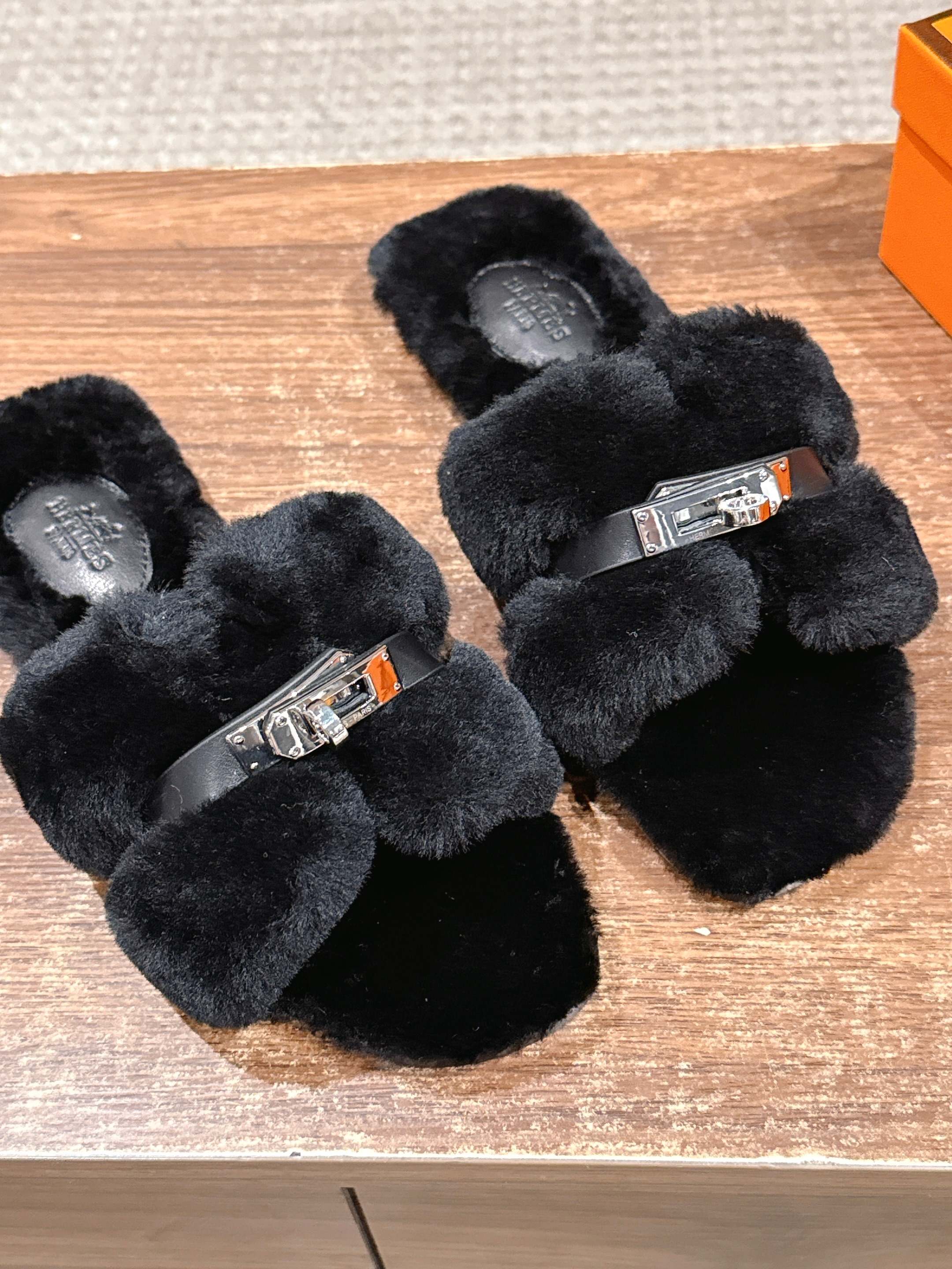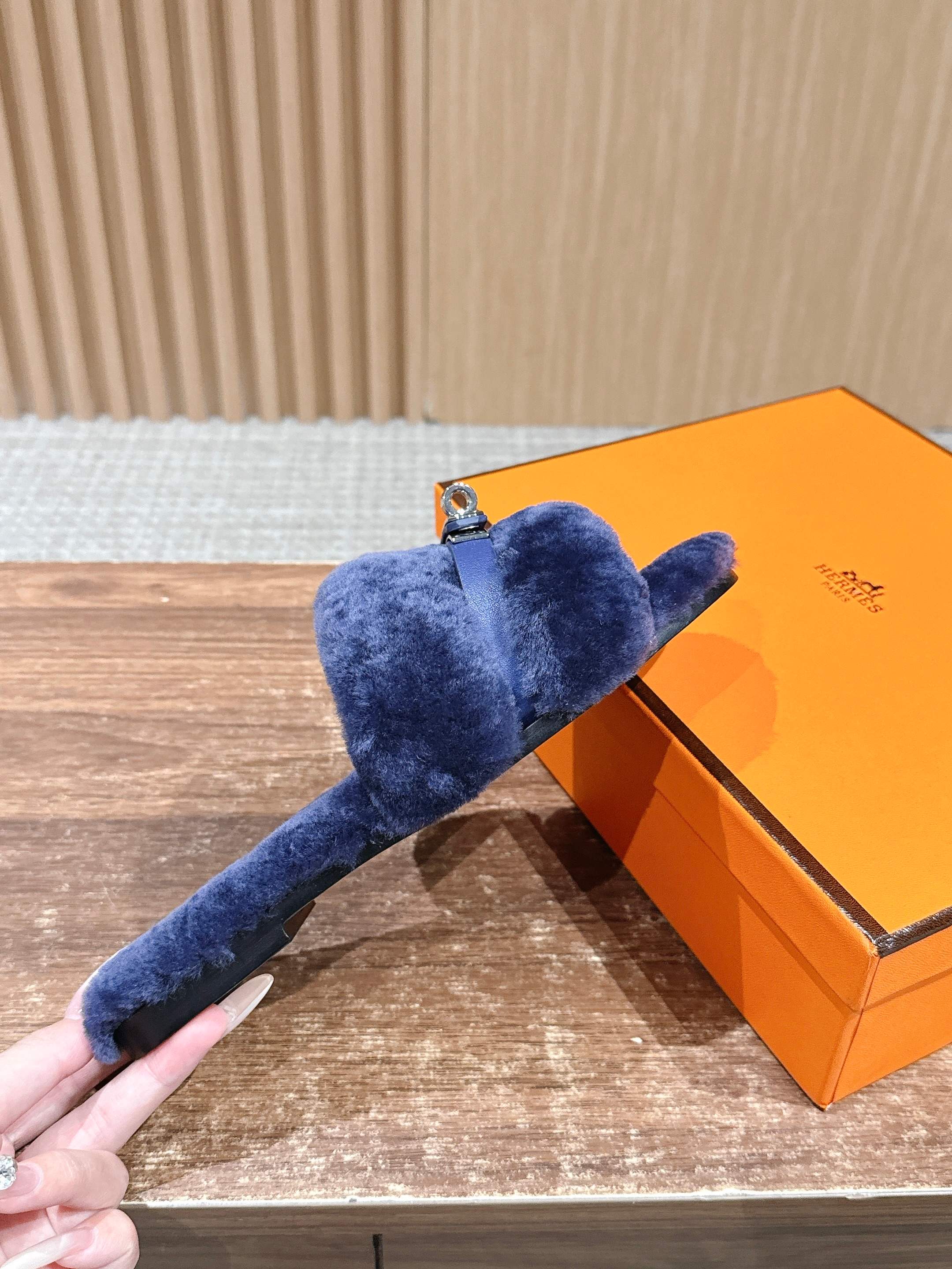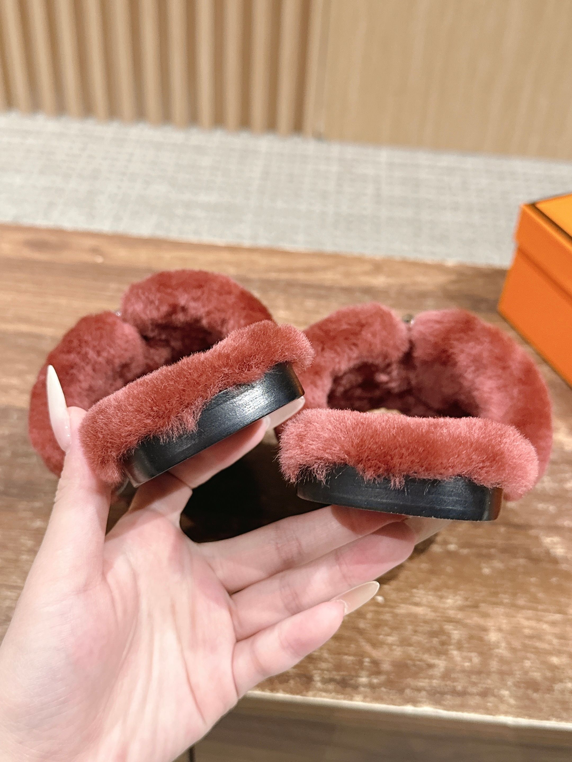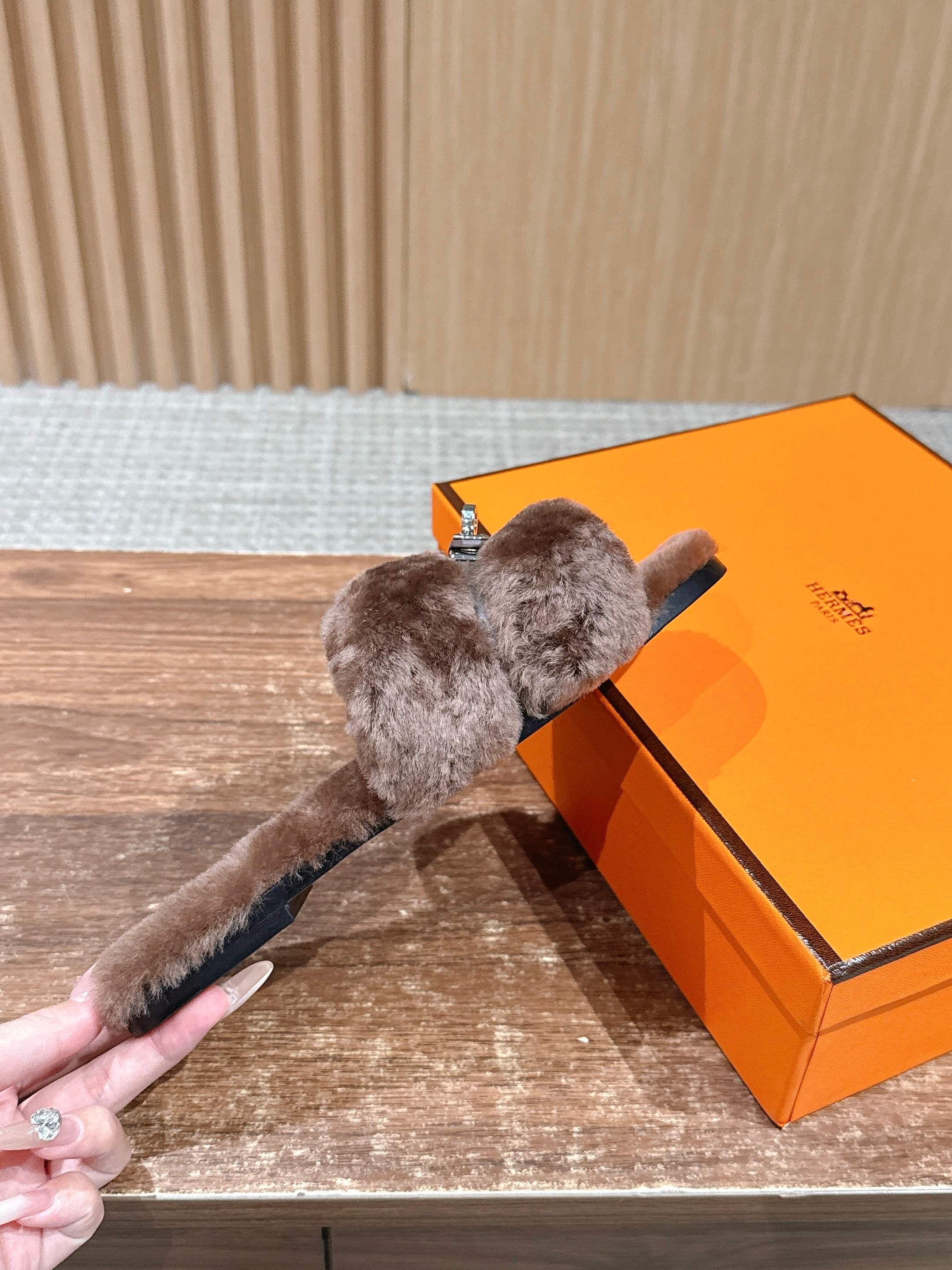 Hermer Giulia毛拖系列Kelly扣H毛拖鞋 万年经典款羊毛‘H’拖鞋 经典H拖搭配Kelly扣更为亮眼!一双平底拖鞋,属于休闲舒适的鞋款类型,适合日常居家或者在一些轻松的场合穿着。这种拖鞋款式简约却又不失时尚感,兼具实用性与时尚度。 整体采用了羊毛材质,看起来非常柔软蓬松,不仅在视觉上给人一种温暖舒适的感觉,实际穿着时也能提供极佳的亲肤体验,尤其适合在较凉爽的季节或者想要营造温暖氛围感的时候穿着。这种毛绒材质的选择也体现了品牌在材质运用上的用心,既要保证奢华感,又要兼顾穿着的舒适程度。 鞋面:羊毛 内里垫脚:羊毛 鞋底:意大利A级双层真皮大底 码数:35-39(40.41定做不退换)
