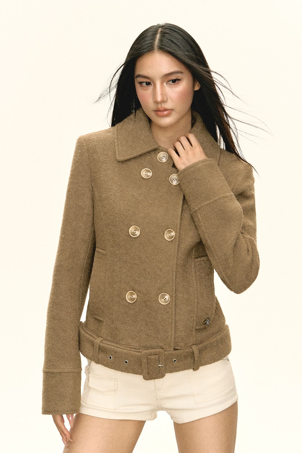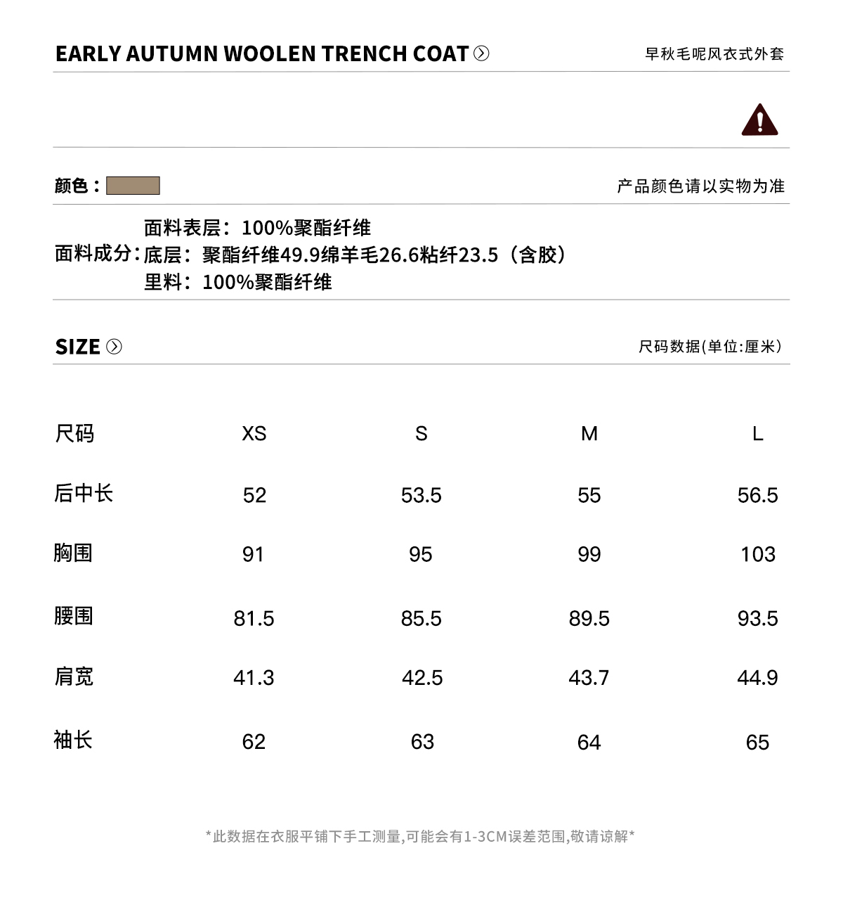 Ariseism 美式复古设计感早秋风衣式毛呢外套女秋季新款上衣