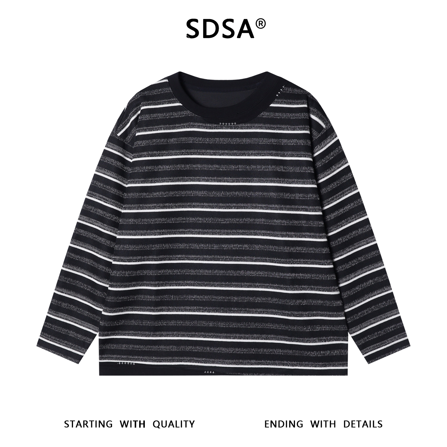 T1896秋季新款时尚个性撞色条纹套头圆领长袖T恤休闲百搭宽松上衣