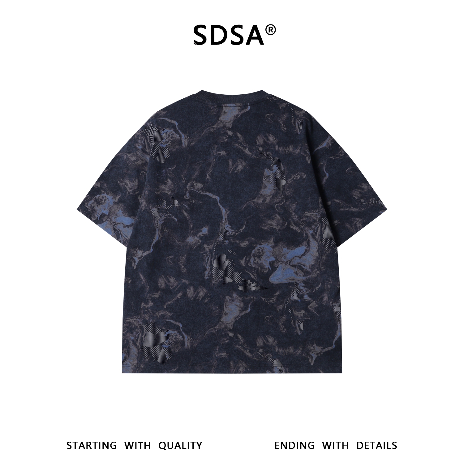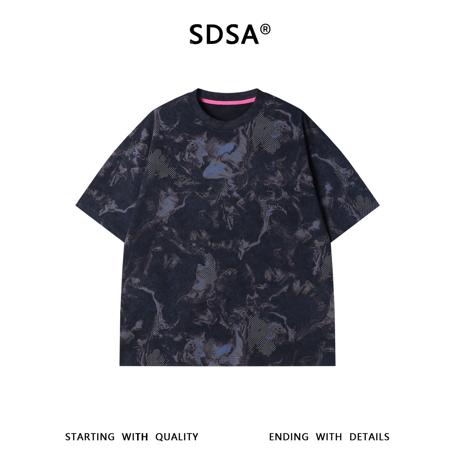 26T59SDSA男装2026新款美式复古满印t恤重磅棉宽松几何拼接设计感短袖