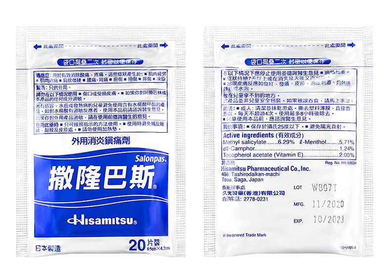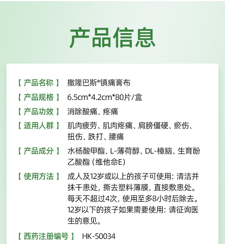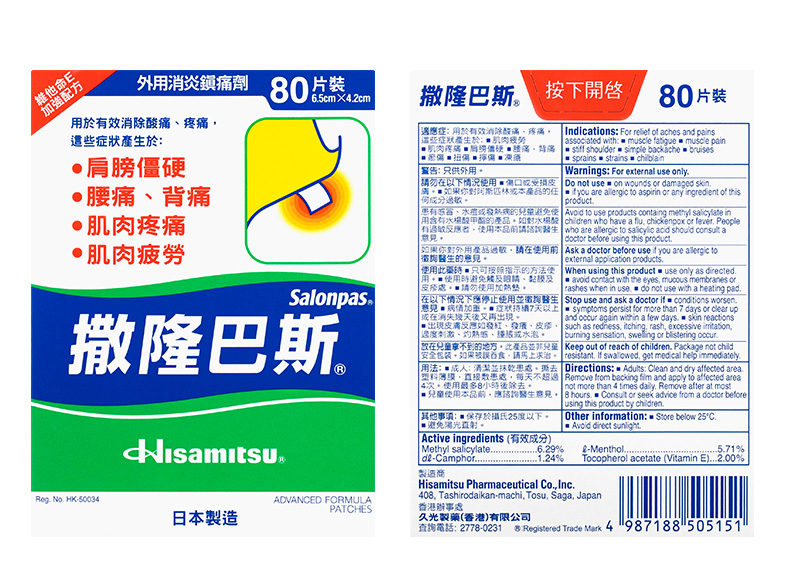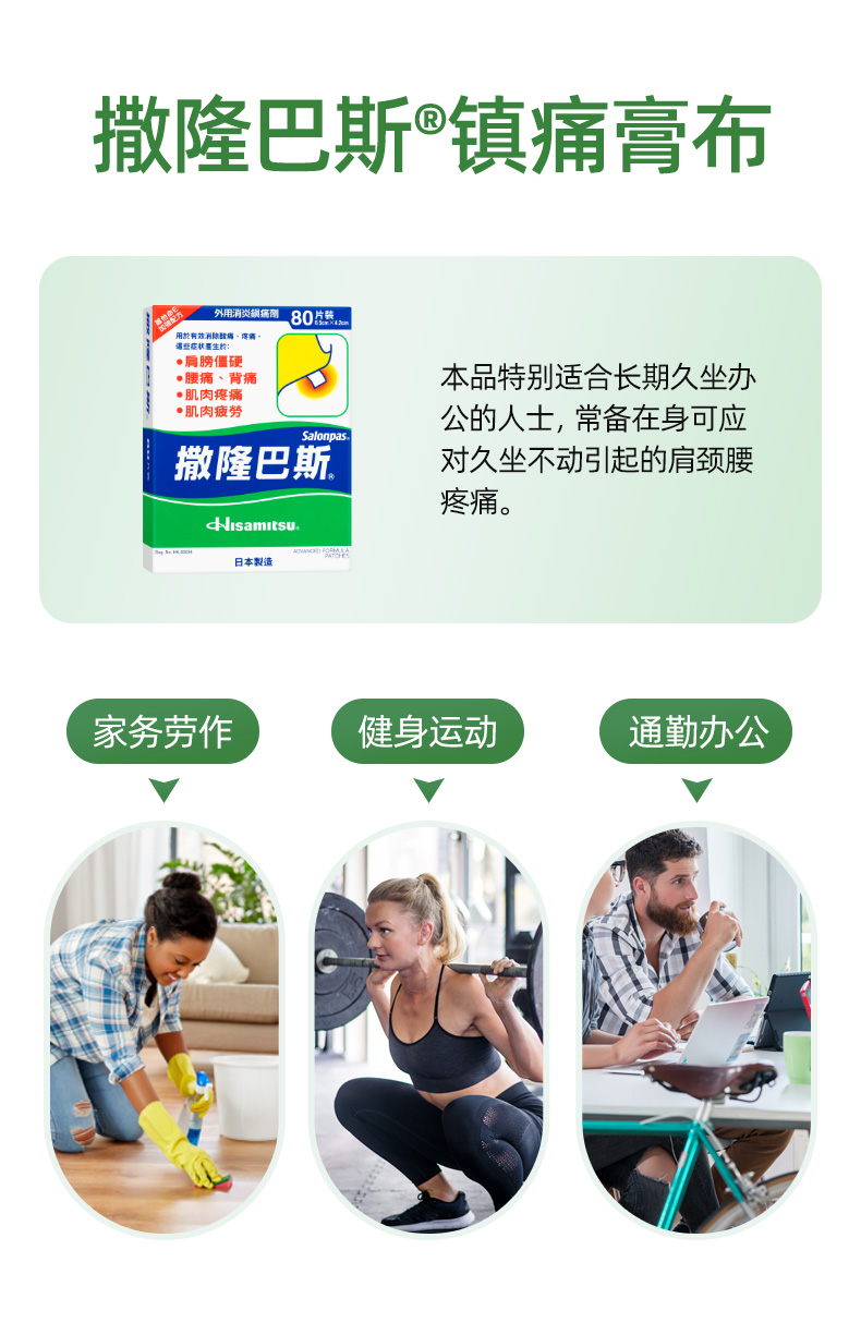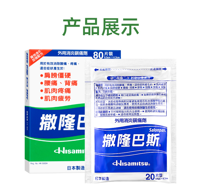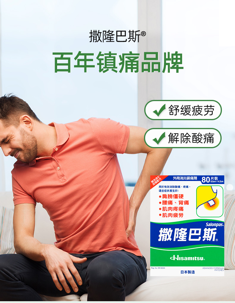 【香港直邮】肌肉疲劳腰酸背痛正品撒隆巴斯镇痛膏布(80片装)