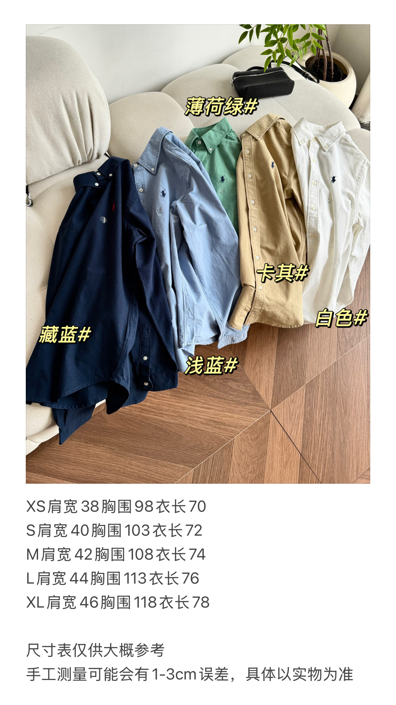 原厂牛津棉,肌理细腻,面料柔软,温柔有挺度!!密实的质地,上身后很自然的挺括有型,版型属于宽松款的,上身很有味道,朴实的质感,独一份的高及感,可甜可盐的衬衫,风格完全不受限,随便穿,都好看!