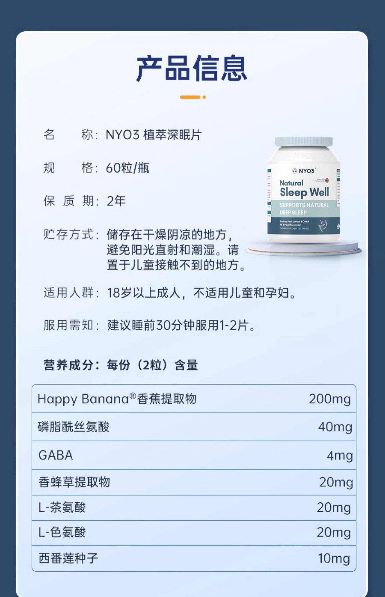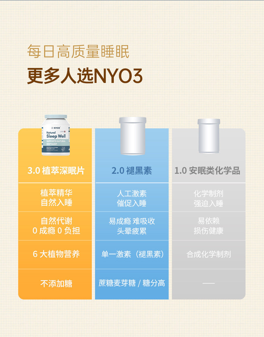 NYO3植萃深眠片非褪黑素睡眠晚安片改善成人闪睡片退黑色素无依赖