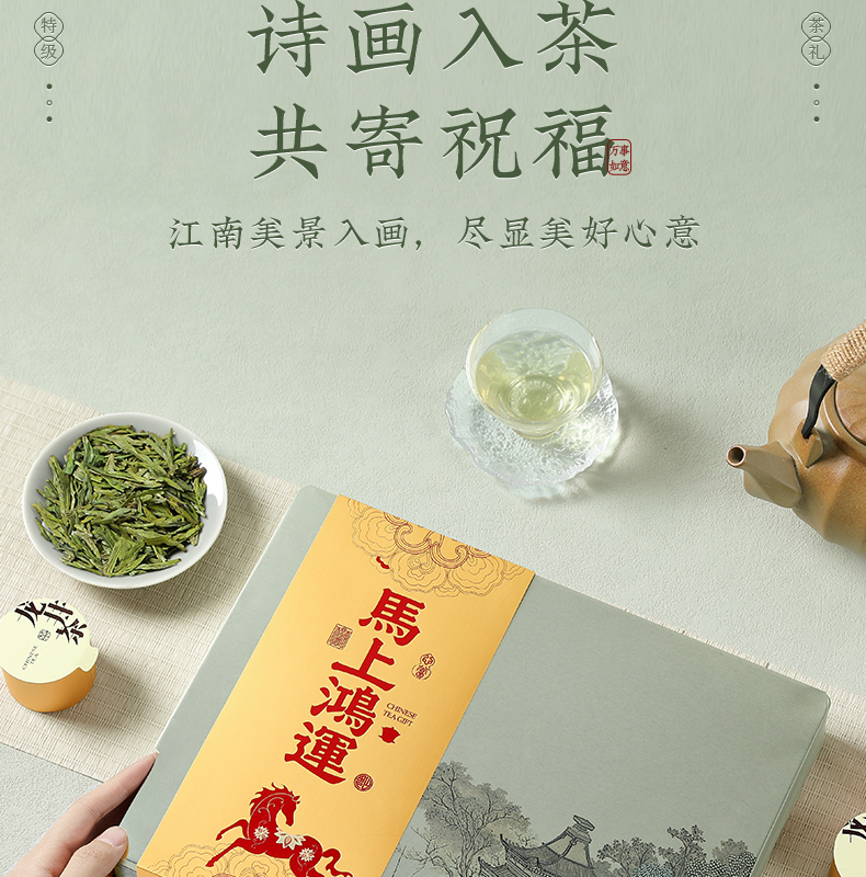 【龙隐江南 马上鸿运】去寻过年货明前龙井绿茶叶礼盒装小罐杭州西湖新年送长辈伴手礼物80g
