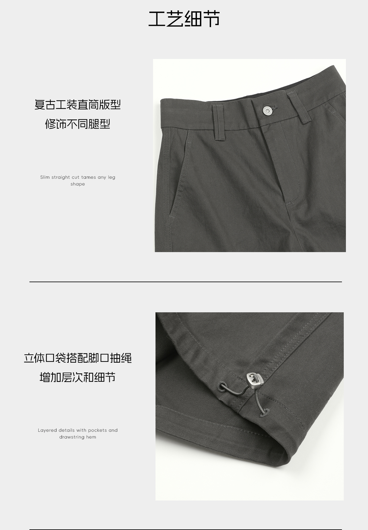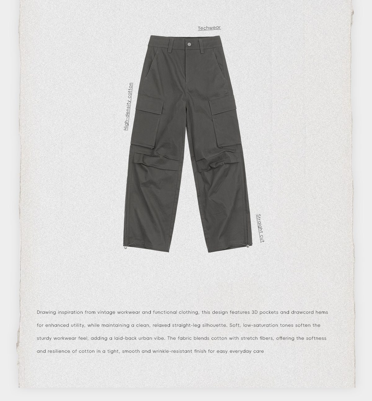 ROMI STUDIO“时髦百搭”棉质多口袋抽绳脚口直筒工装裤 RWCAX85171