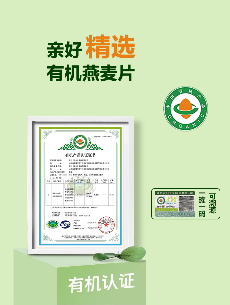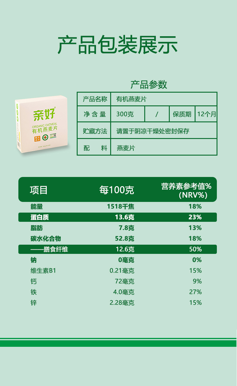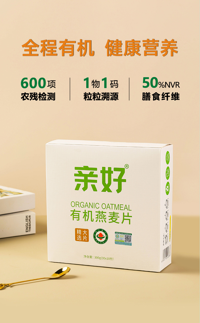 亲好精选有机燕麦片300g 精选大片独立小袋装干净便携