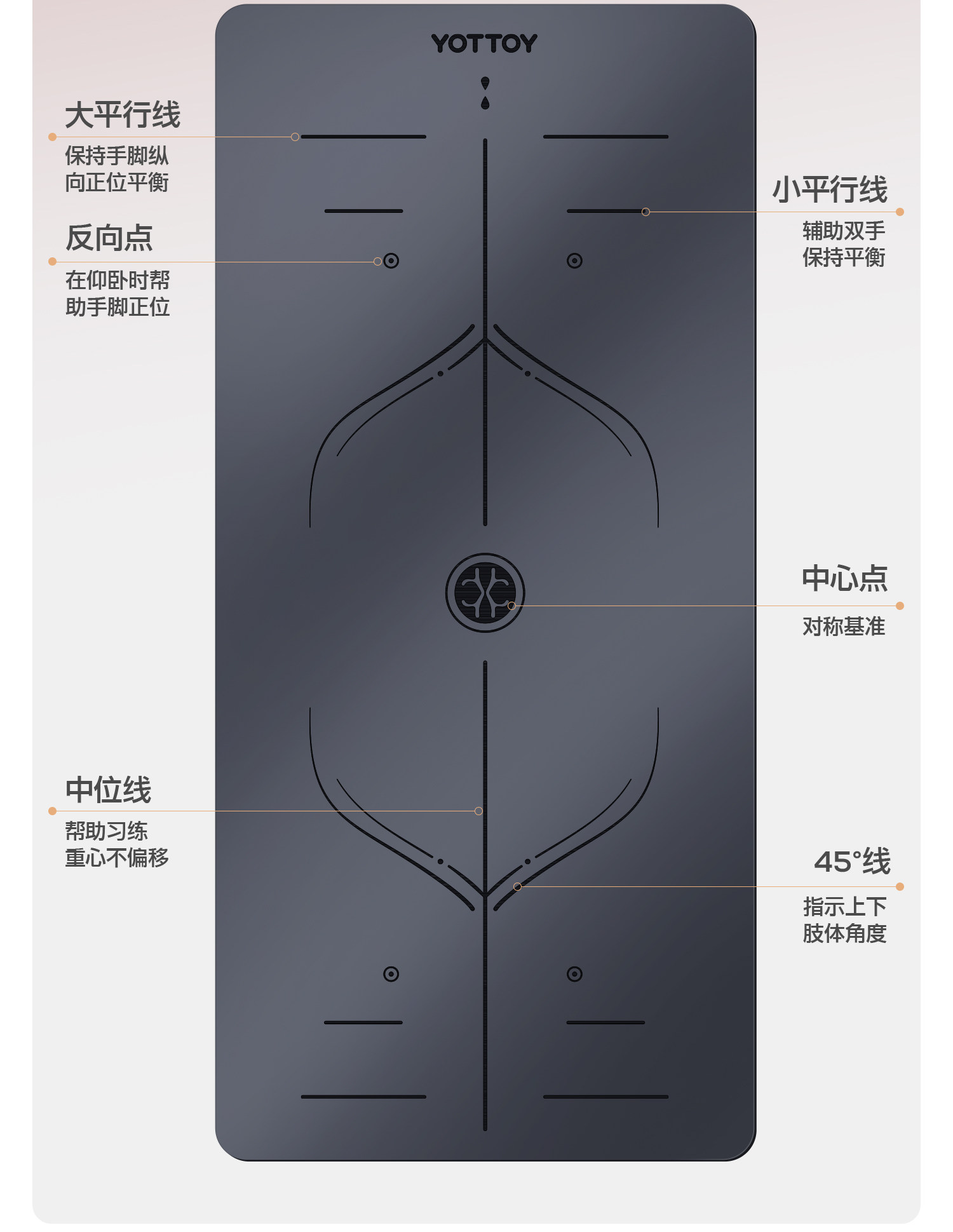 YOTTOY瑜伽垫中位线防滑天然橡胶新款专业健身家用pu女士减震隔音运动地