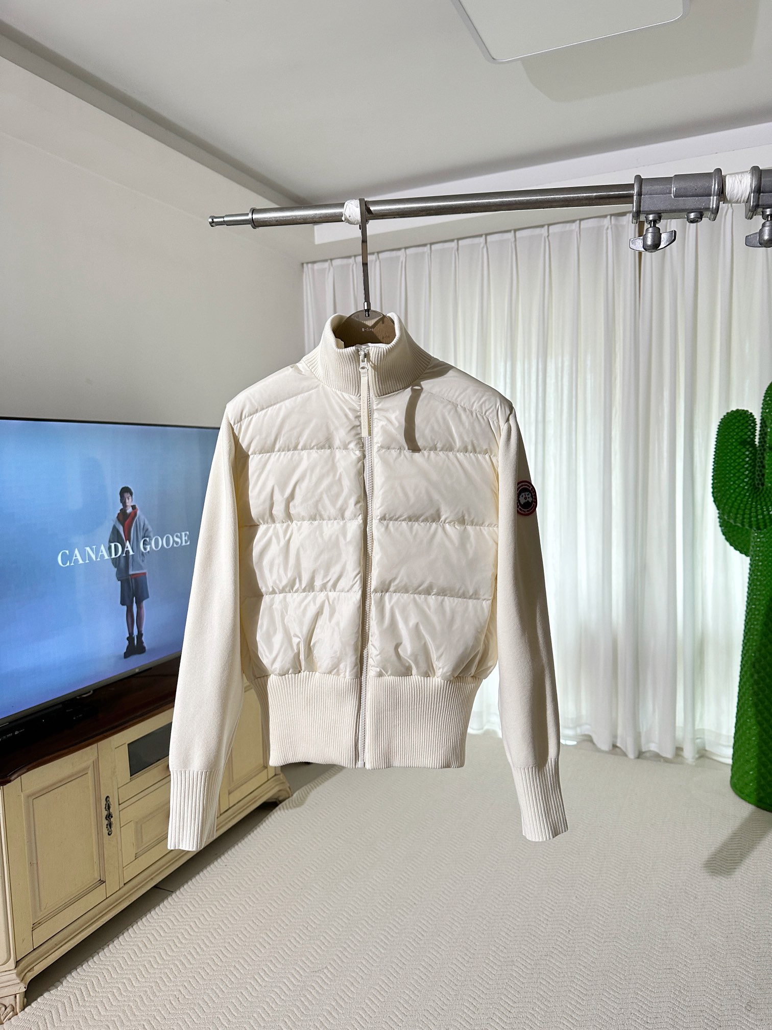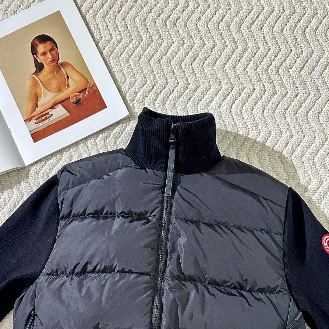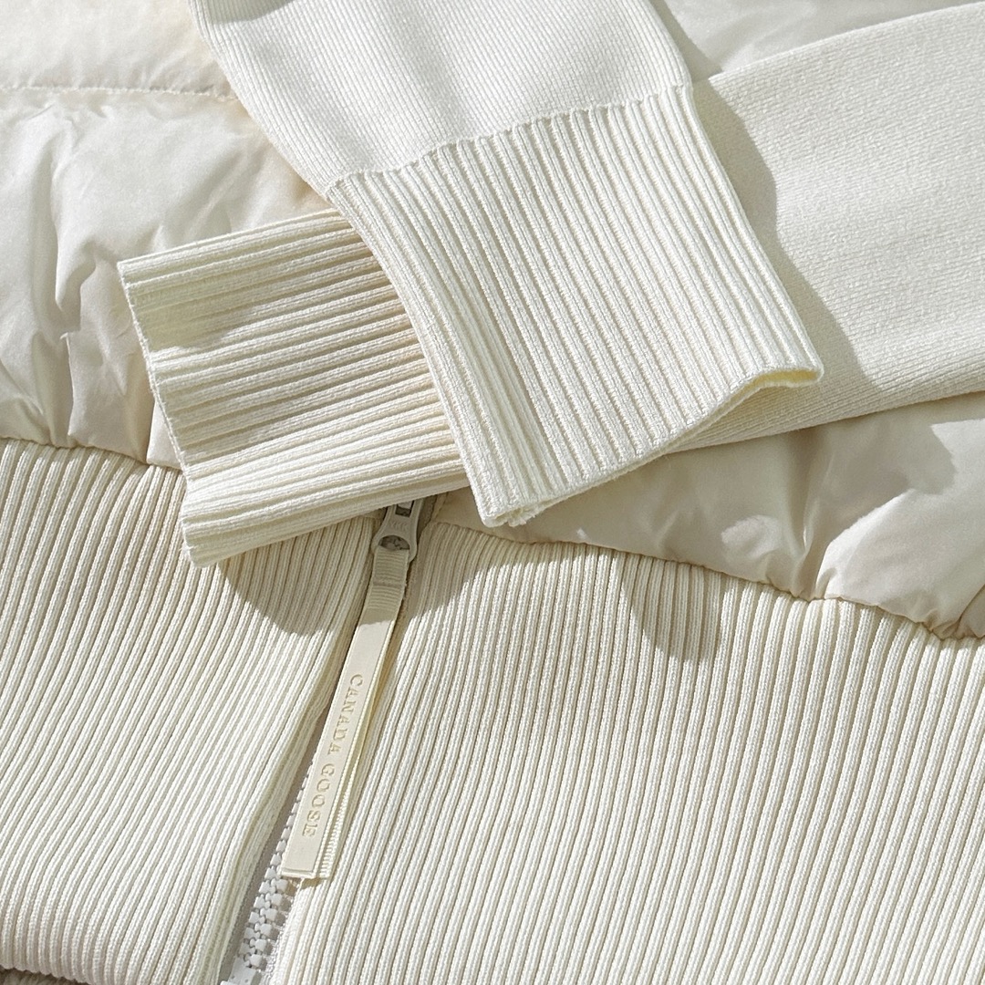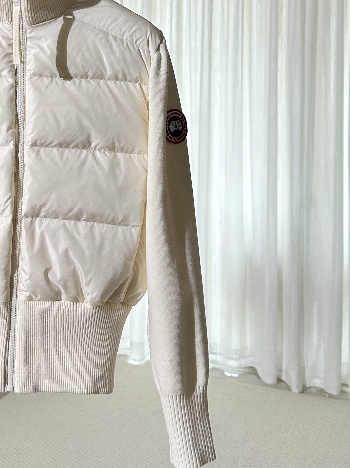 加拿大鹅/Canada goose 加拿大鹅HyBridge Wide Quit 6506W 女款立领针织袖羽绒服,码数S-M-L 女款 ✅独家购入原版开发,全网最顶级品质。25年最新款,Canada Goose大鹅女士针织,两个款都是独家款哦,顶级品质,定制羊绒针织,填充95白鸭绒,依旧是原厂档案袖标,细节做工完美追求99.99%还原,两个款都是今年的爆款,强烈推荐‼️ 这款 HyBridge®女士宽绗缝羽绒针织夹克选用美利奴羊毛,兼具出色柔软度和透气性。羽绒填充镶片采用优良尼龙材质,轻盈保 暖且带有微妙光泽。衣领及腰部采用双层罗纹设计。双重面料结合,袖子和下摆选用美利奴羊毛,兼具出色柔软度和透气性。羽绒填充镶片采用优良尼龙材质,轻盈保暖且带有微妙光泽。双向拉链,双向拉链,下摆针织羊毛罗纹,锁住热量。