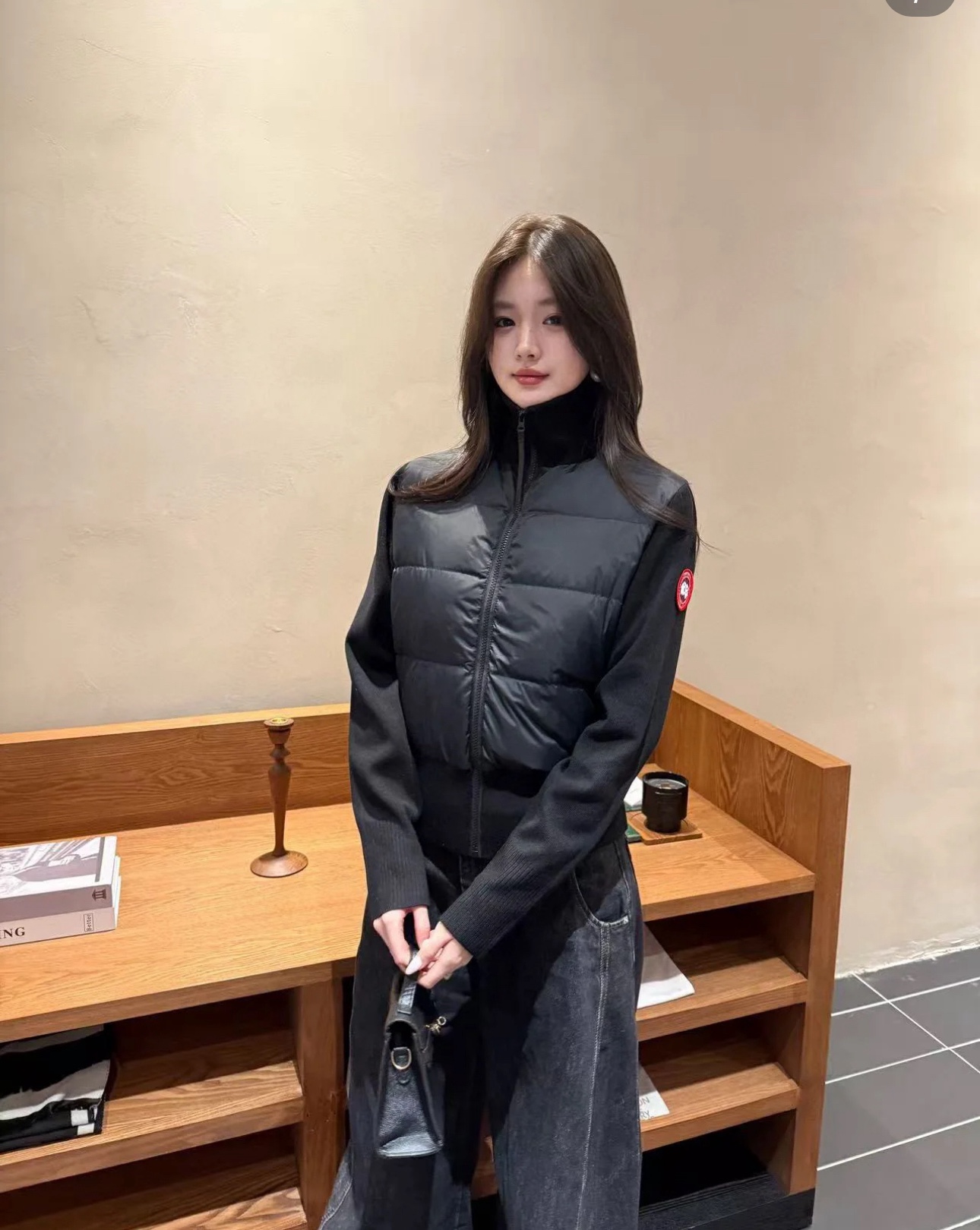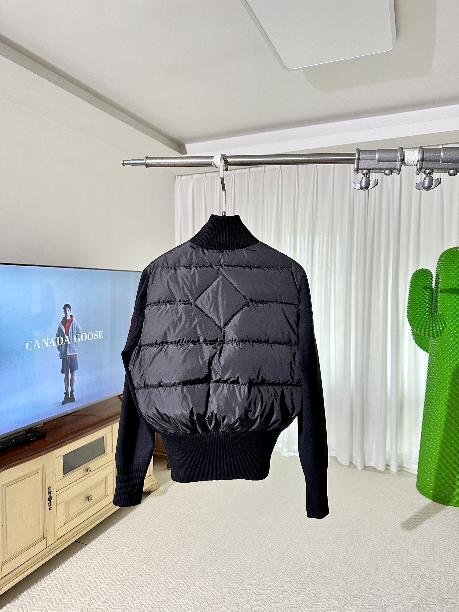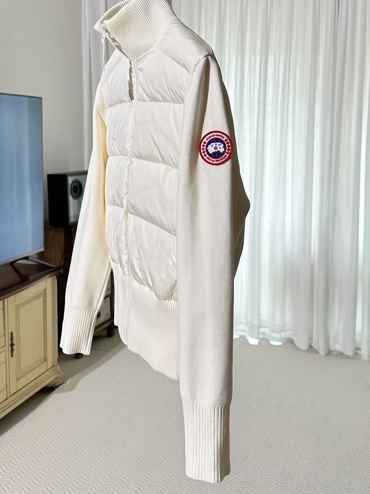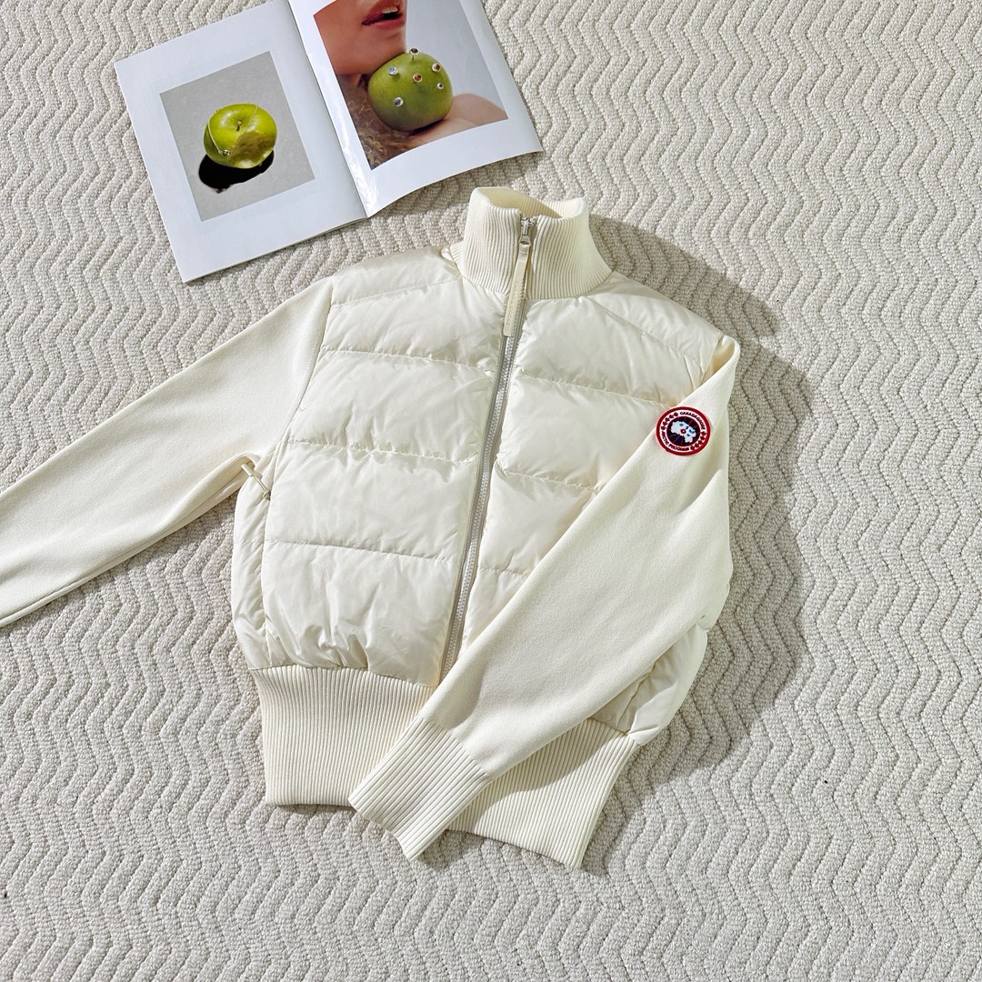 加拿大鹅/Canada goose 加拿大鹅HyBridge Wide Quit 6506W 女款立领针织袖羽绒服,码数S-M-L 女款 ✅独家购入原版开发,全网最顶级品质。25年最新款,Canada Goose大鹅女士针织,两个款都是独家款哦,顶级品质,定制羊绒针织,填充95白鸭绒,依旧是原厂档案袖标,细节做工完美追求99.99%还原,两个款都是今年的爆款,强烈推荐‼️ 这款 HyBridge®女士宽绗缝羽绒针织夹克选用美利奴羊毛,兼具出色柔软度和透气性。羽绒填充镶片采用优良尼龙材质,轻盈保 暖且带有微妙光泽。衣领及腰部采用双层罗纹设计。双重面料结合,袖子和下摆选用美利奴羊毛,兼具出色柔软度和透气性。羽绒填充镶片采用优良尼龙材质,轻盈保暖且带有微妙光泽。双向拉链,双向拉链,下摆针织羊毛罗纹,锁住热量。