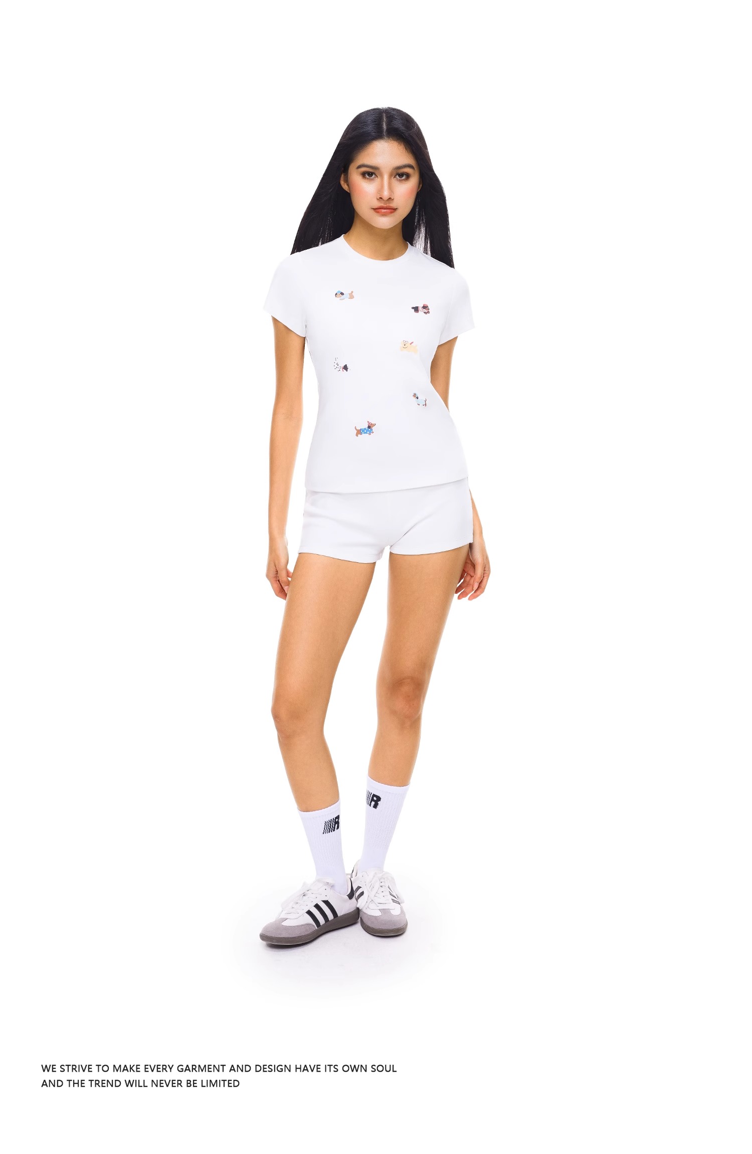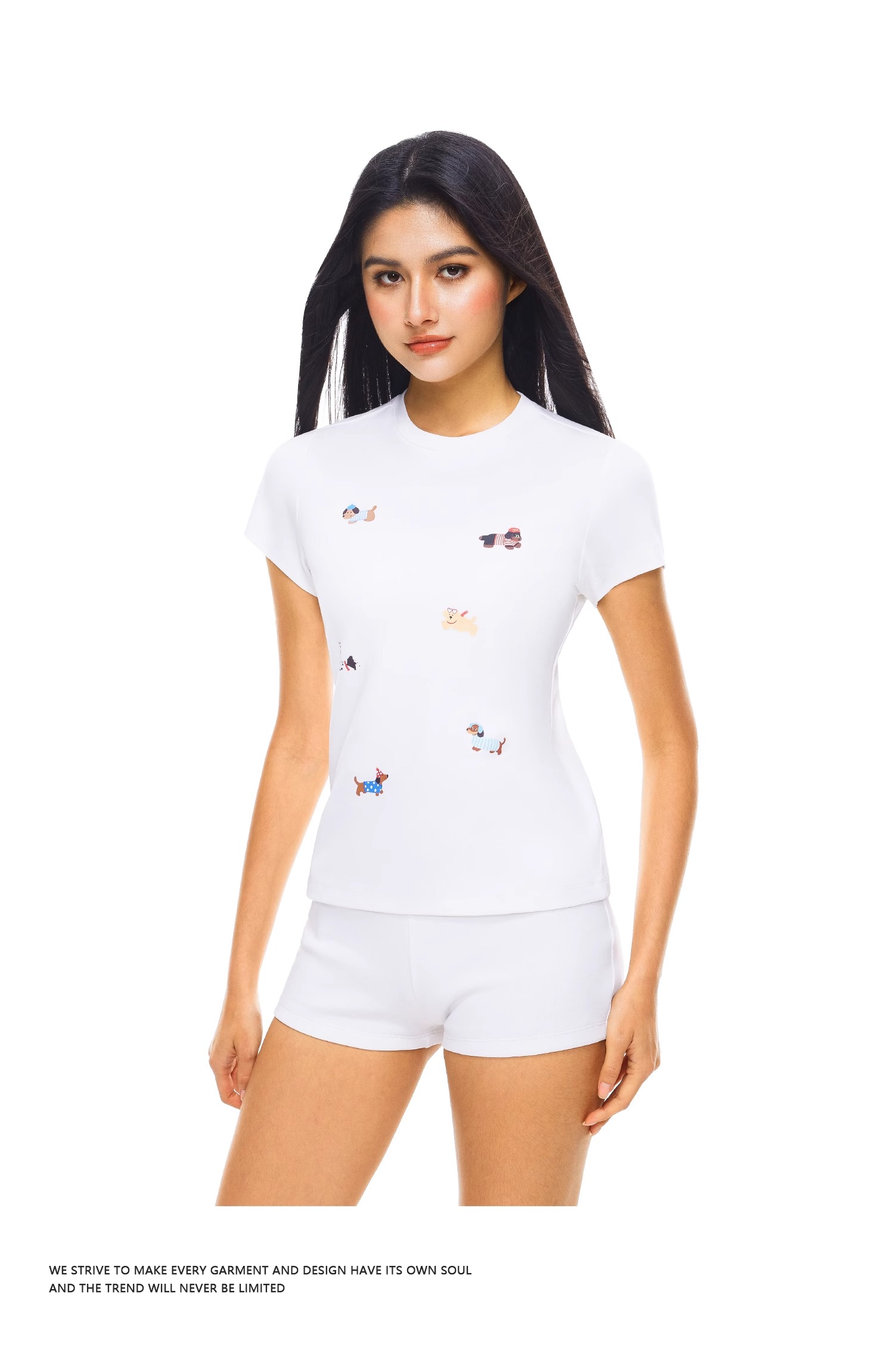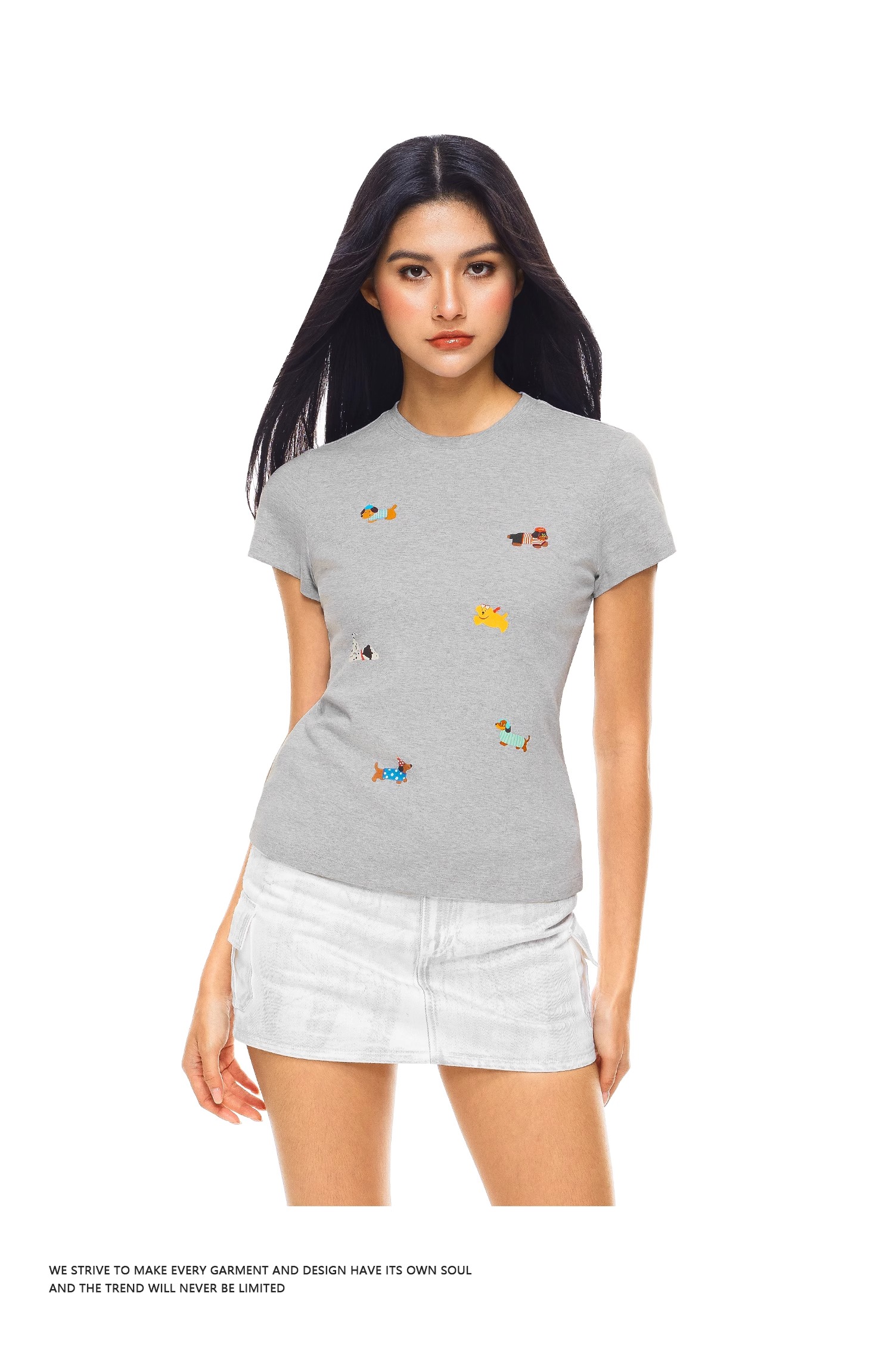 FDR官方店 创意小狗印花修身T恤女夏季美式辣妹短袖体恤上衣