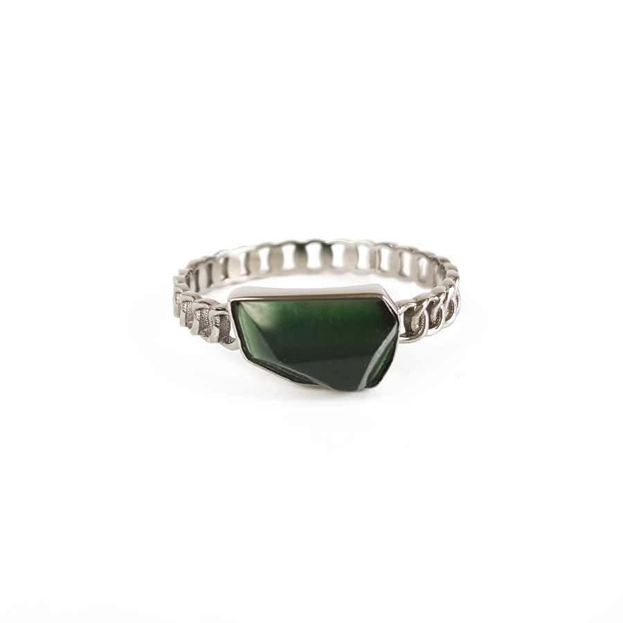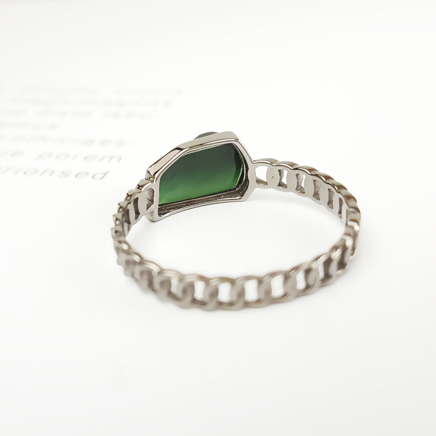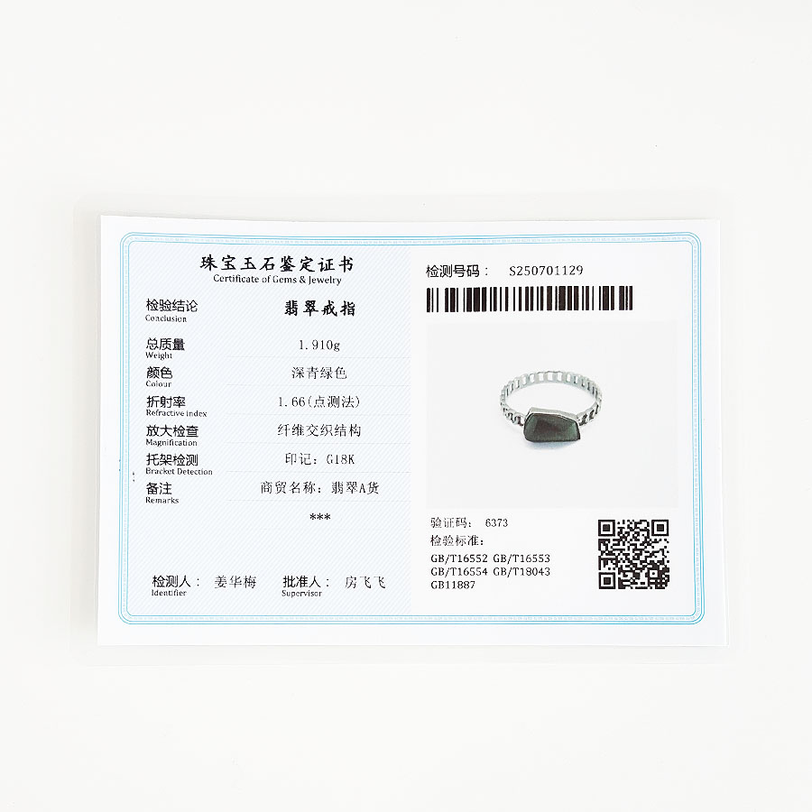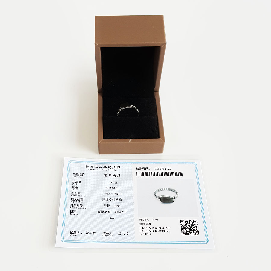 名称 | AU750白金镶天然细腻冰种随形墨翠戒指 |