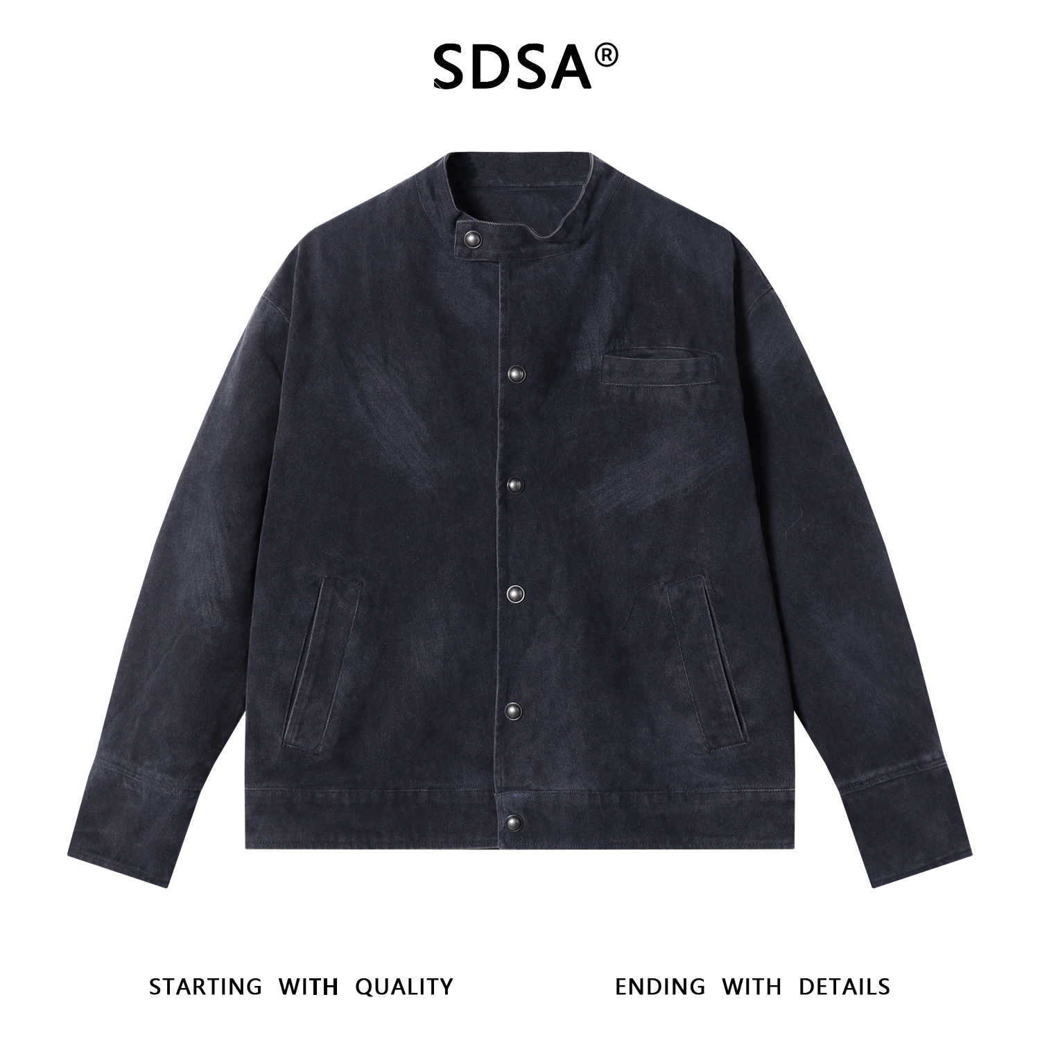 SDSA男士秋冬新款痞帅男装韩系简约磨白立领夹克外套百搭设计师潮