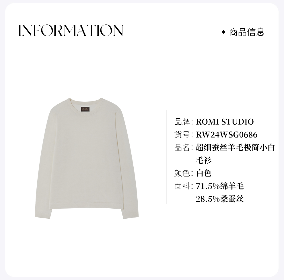 ROMI STUDIO“冬日暖白”绵羊毛桑蚕丝混纺肤感套头毛衫RW24WSG0686