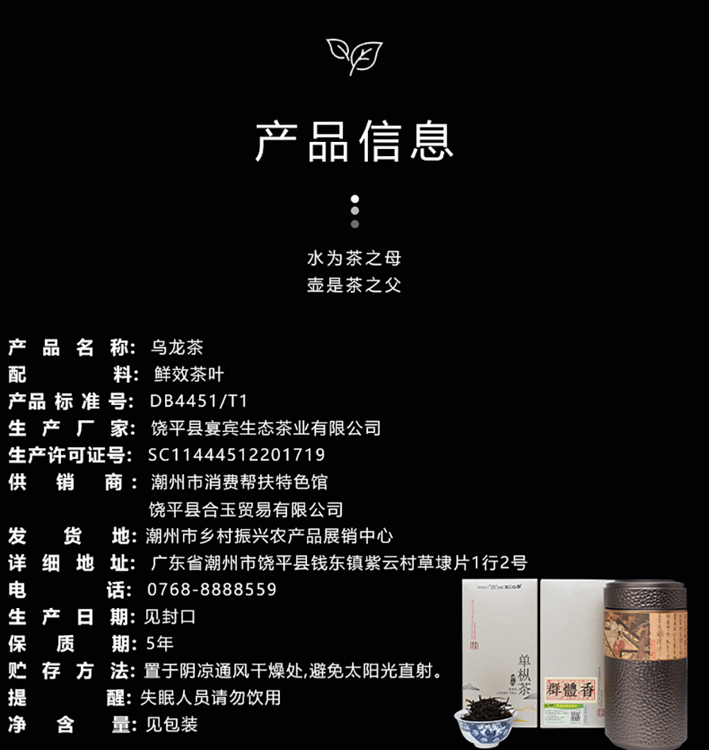 广东潮州紫云仓群体香单丛茶 125g/罐