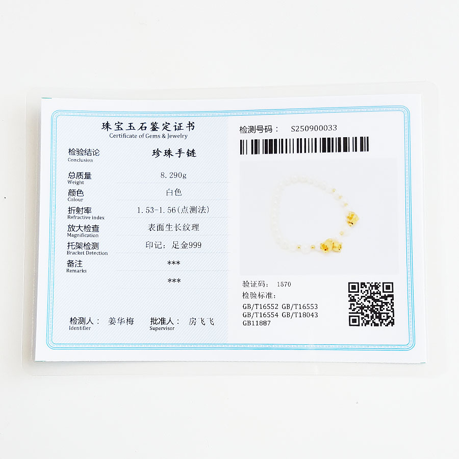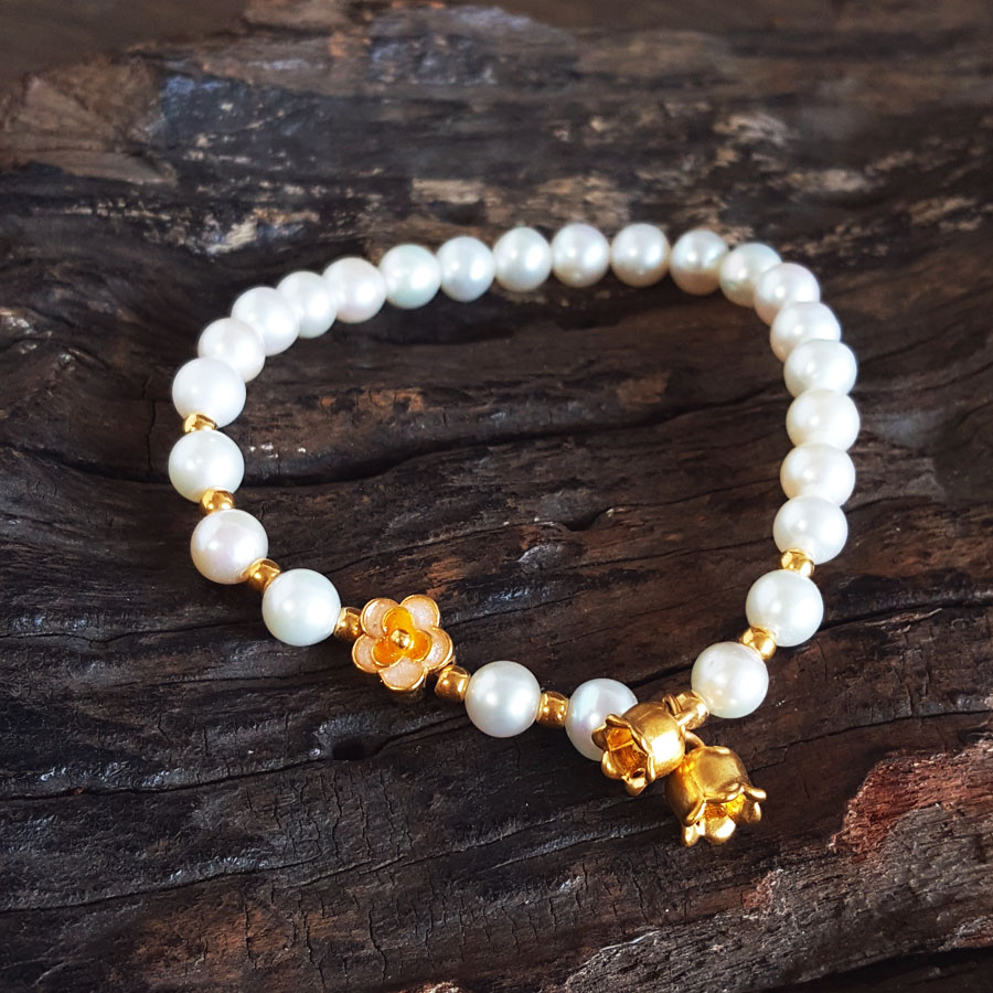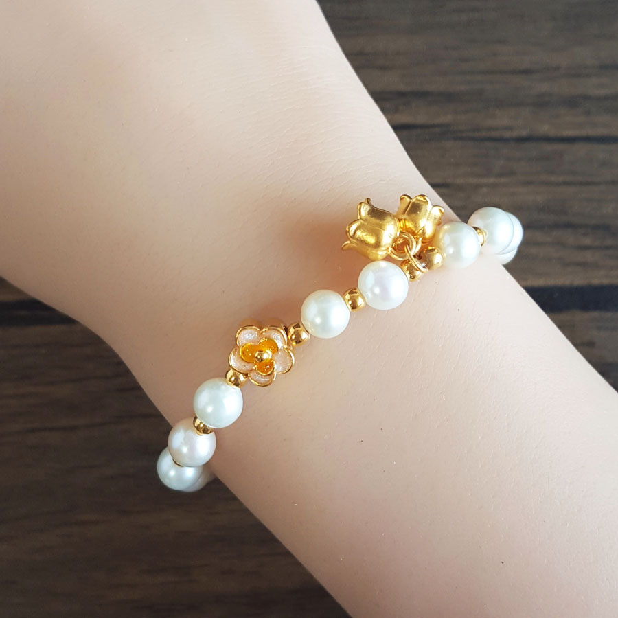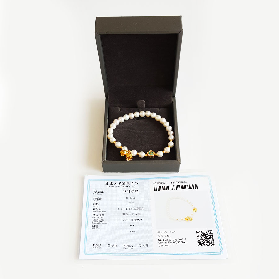 名称 | AU999黄金铃兰花造型白色约6.3MM珍珠手串 |