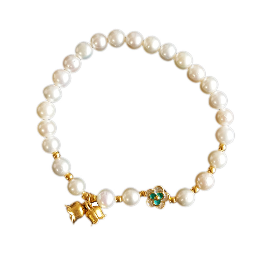 【天然正品】AU999黄金铃兰花造型白色约6.3MM珍珠手串6.3MM女士300825NJM39现售价:1380特价