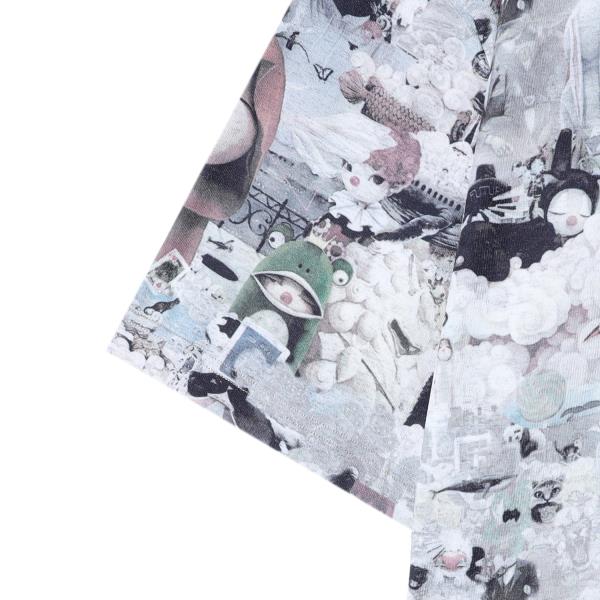 T4019夏季高级感新款男士美式撞色抽象图案短袖T恤宽松时尚圆领上衣