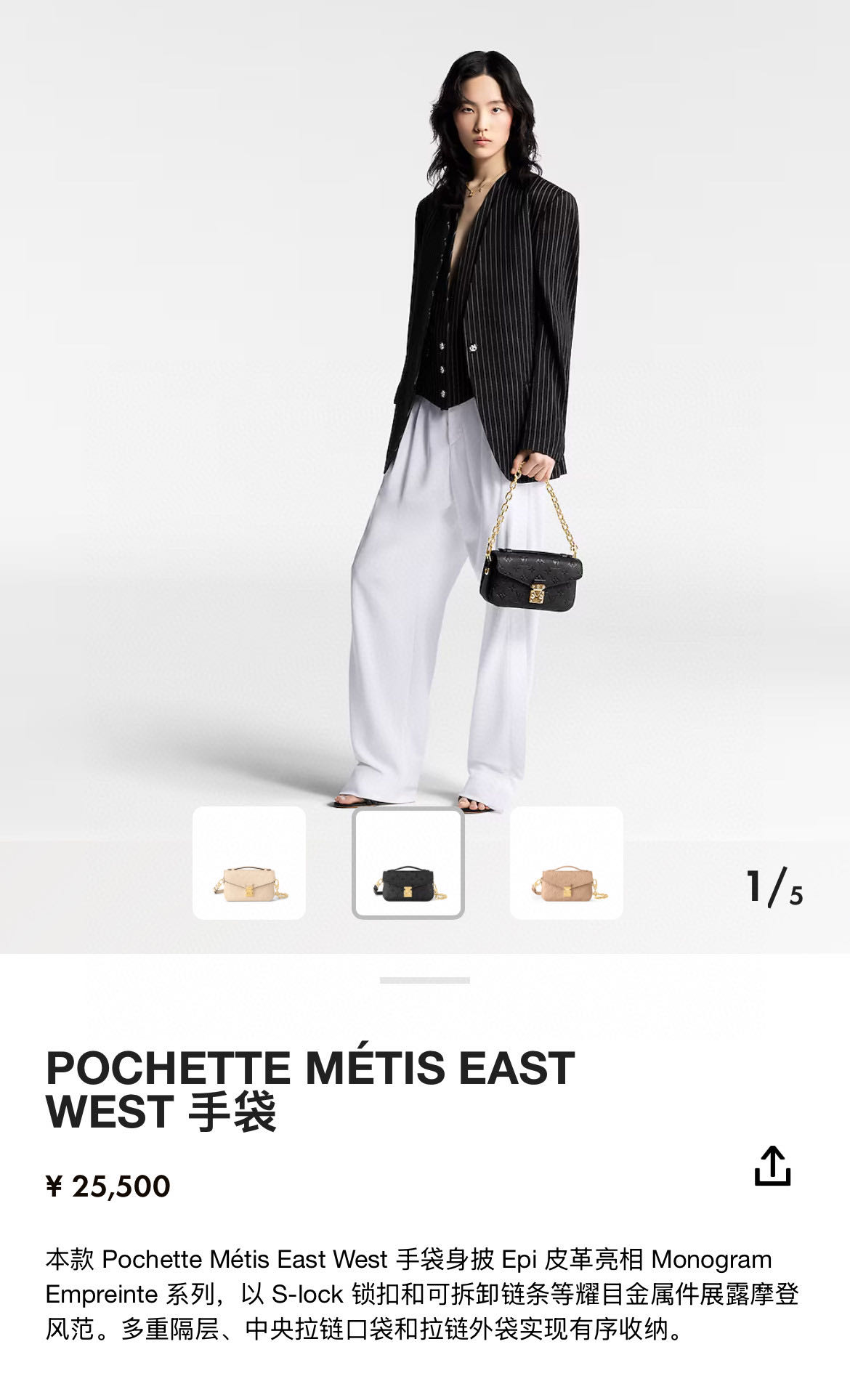 小巧包身选用柔软的Monogram Empreinte皮革面料,配有别致的 S-lock 锁扣和时髦顶部手柄,抛光表面亮泽耀眼。日常百搭休闲精致出行样样行~