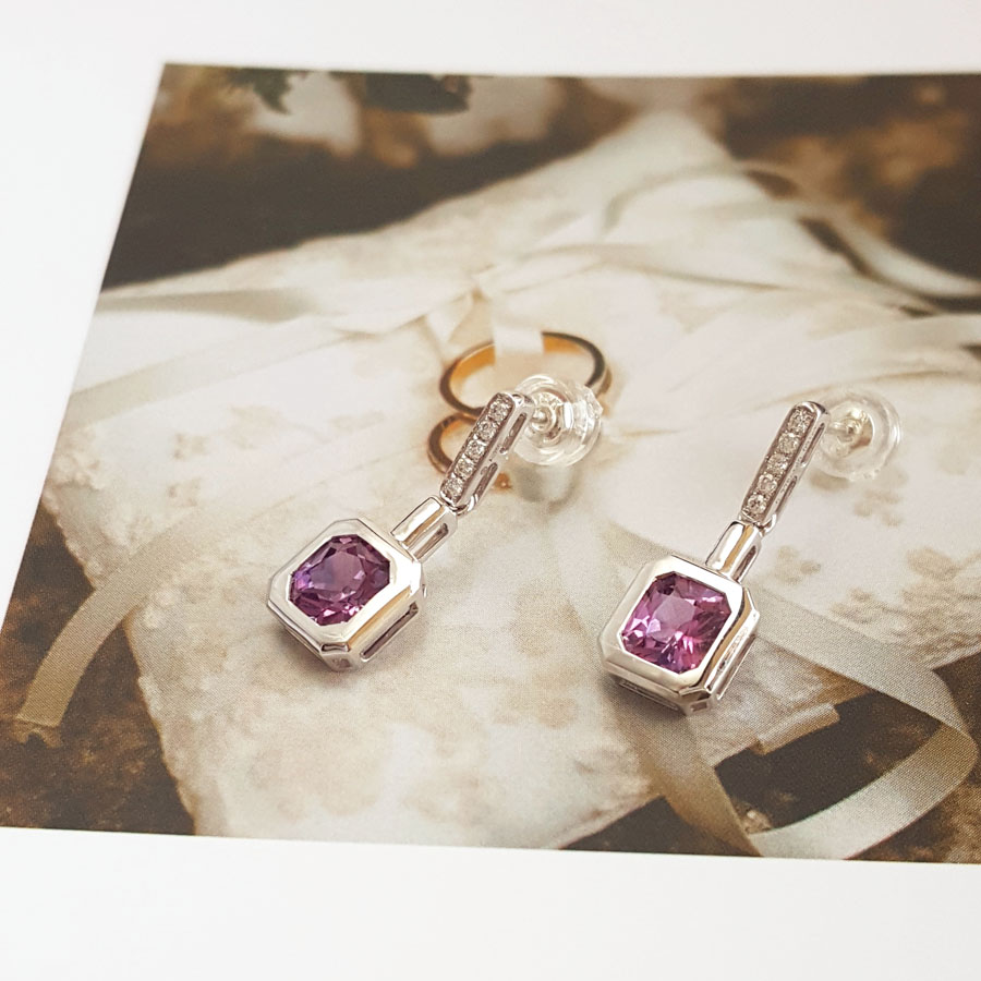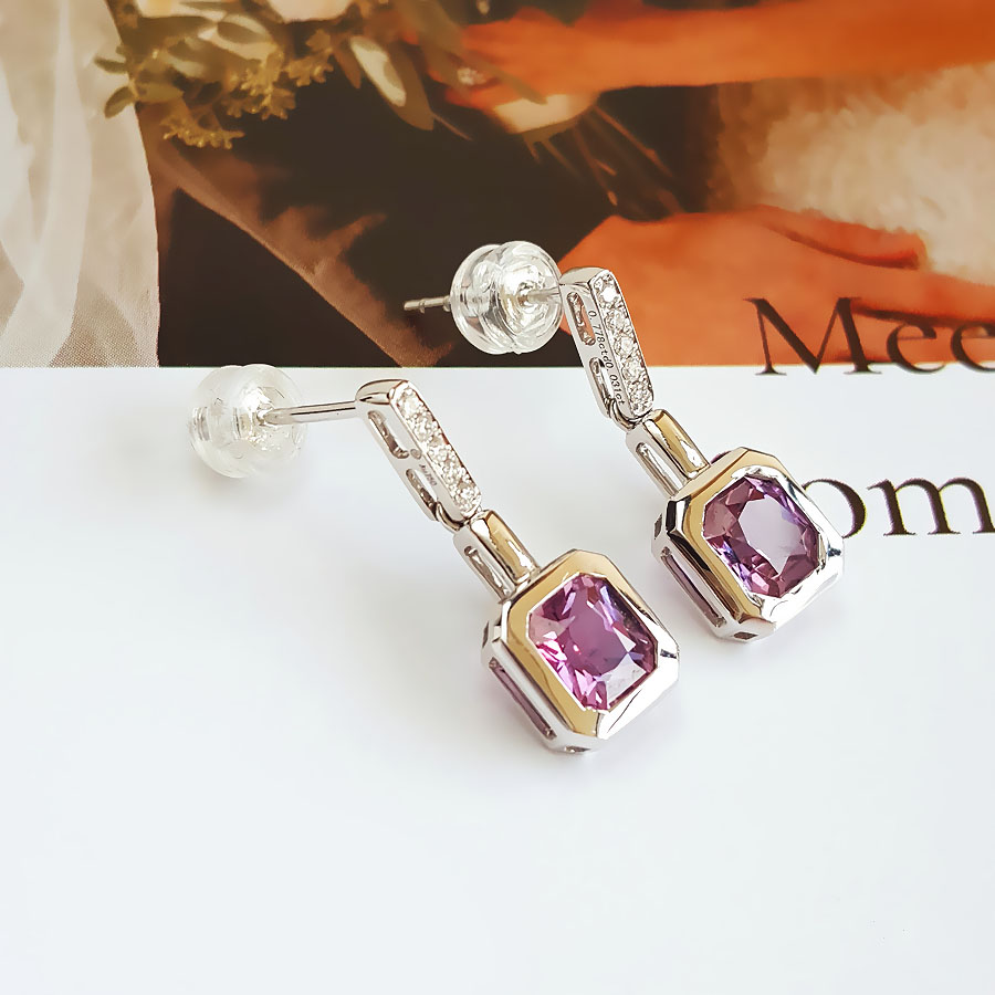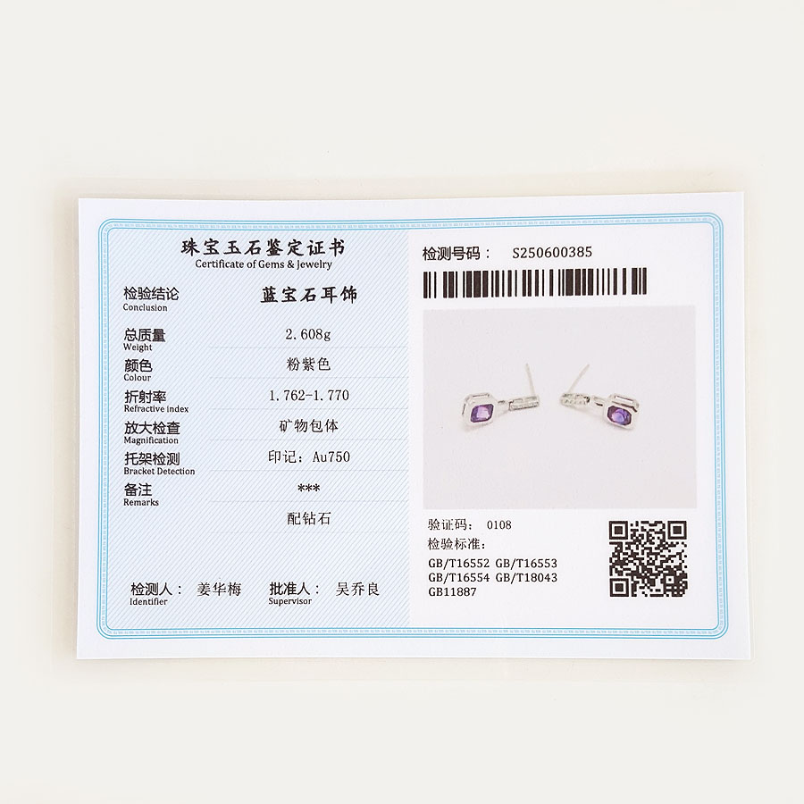 名称 | AU750白金镶钻镶天然0.778克拉天然紫色蓝宝石(浪漫、忠诚)耳环 |