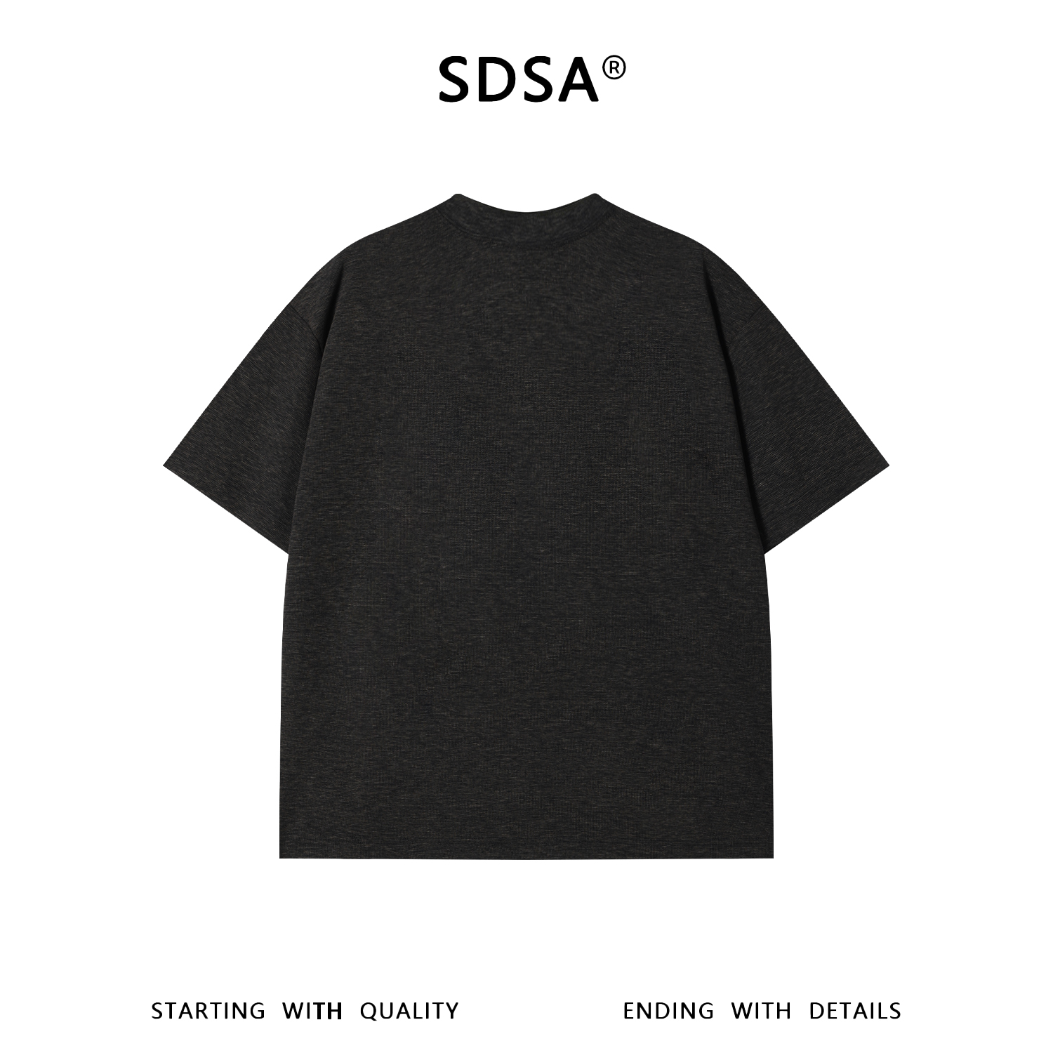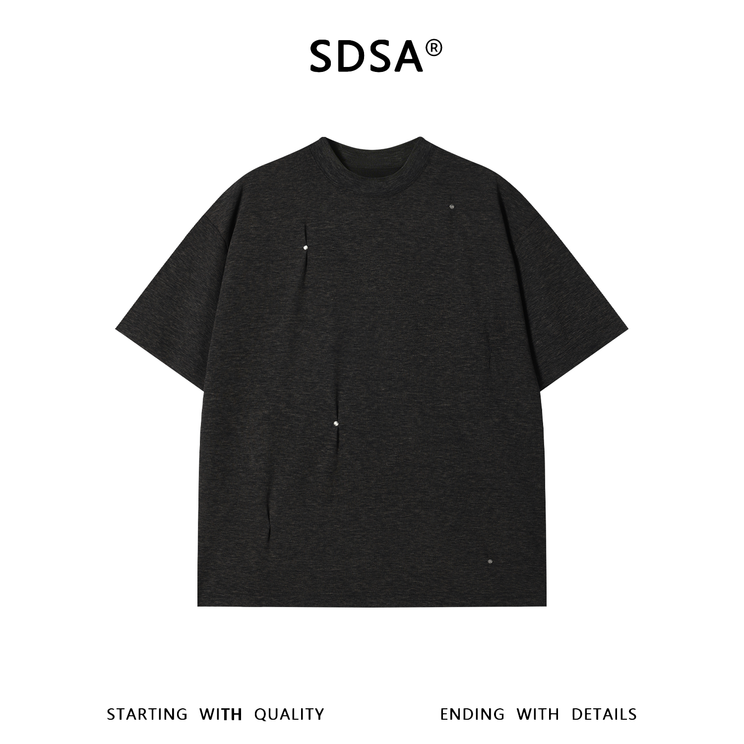 SDSA男装2026新款高贵轻奢美式简约纯色褶皱铆钉设计圆领短袖T恤