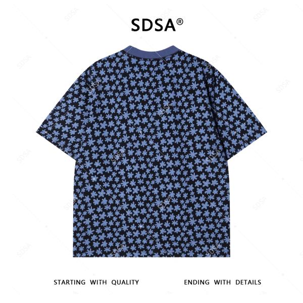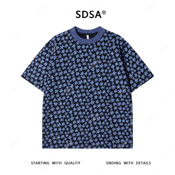 T4025夏季高级感新款男士满印花卉图案短袖T恤休闲风设计百搭圆领上衣