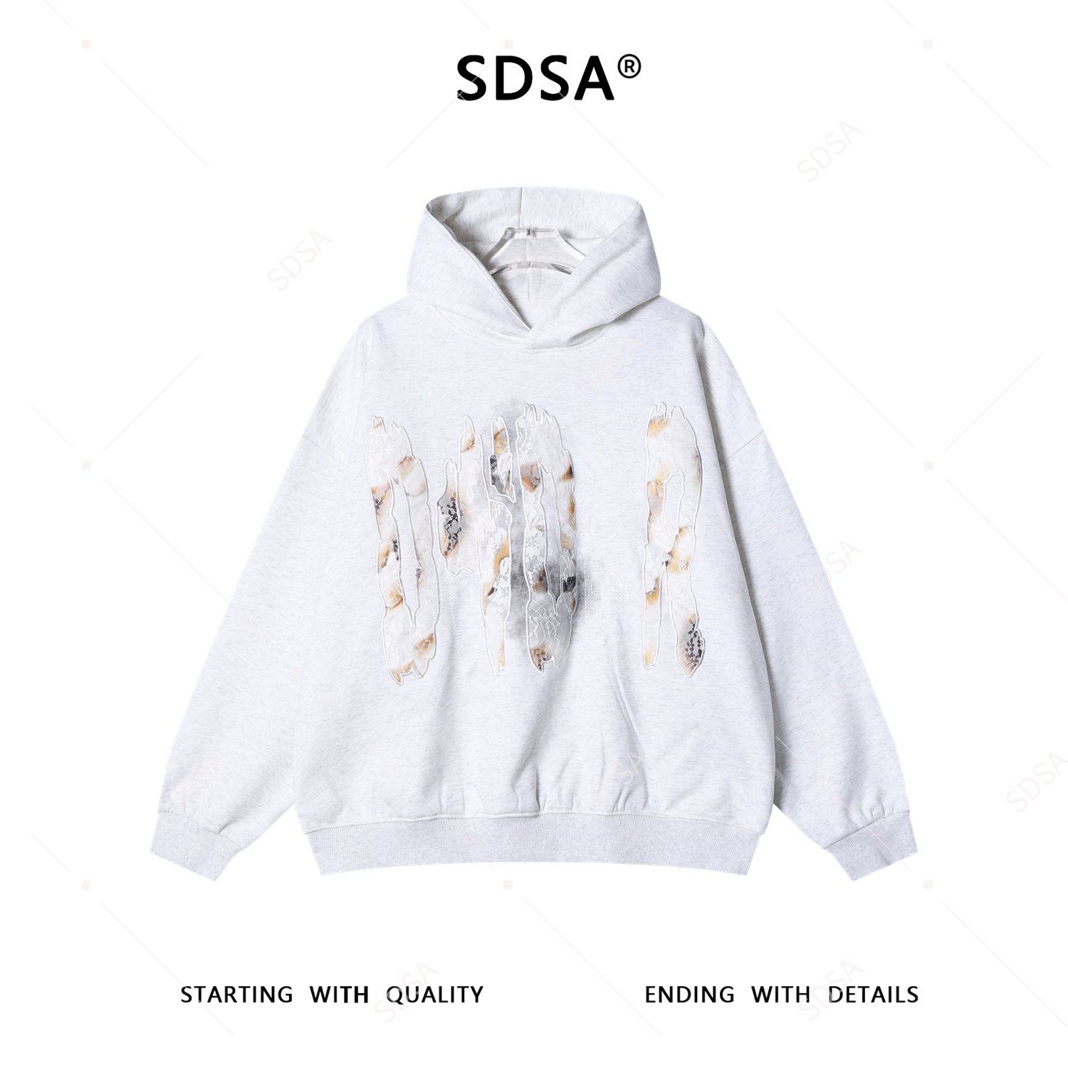 D023SDSA男士秋冬新款痞帅男装重工蕾丝刺绣字母连帽卫衣潮牌百搭上衣