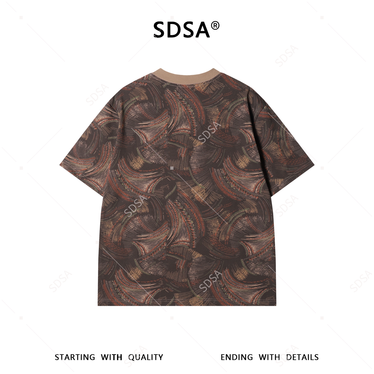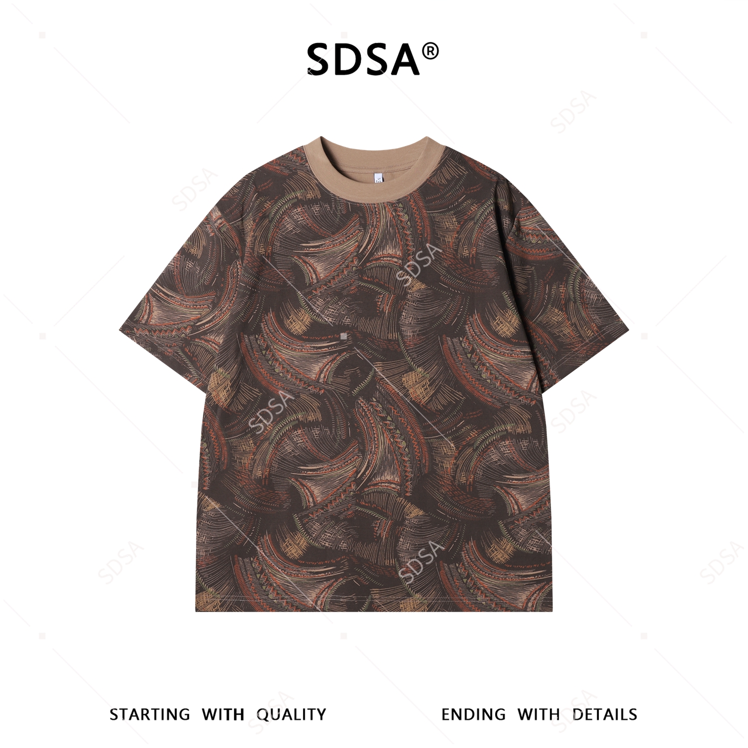 26T192SDSA男装2026新款高贵美式复古象线条满印短袖T恤百搭圆领上衣