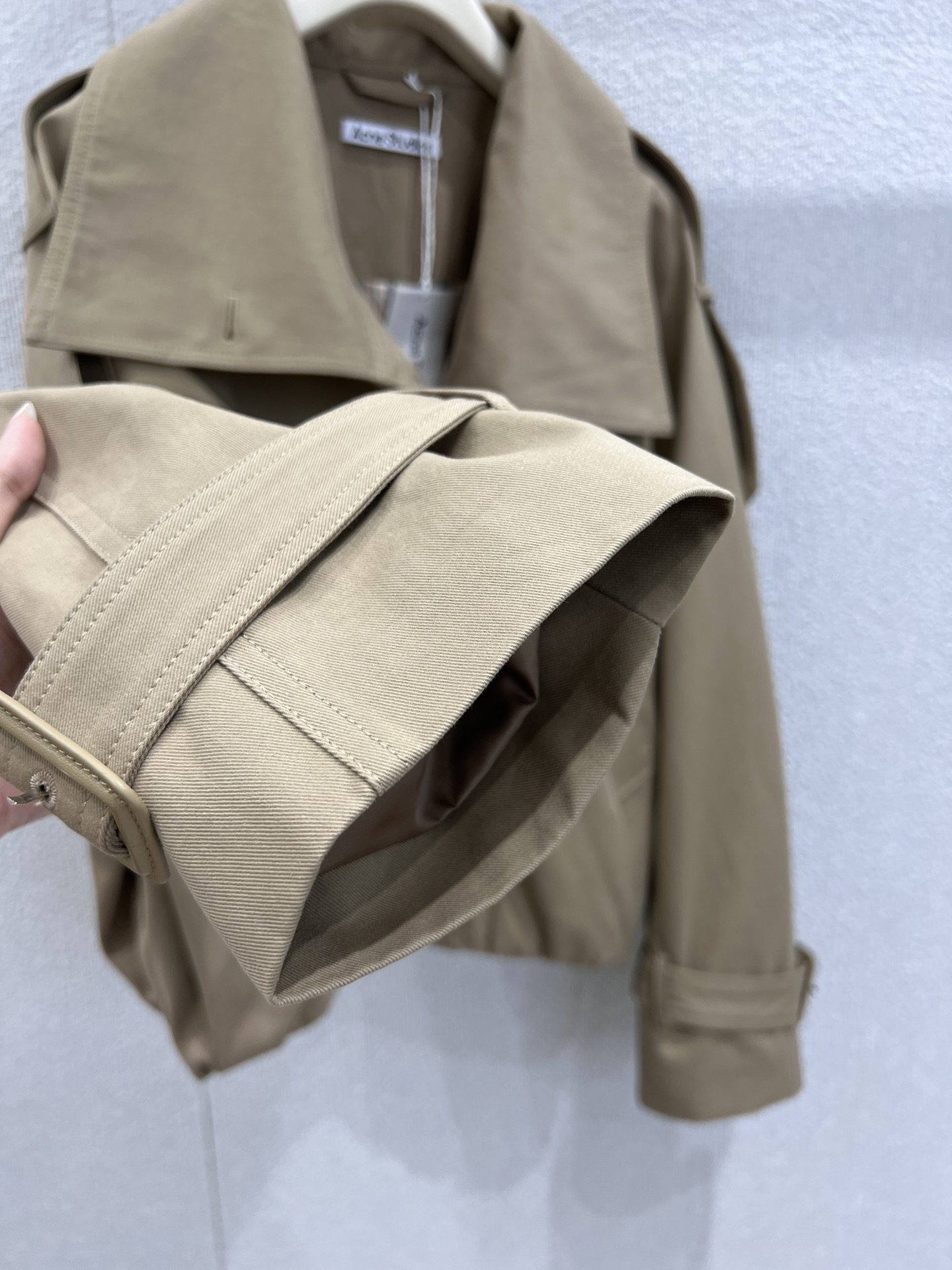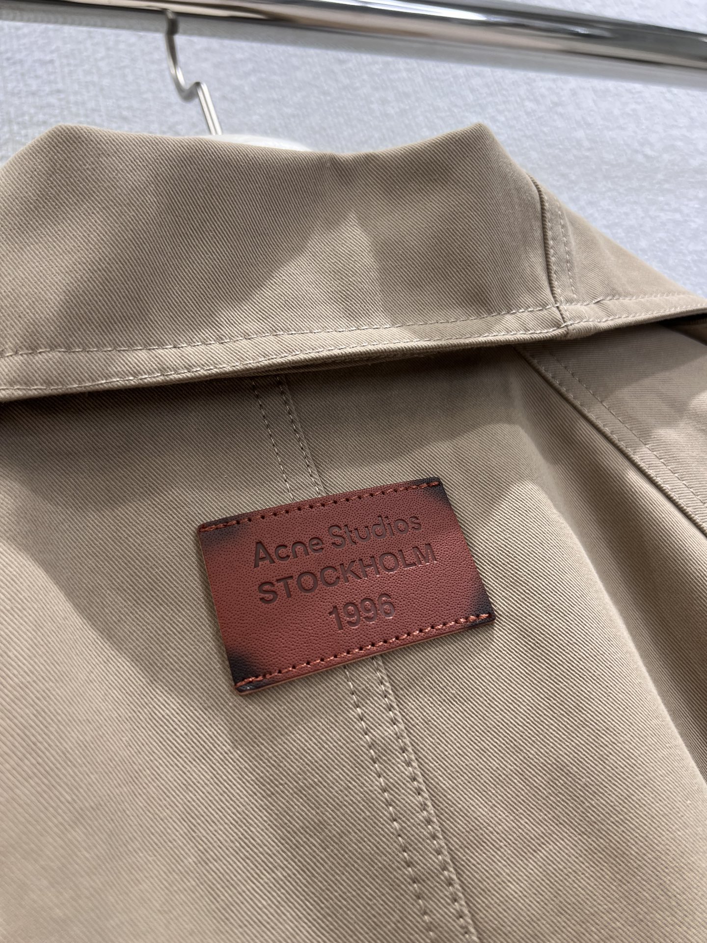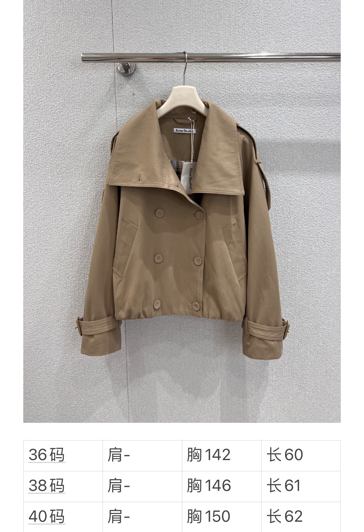 Acne studi*s 25Fw早秋新款 老钱复古风短款夹克风衣外套丨⚠独家yb开发!高版出品!最近爆火的“巴恩风”代表单品之一!原版定制定染工装面料!很有秋天氛围的复古卡其色,版型挺括赶紧利落!内里格纹羊毛里衬!后背做了做旧皮牌点缀,袖口还加了可调节的日字袖扣,我们不惜成本,只为做到完美还原。属于越穿越爱的类型!现货发售S/M/L