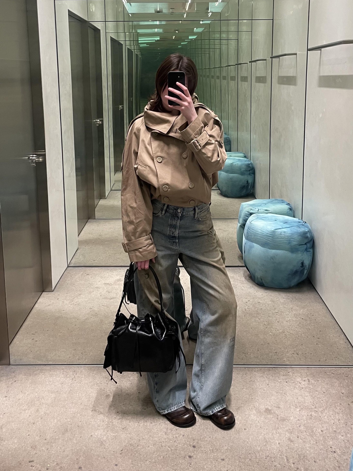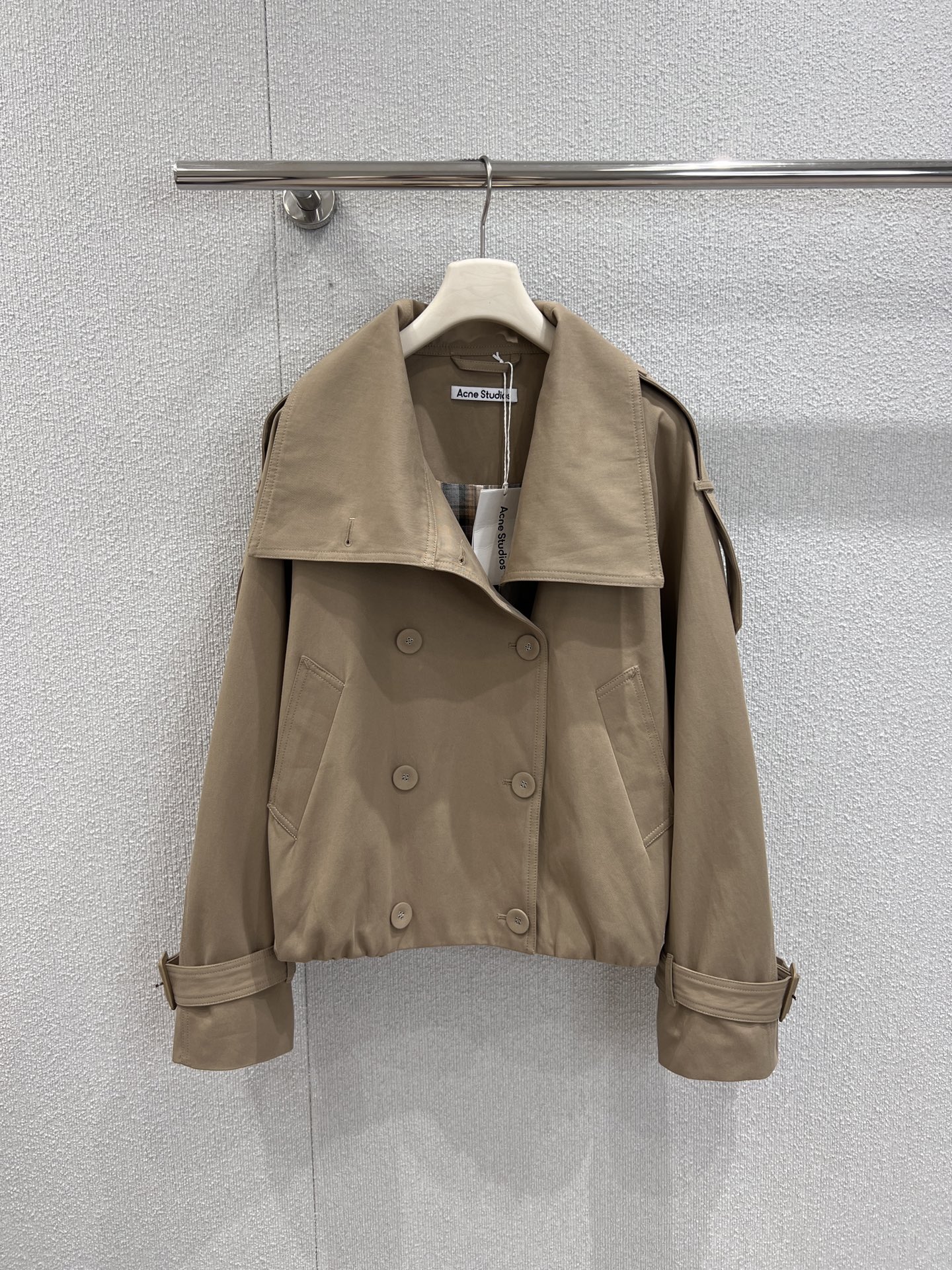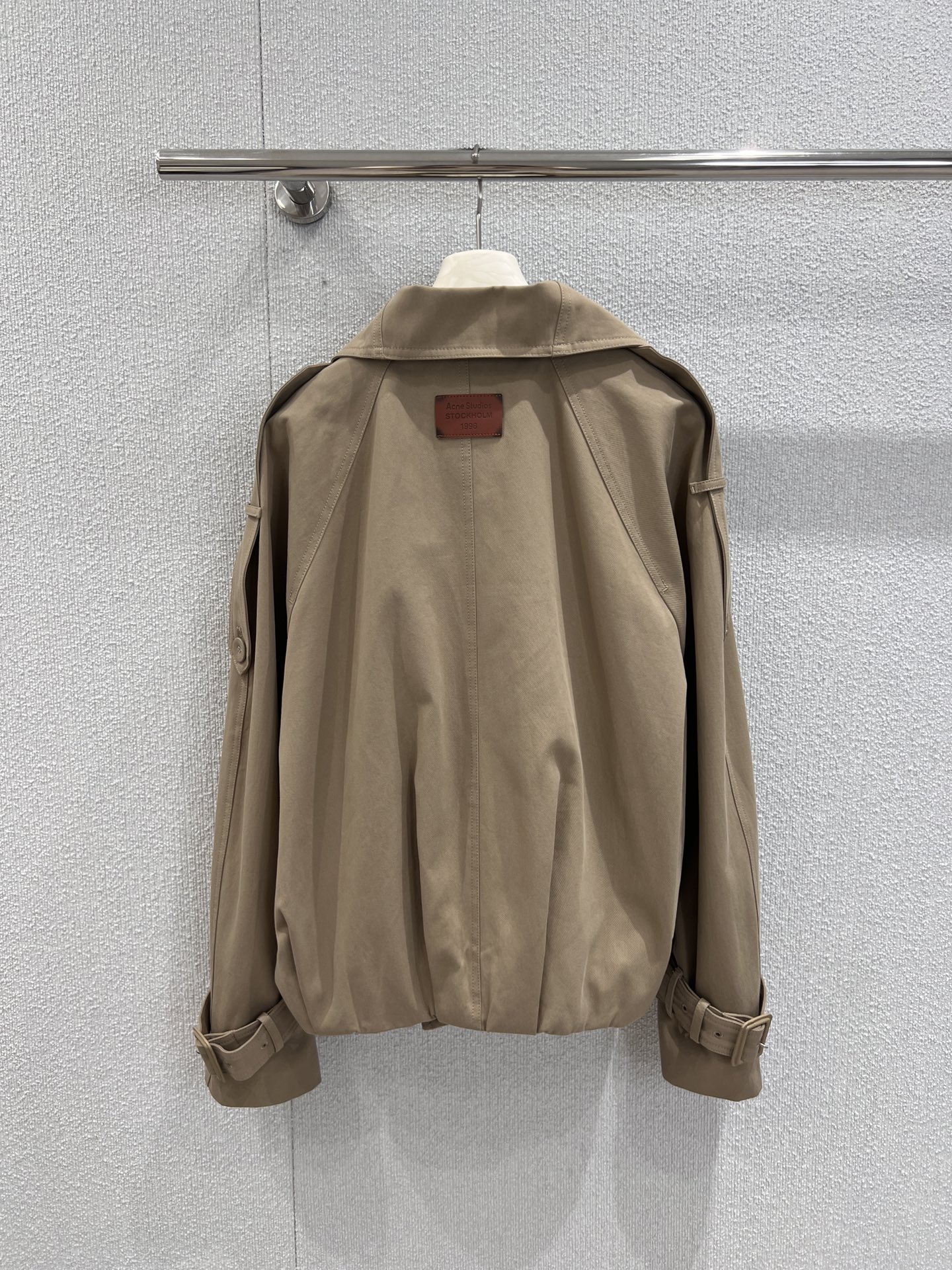 Acne studi*s 25Fw早秋新款 老钱复古风短款夹克风衣外套丨⚠独家yb开发!高版出品!最近爆火的“巴恩风”代表单品之一!原版定制定染工装面料!很有秋天氛围的复古卡其色,版型挺括赶紧利落!内里格纹羊毛里衬!后背做了做旧皮牌点缀,袖口还加了可调节的日字袖扣,我们不惜成本,只为做到完美还原。属于越穿越爱的类型!现货发售S/M/L