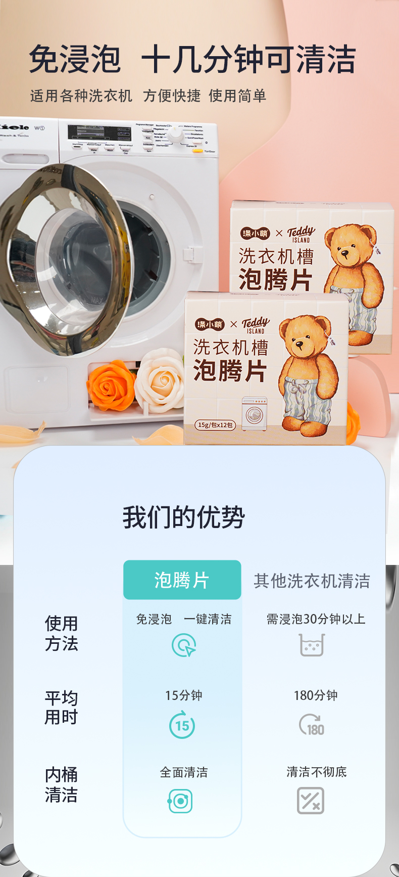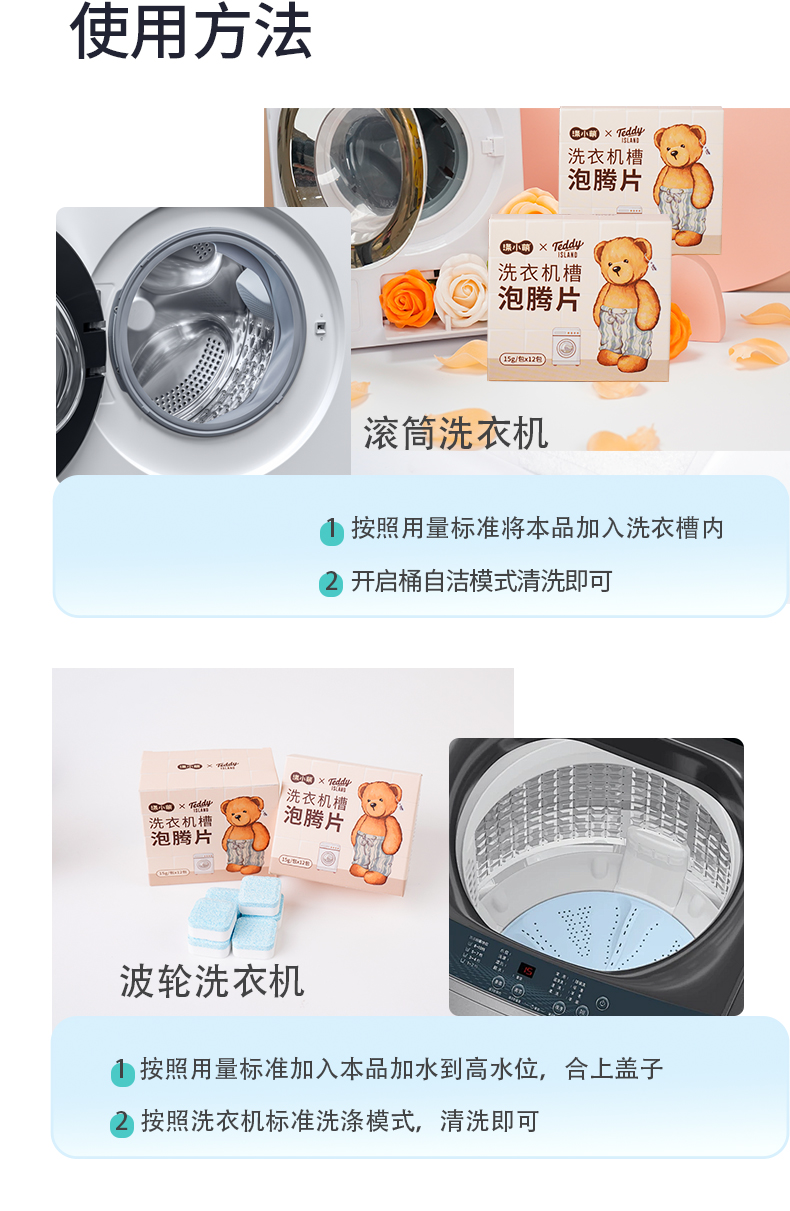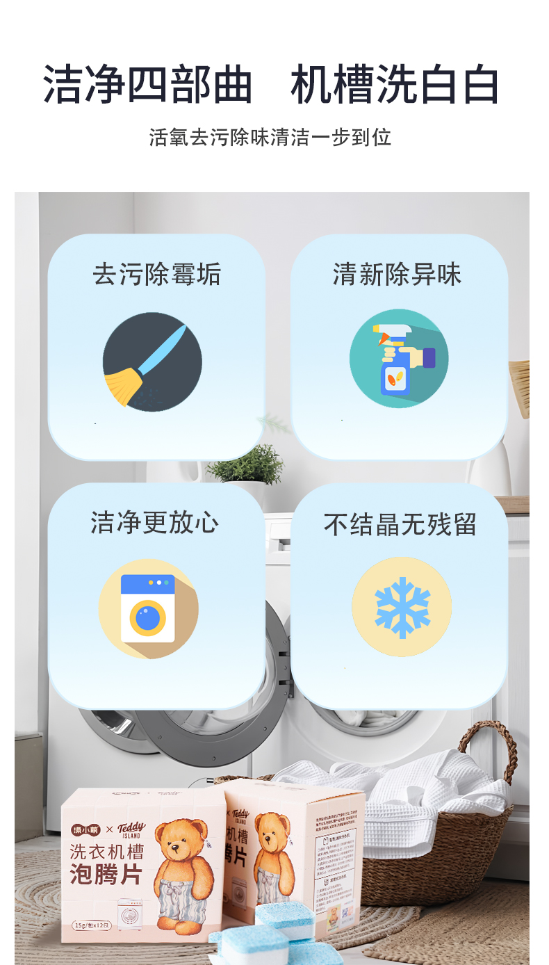【泰迪熊联名款】涤小萌洗衣机槽泡腾片深层清洁 · 安全除菌 · 便捷省心