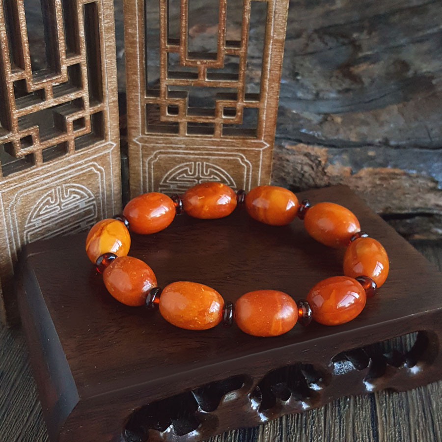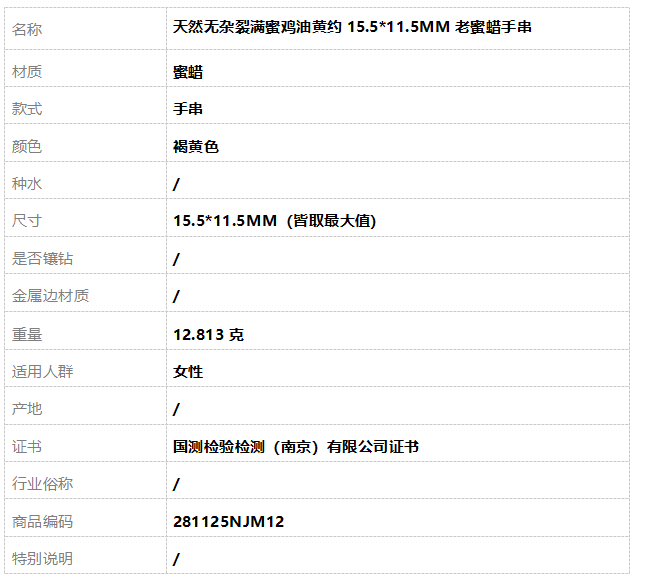名称 | 天然无杂裂满蜜鸡油黄约15.5*11.5MM老蜜蜡手串 |