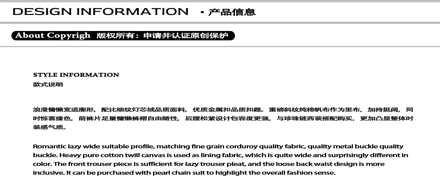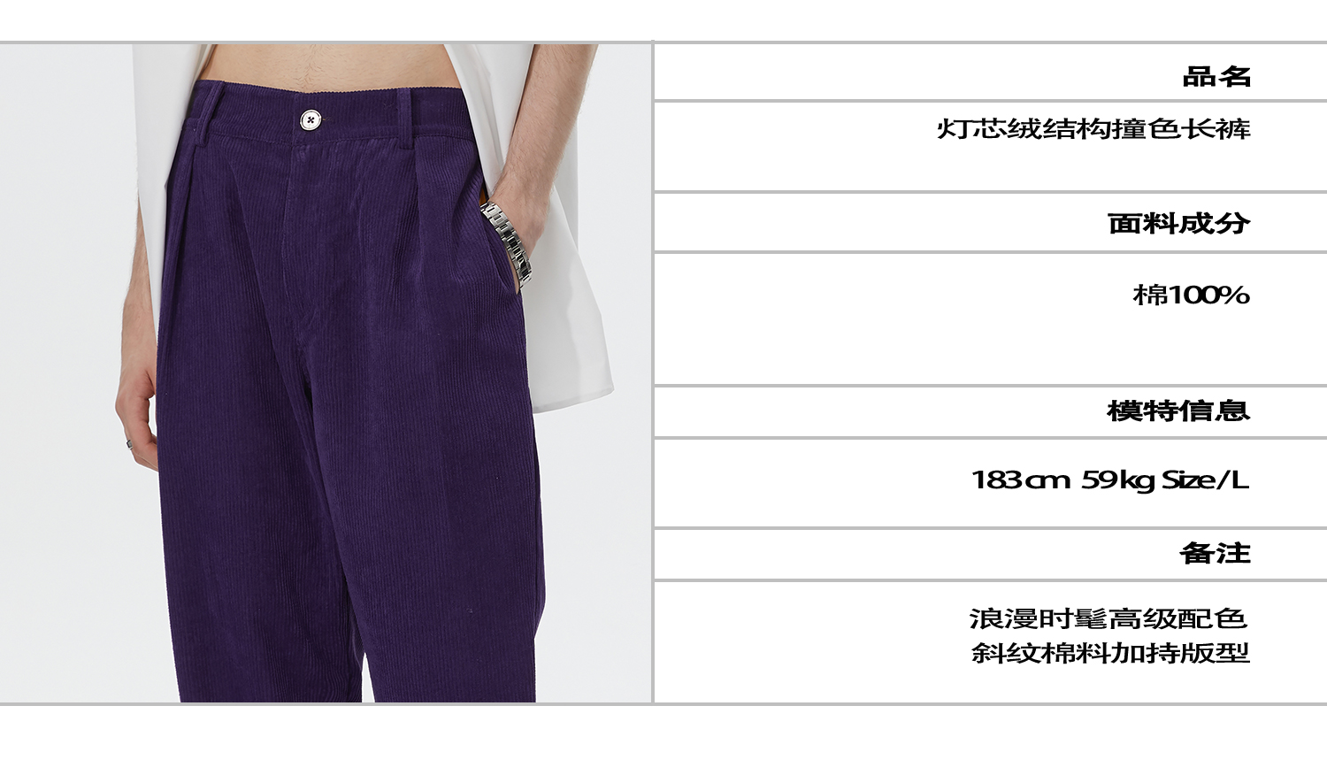 TIWILLTANG启世录 RETURN 灯芯绒结构撞色长裤
