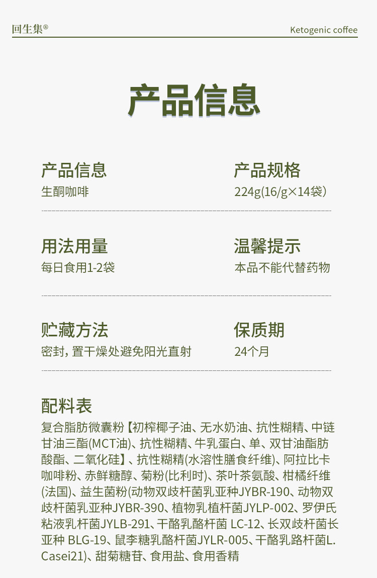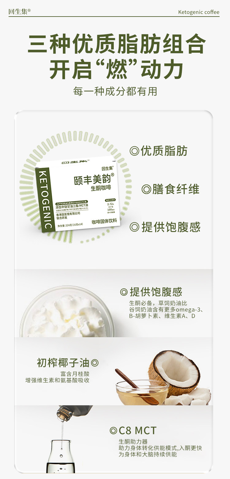 回生集颐丰美韵生酮咖啡冲饮饱腹防弹速溶咖啡mct代餐低碳