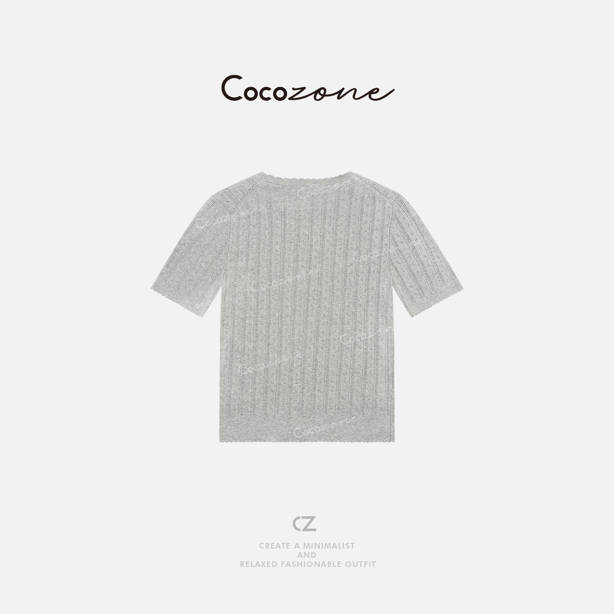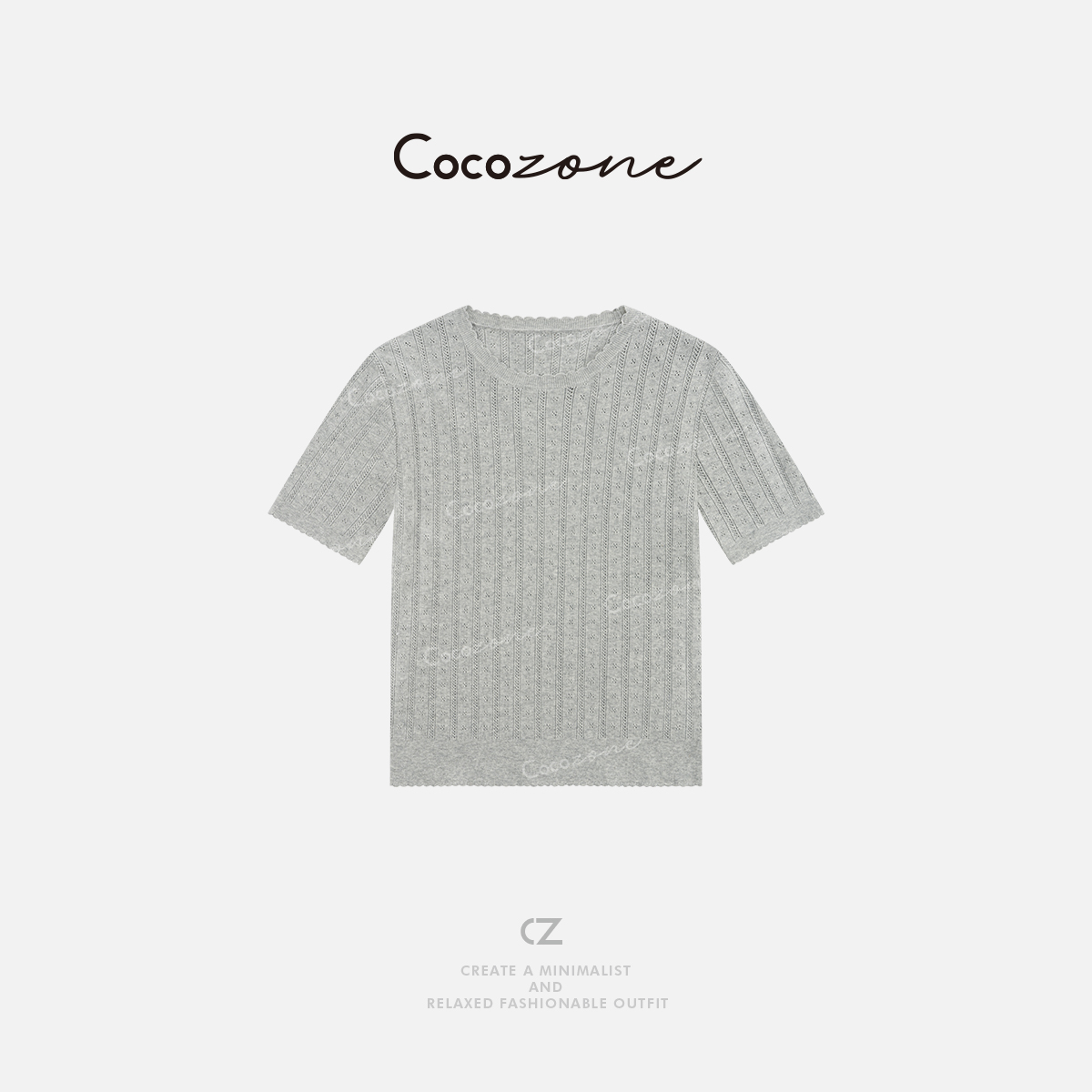 COCO ZONE 刘一一 【100棉】圆领星空镂空毛织上衣 CD1A1055