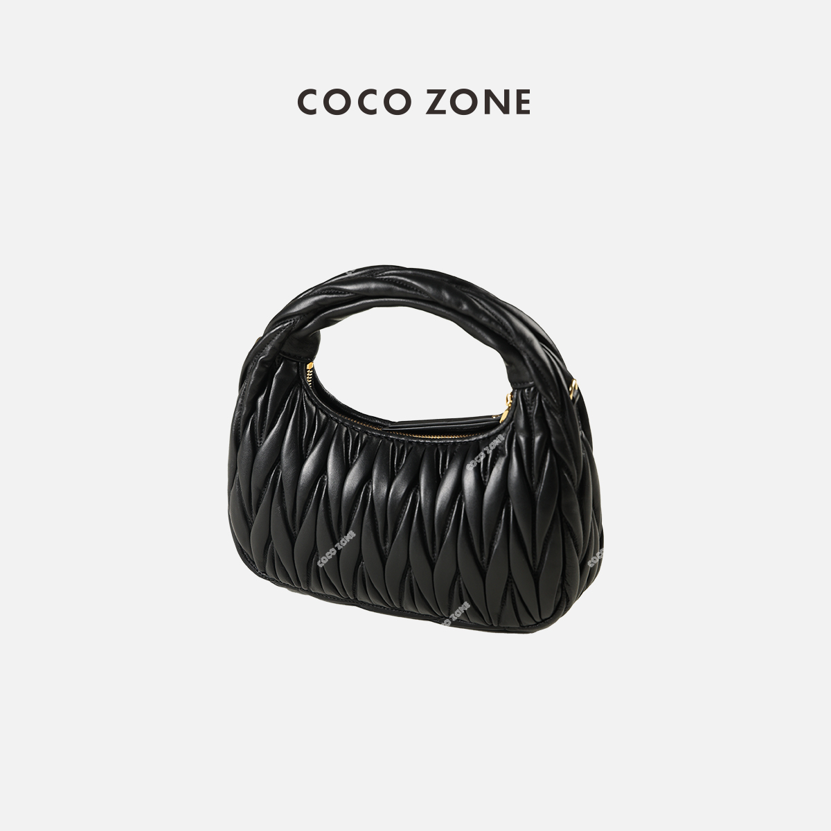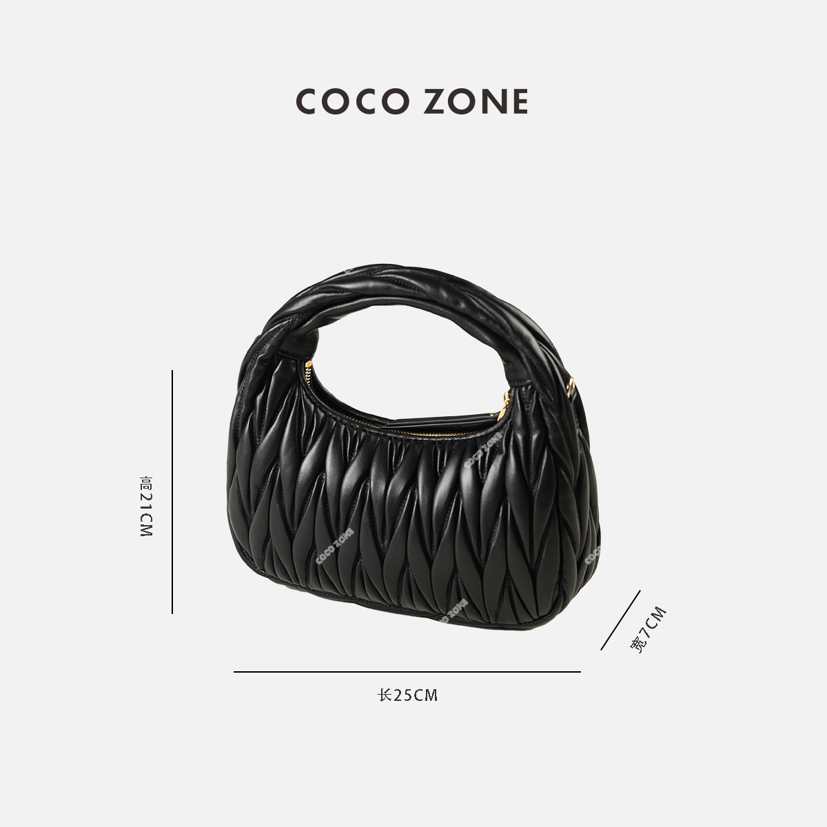 COCO ZONE高级感单肩斜挎包包褶皱饺子包 23C29427时尚