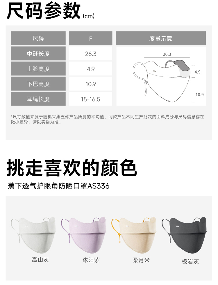 【绮】蕉下透气护眼角防晒口罩AS336板岩灰、沐阳紫、荷畔绿、高山灰