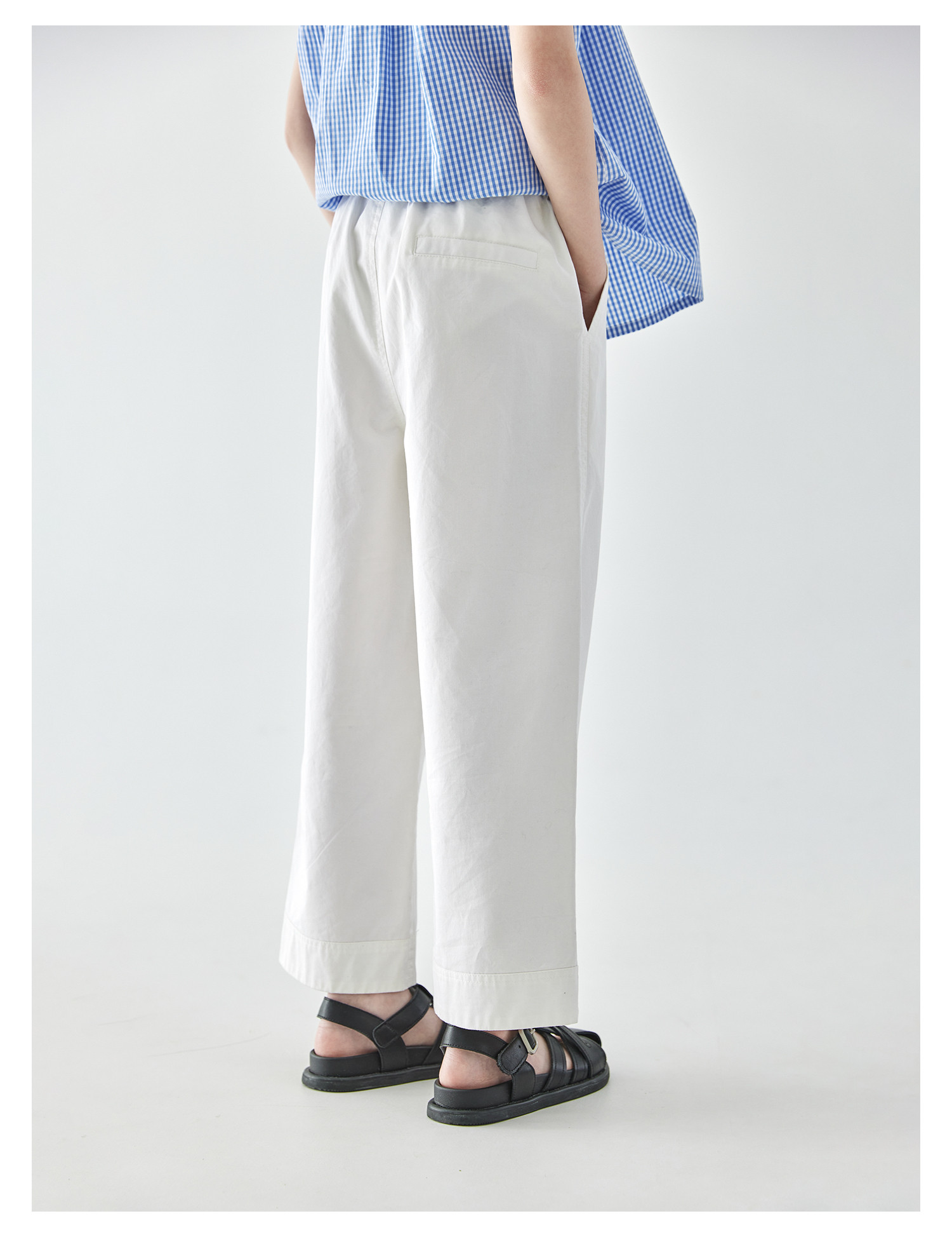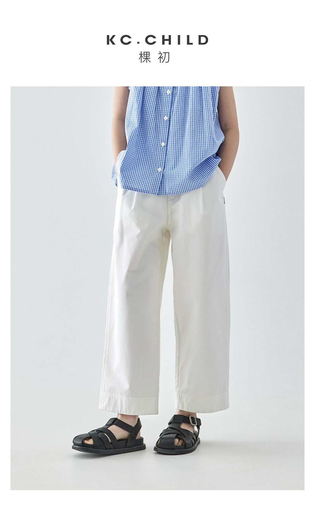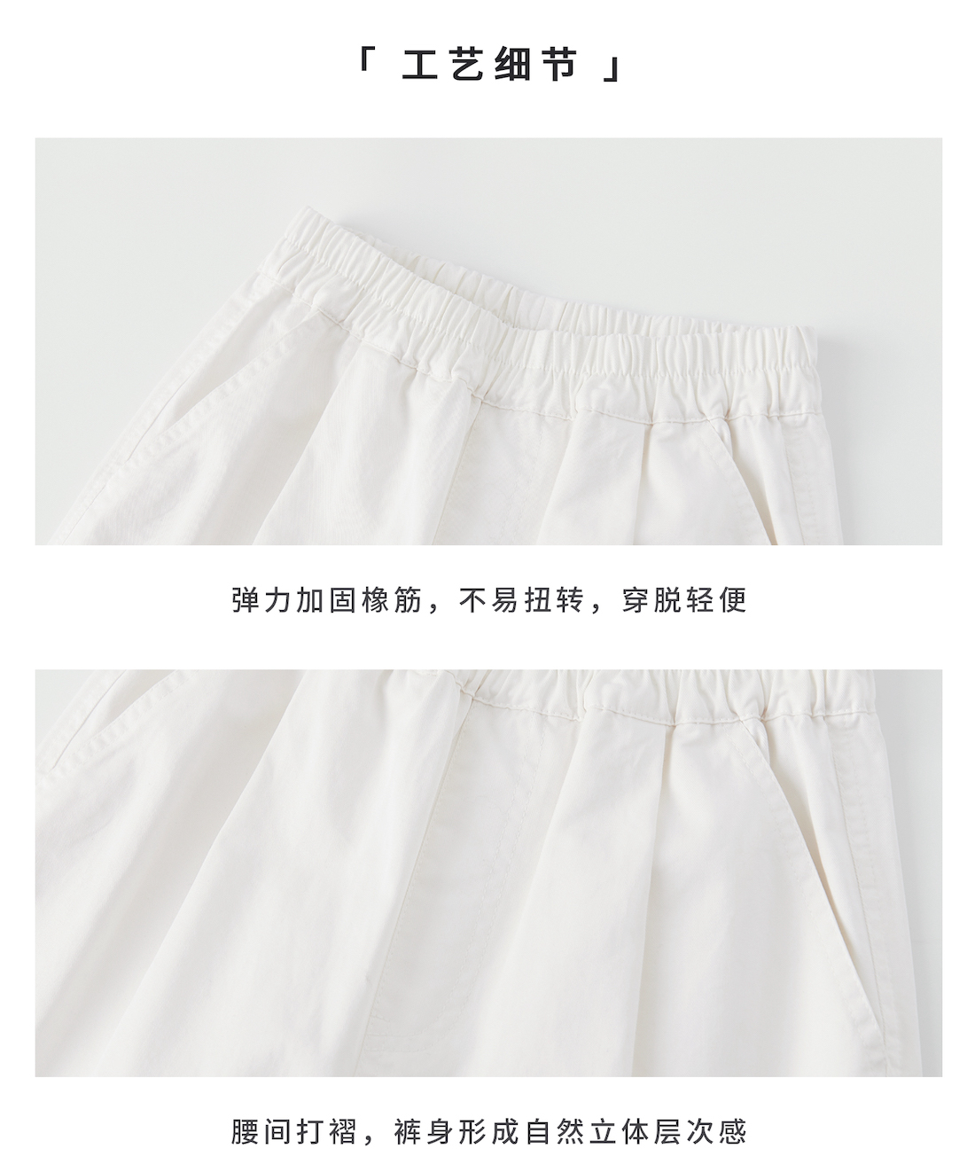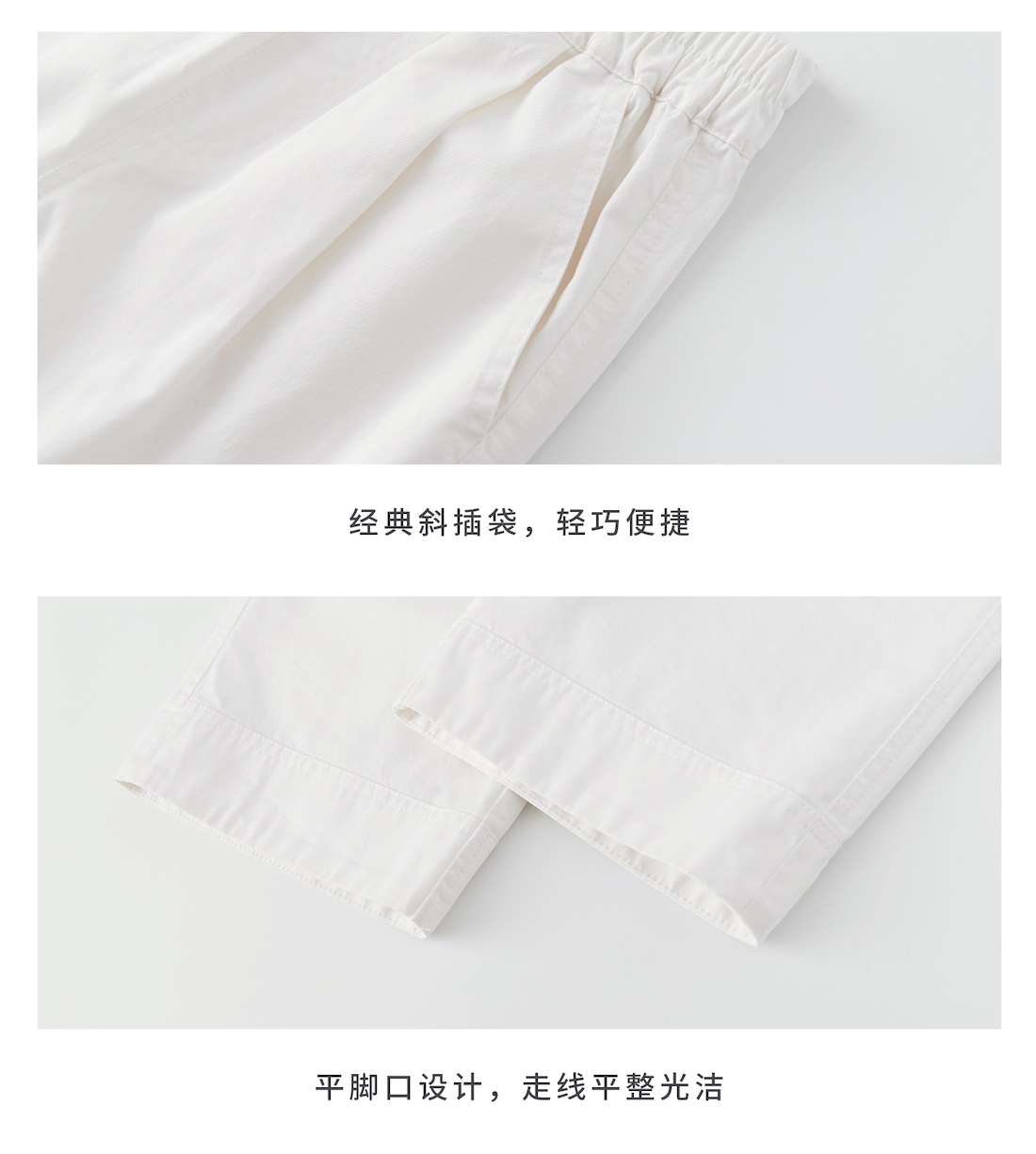 棵初2025年夏季新款童装白色全棉休闲裤亲子装腰间打褶9分宽松裤