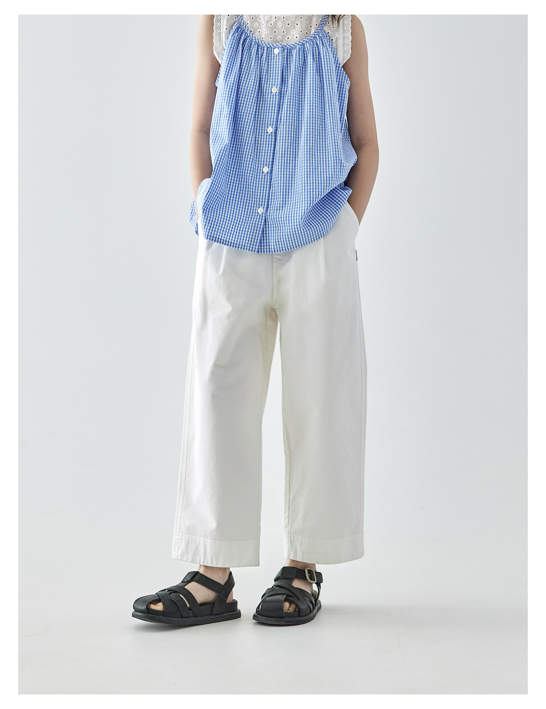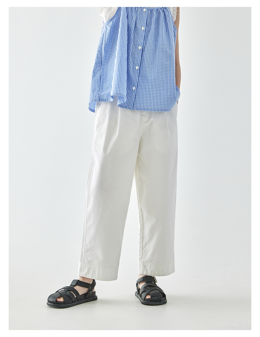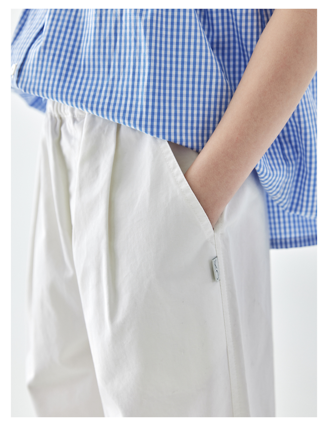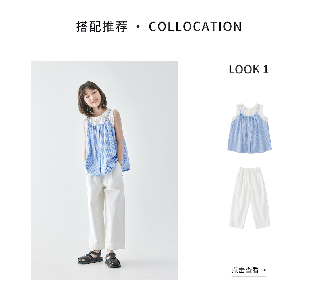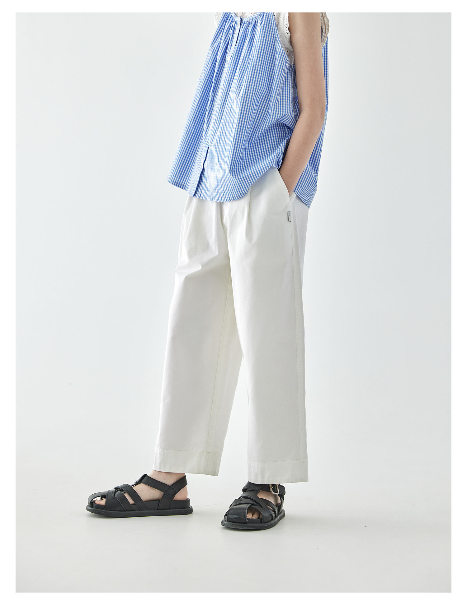 棵初2025年夏季新款童装白色全棉休闲裤亲子装腰间打褶9分宽松裤