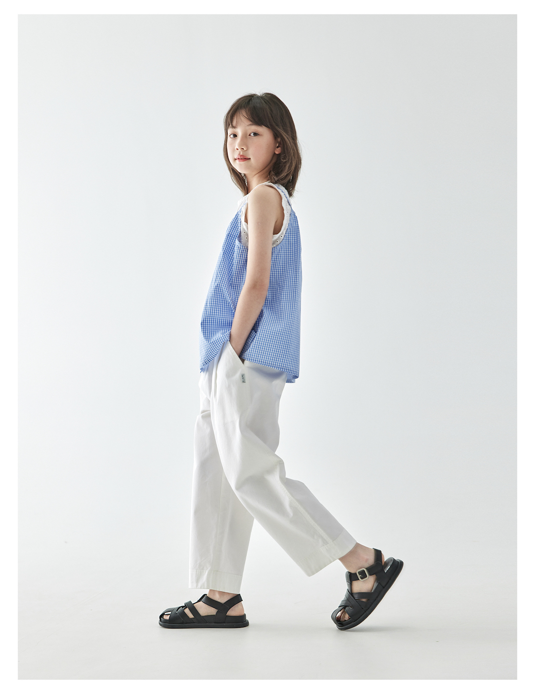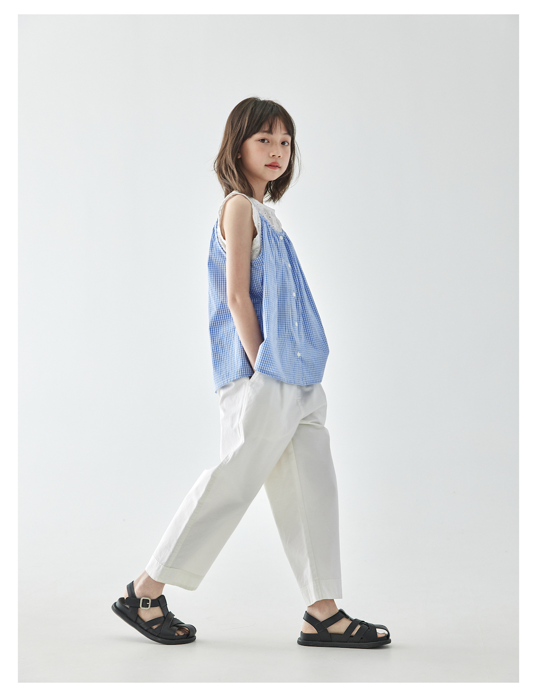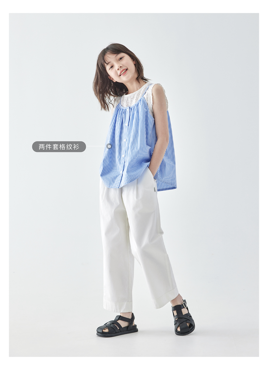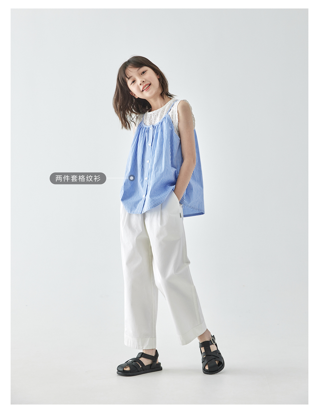 棵初2025年夏季新款童装白色全棉休闲裤亲子装腰间打褶9分宽松裤